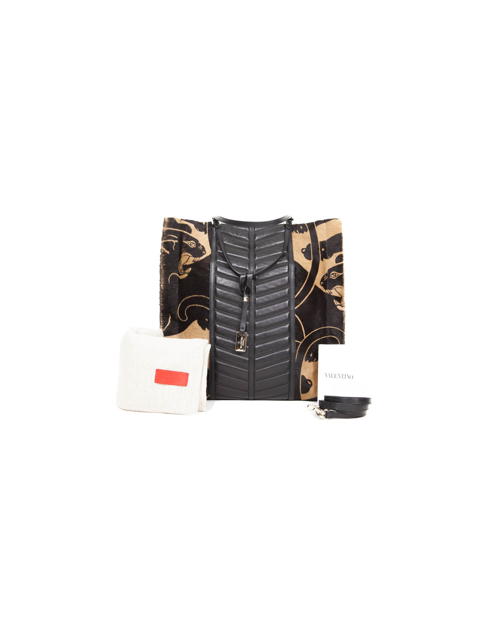 Sac Valentino, style cabas en peau de chèvre motif panthère. Au centre cuir d'agneau lisse matelassé.
