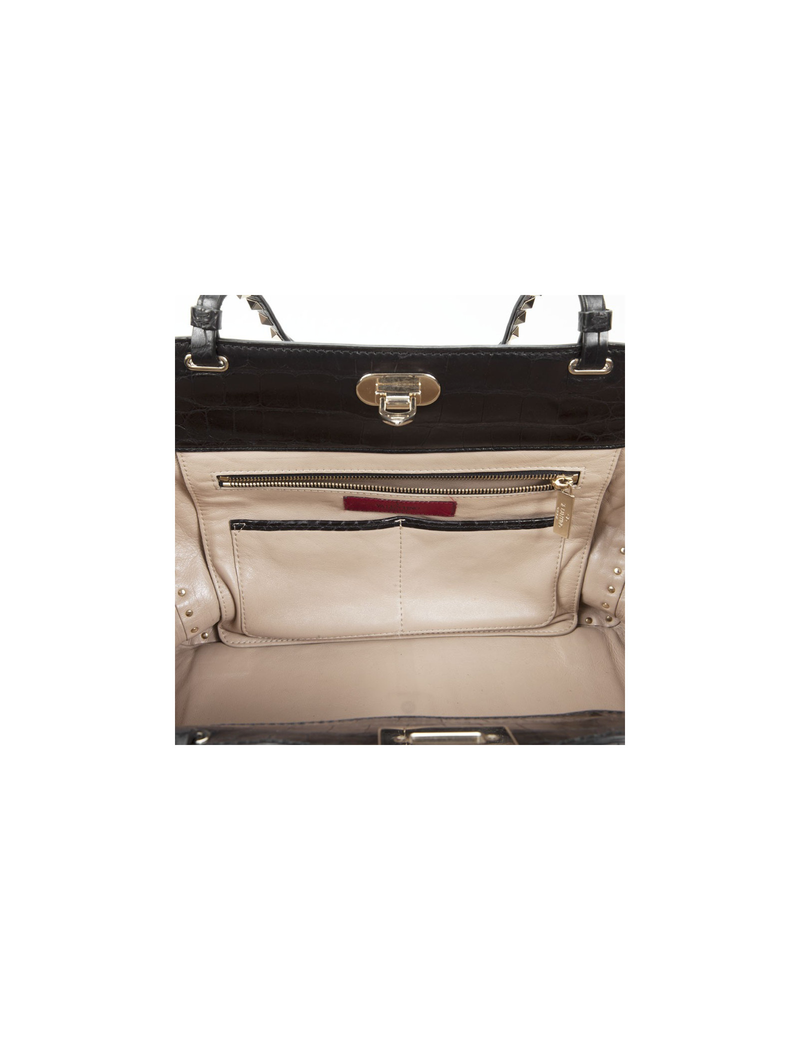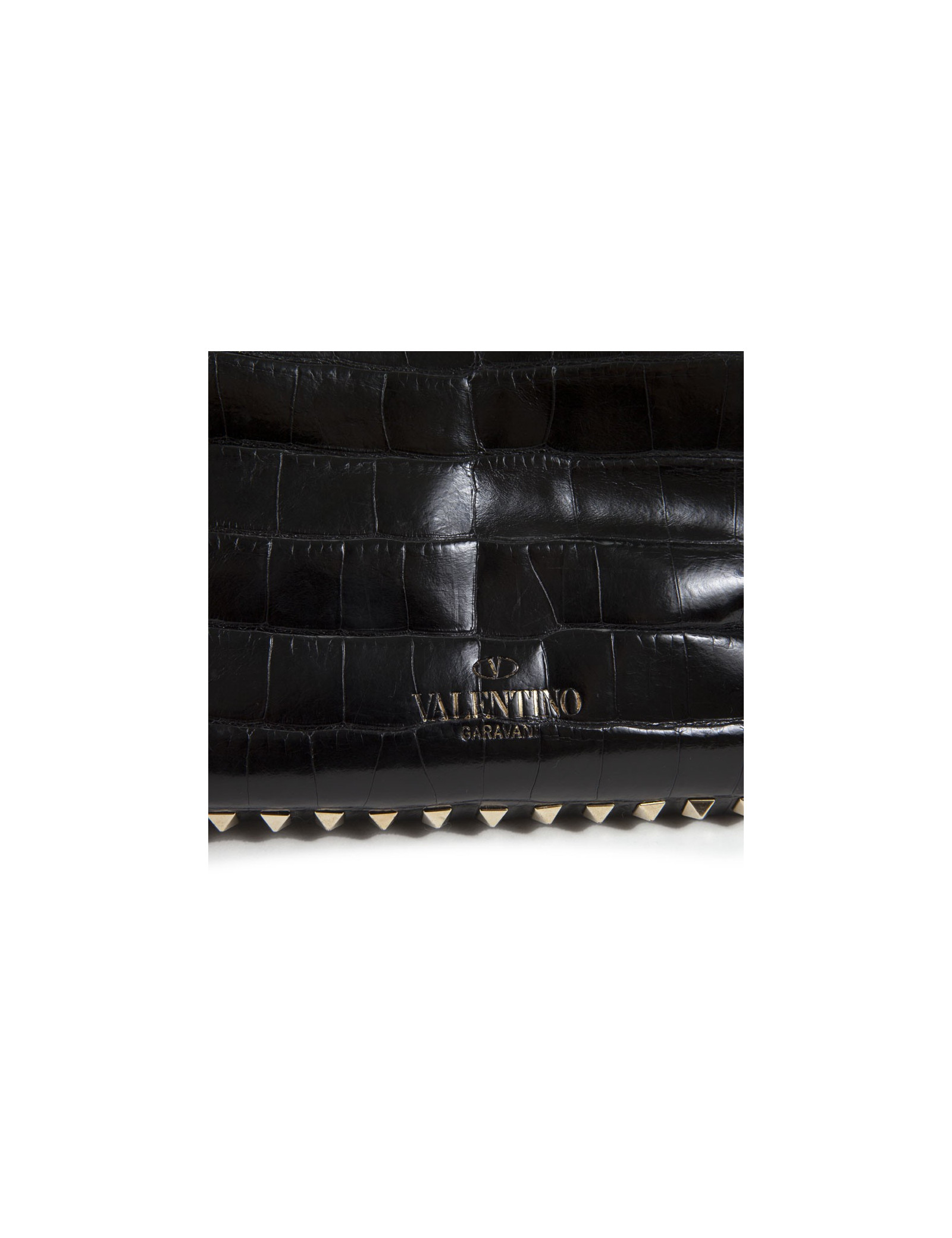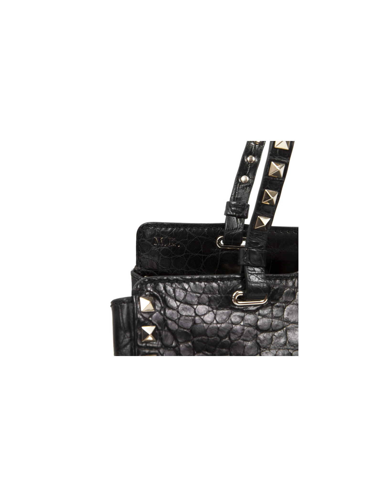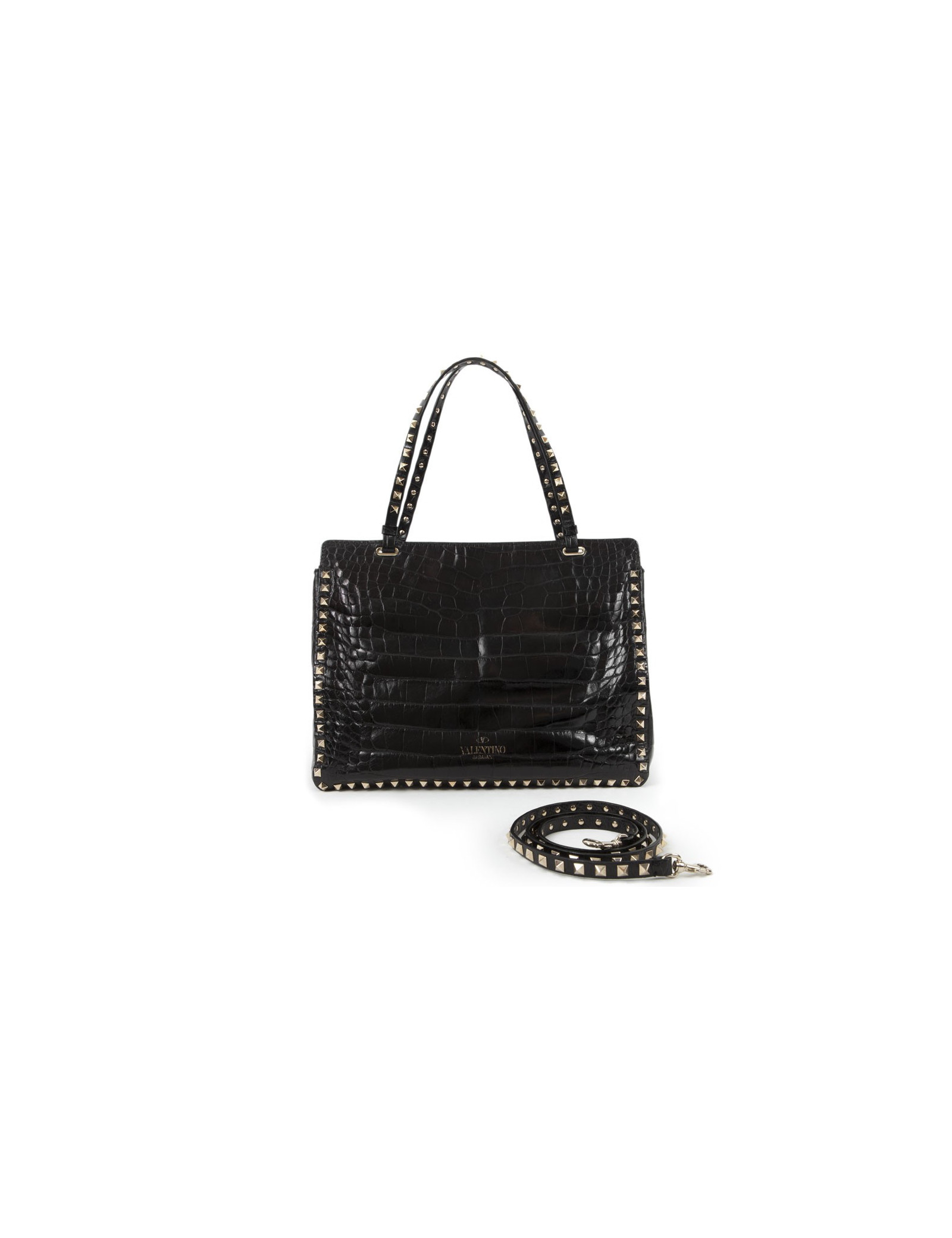 Sac VALENTINO GARAVANI trapèze rockstud crocodile noir