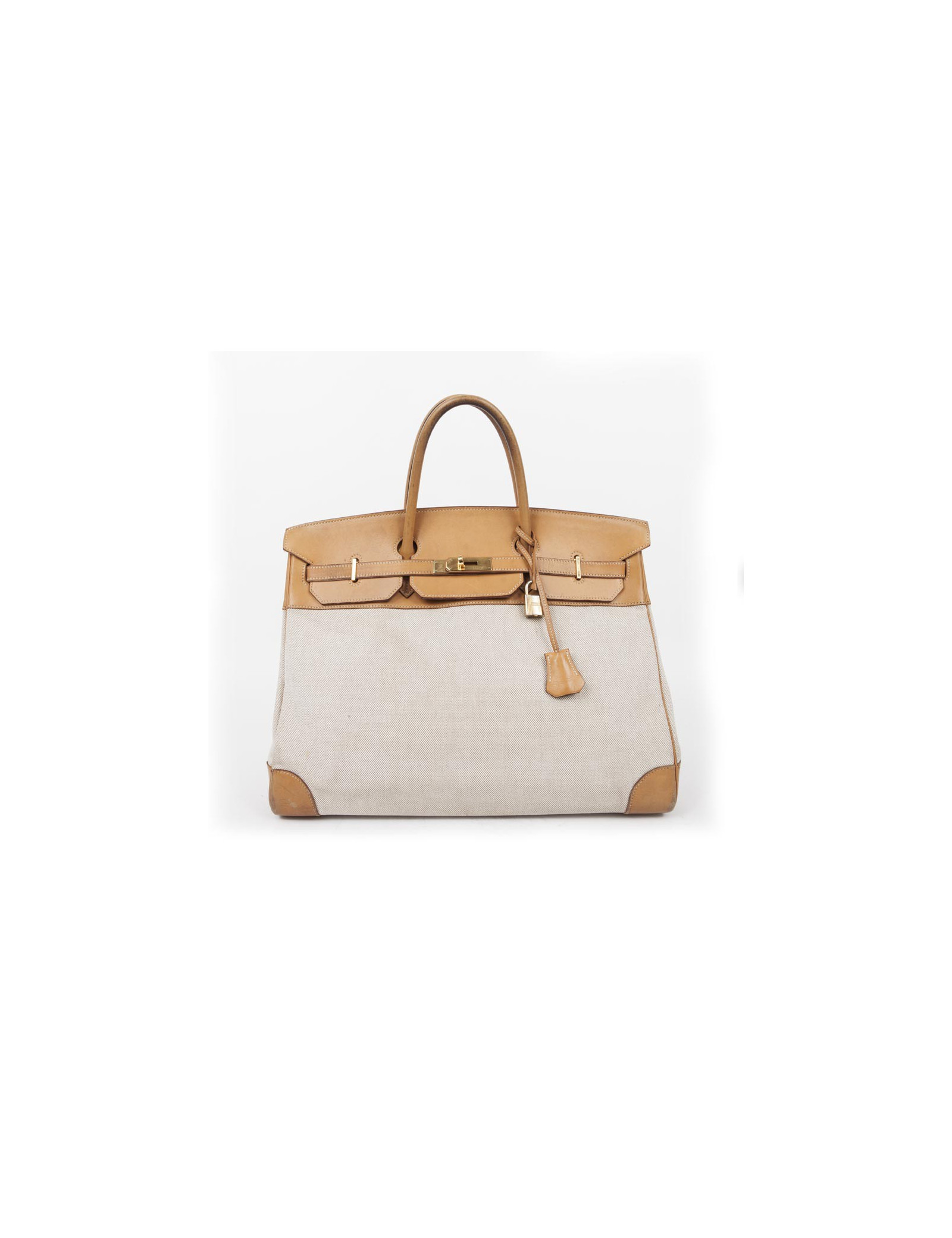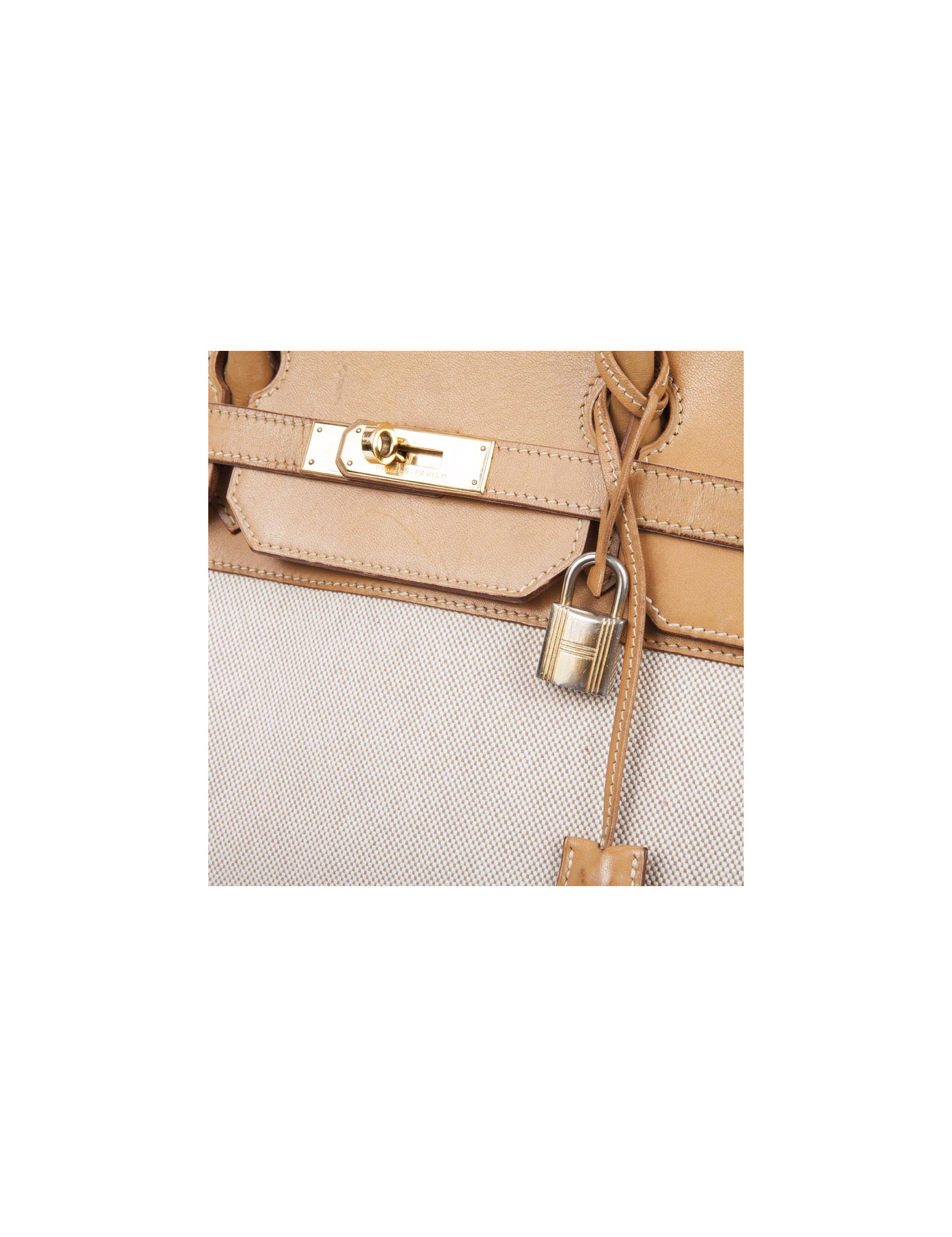 Vintage. Birkin 40 en toile H et cuir naturel. Lettre Z dans un rond.