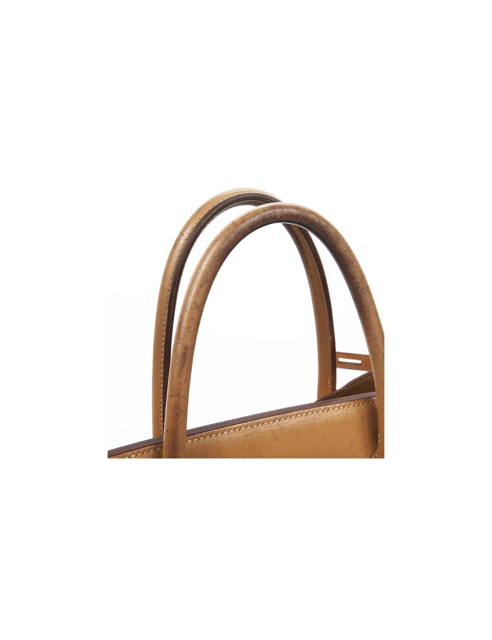 les anses noircies sont en bon état . Entièrement doublé en cuir naturel.