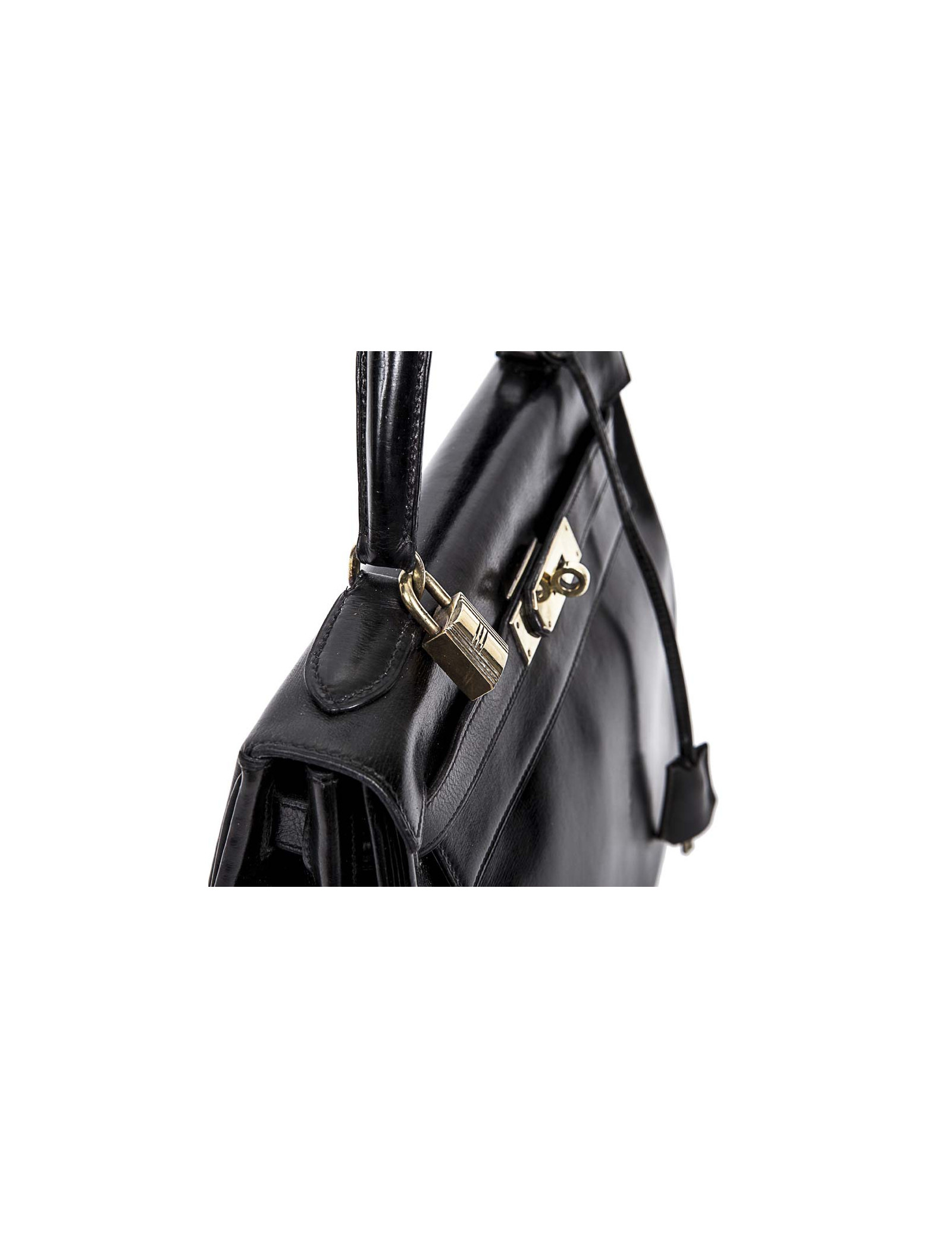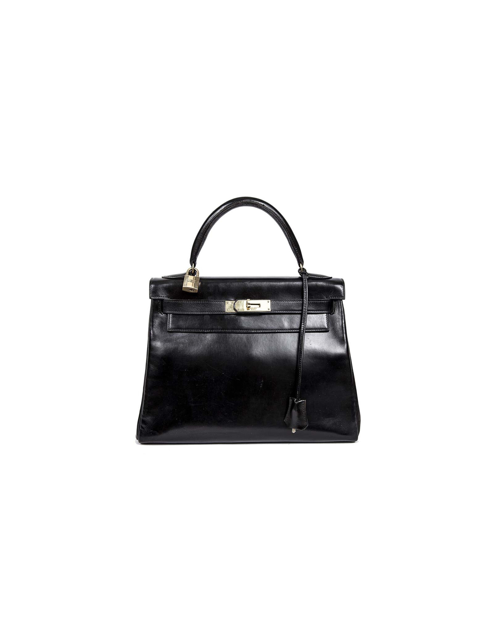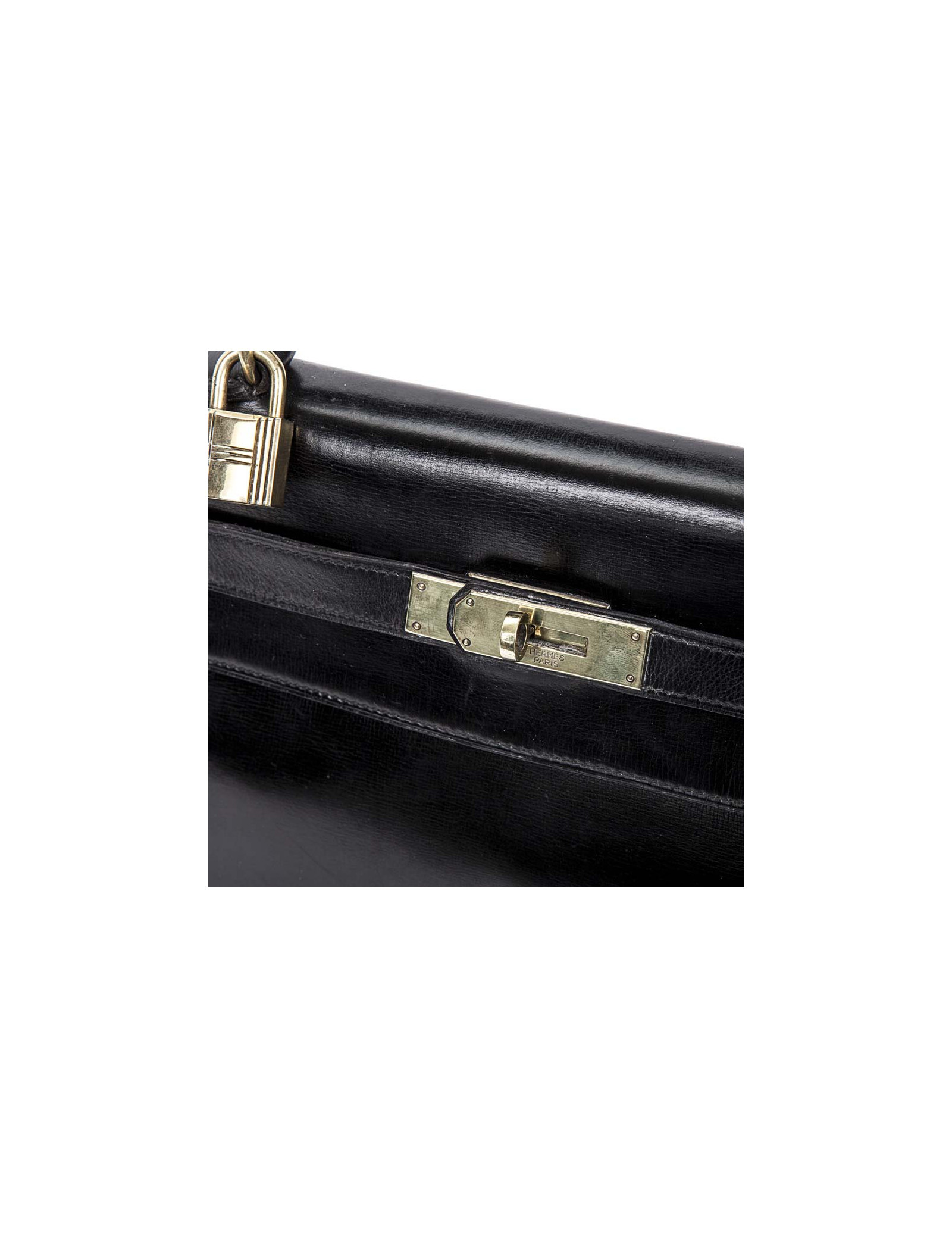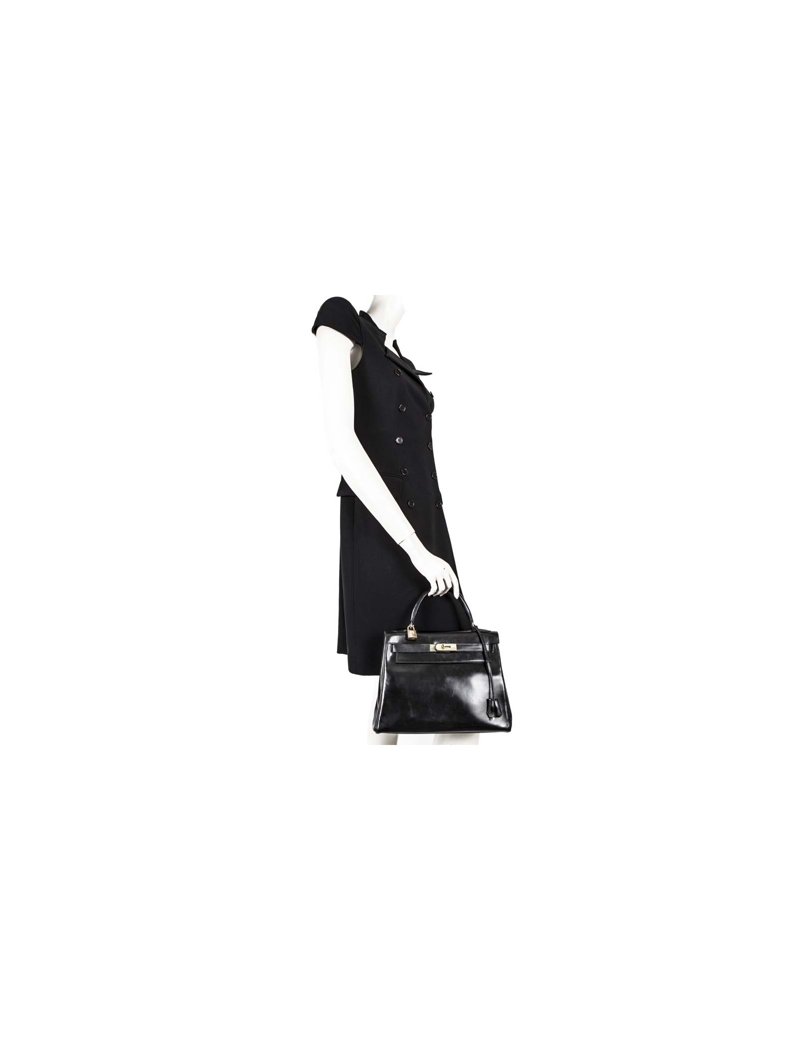 Sac Kelly 28 Hermès en cuir box noir. Il est vintage.