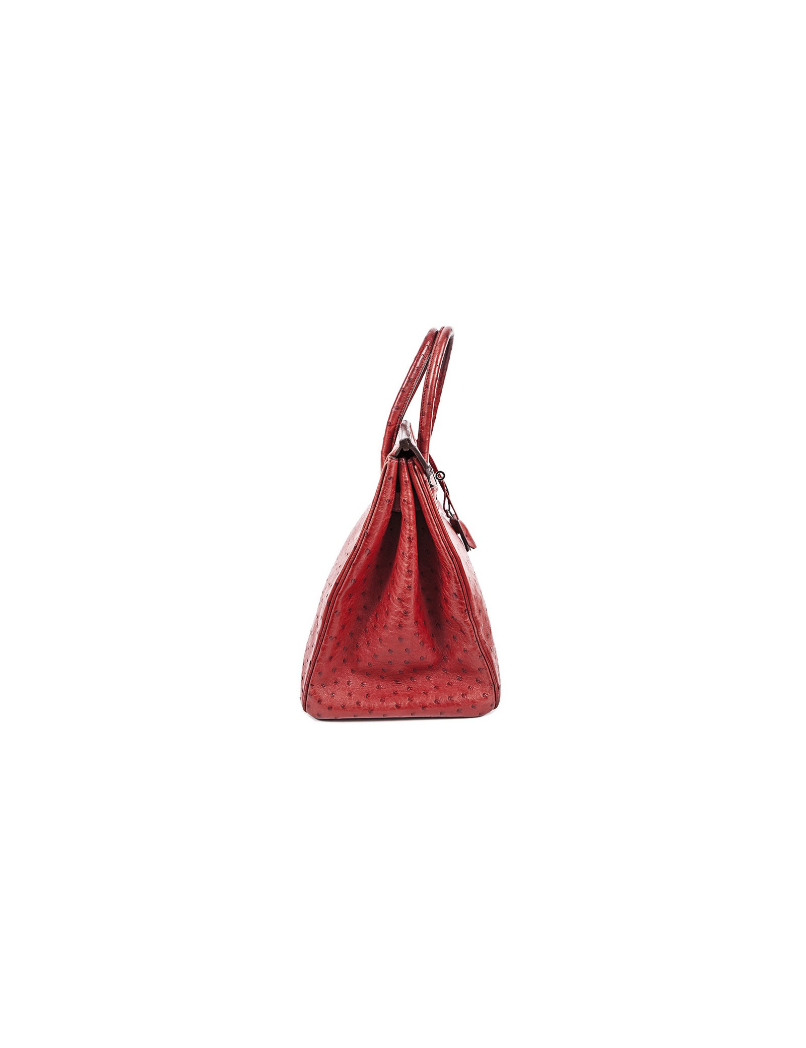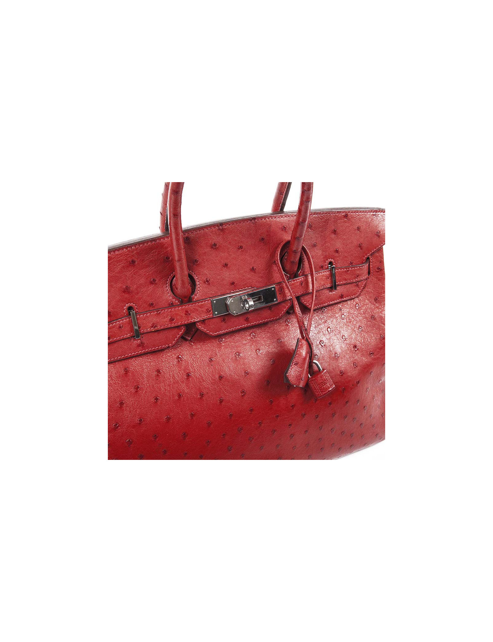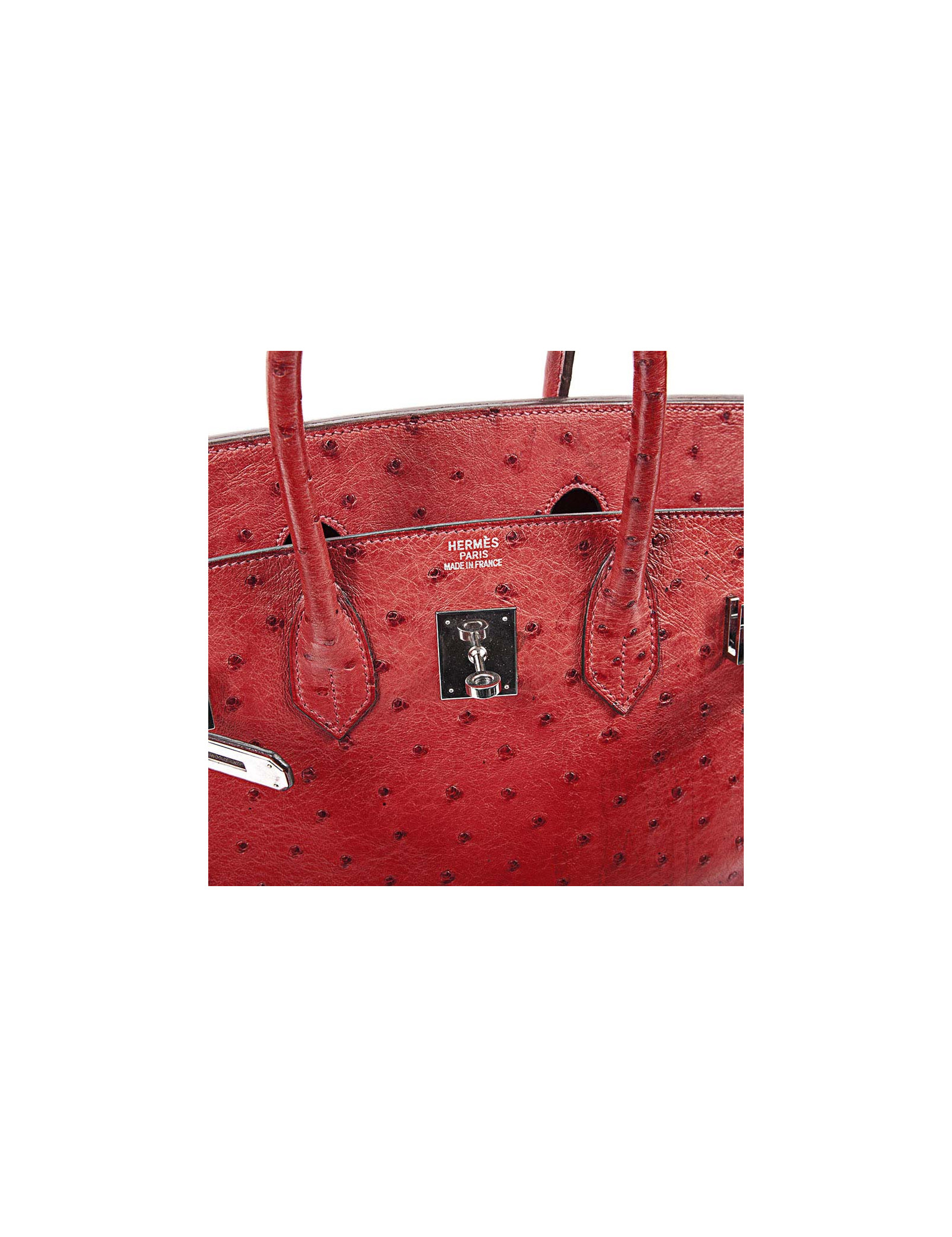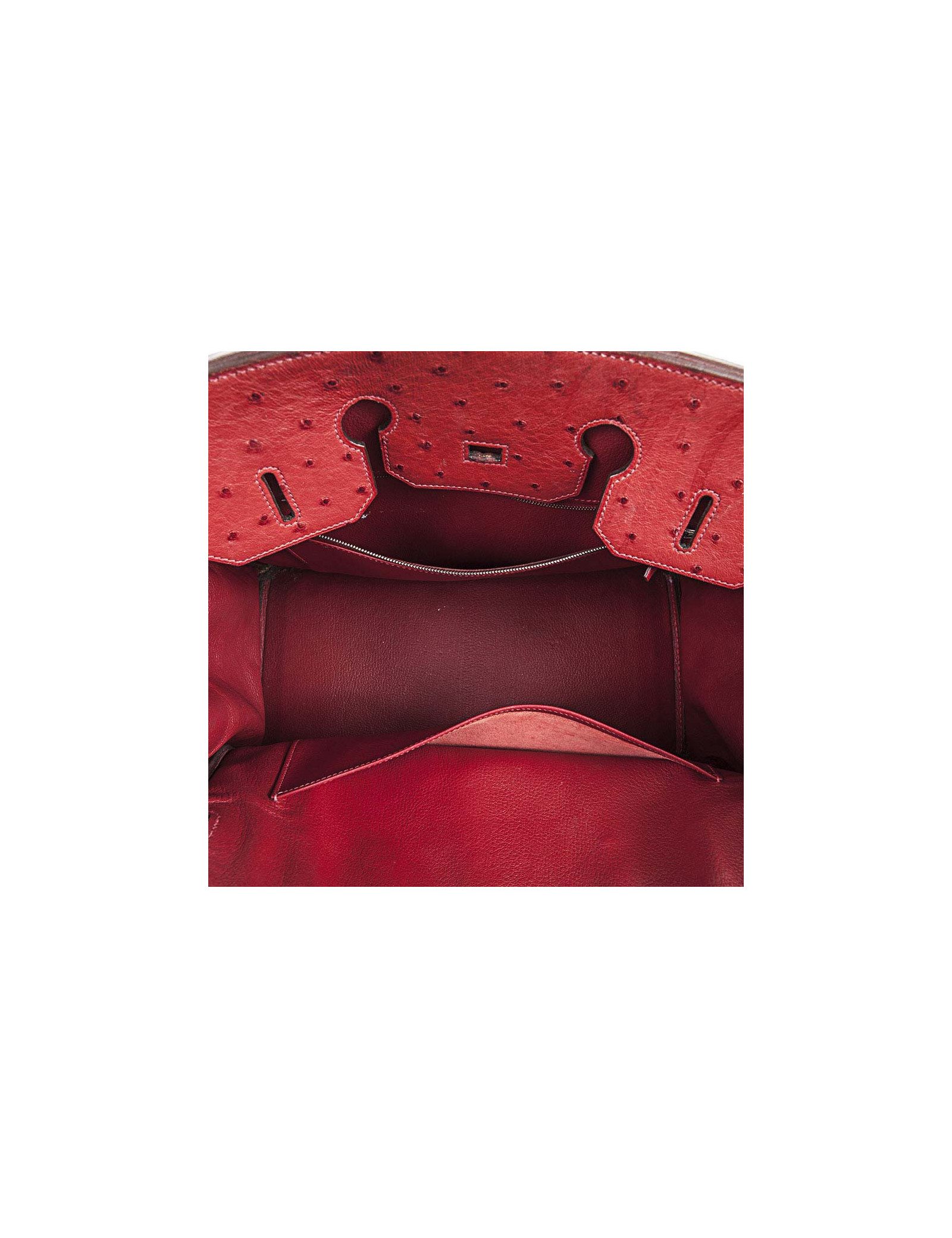 Sac Birkin 35 Hermès, en cuir d'autruche rouge.Lettre I dans un carré. Il possède sa facture (2005).