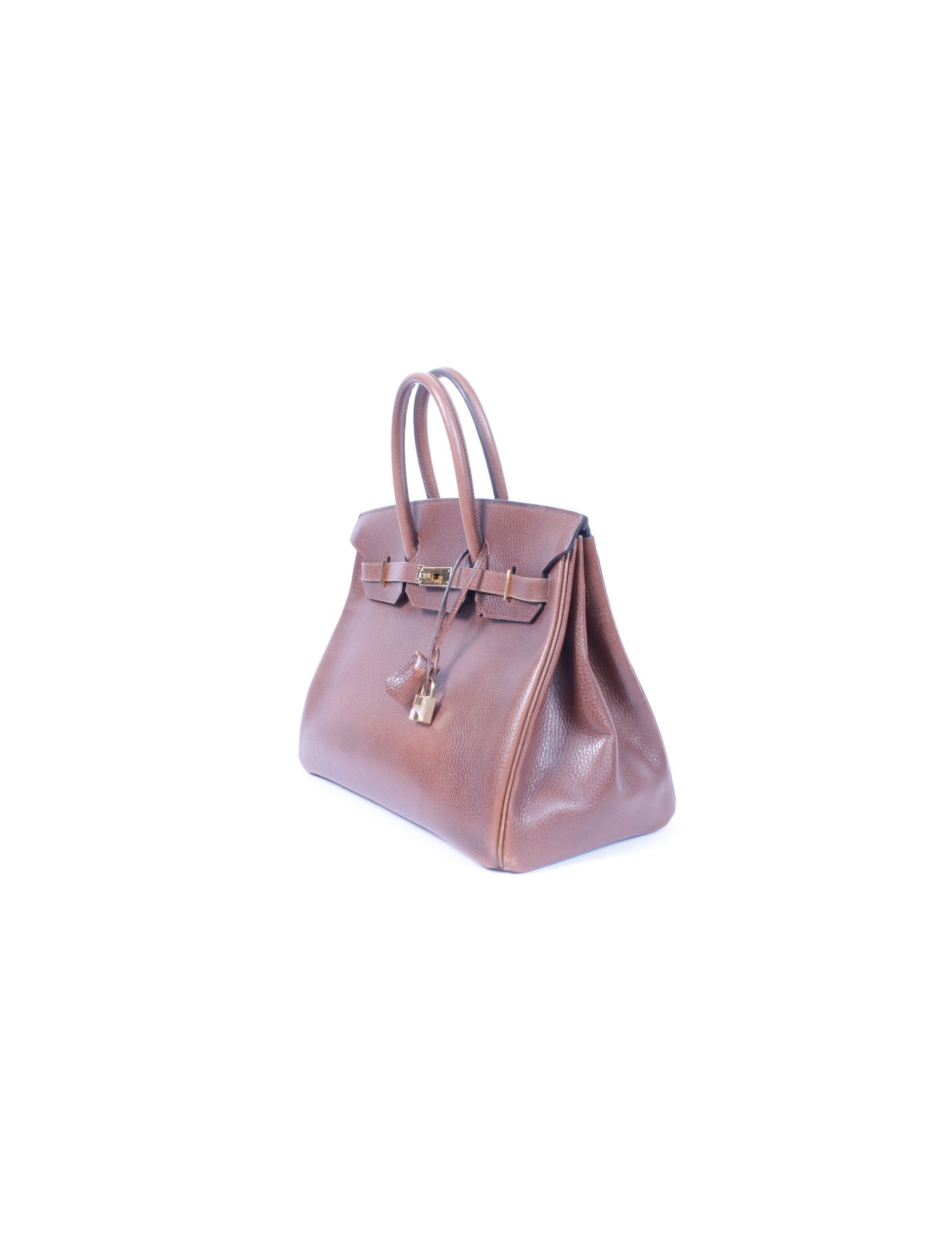 Birkin 35 en cuir de vache Ardennes, couleur cognac.