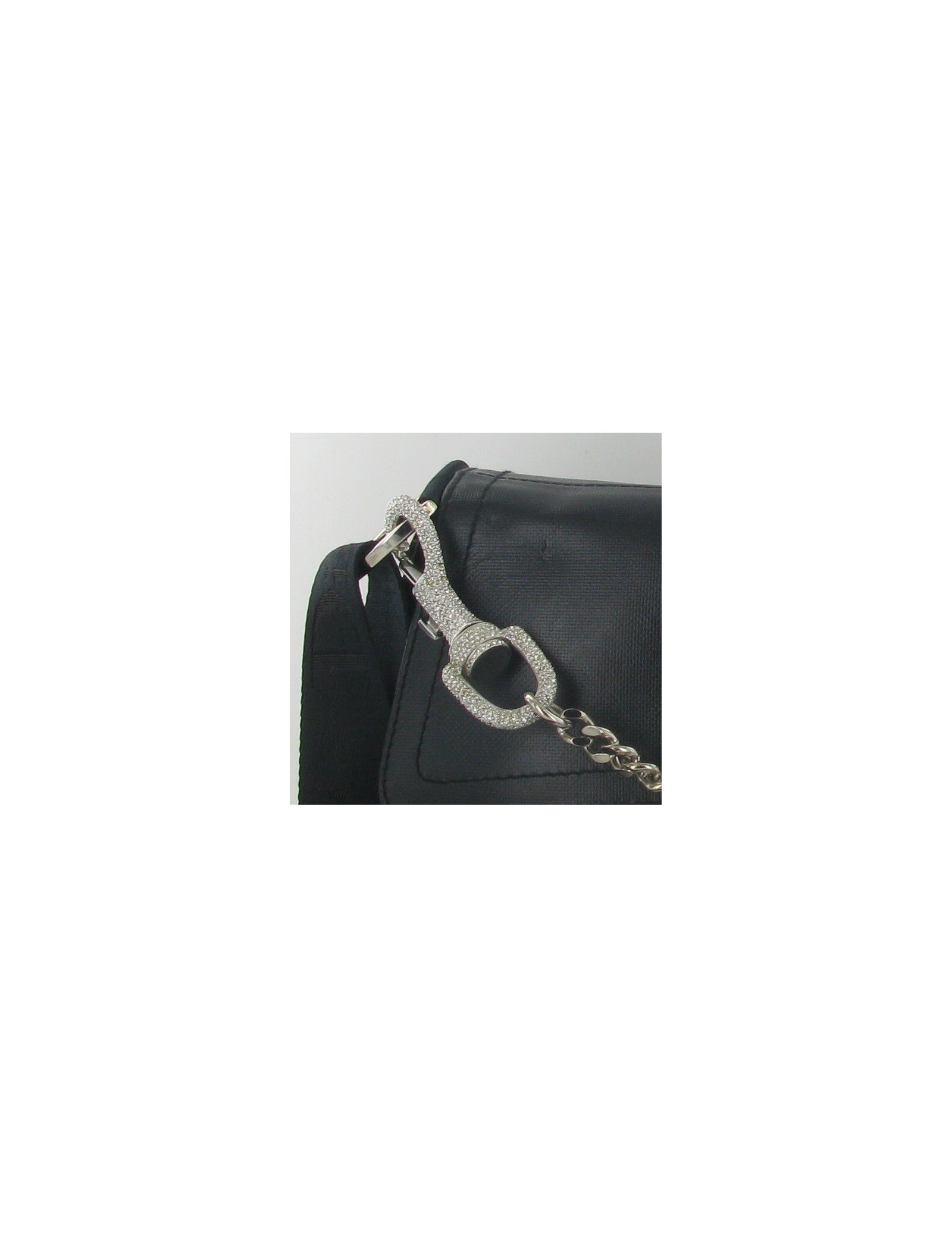 Superbe sac en cuir noir serti d'une chaîne terminée par un mousquetons en strass dior.