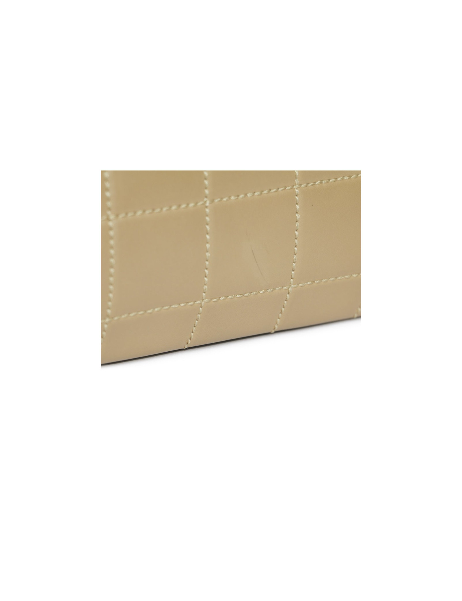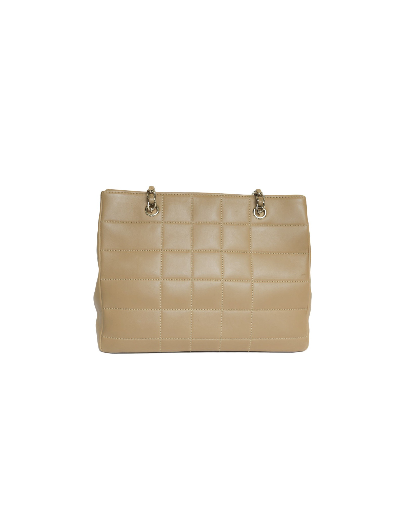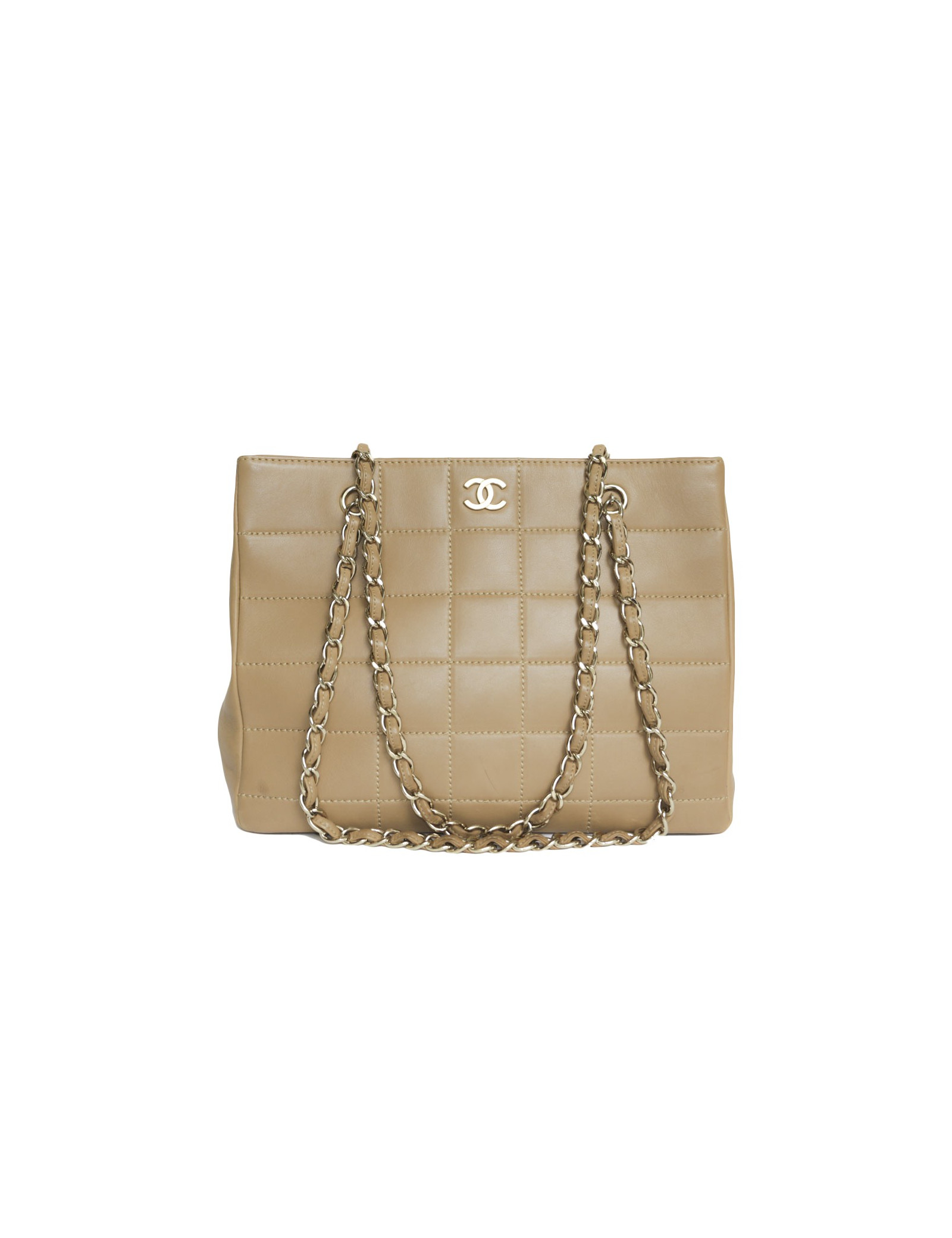 Sac en cuir d'agneau lisse de couleur gold de la Maison Chanel. Bijouterie dorée. Fermeture par bouton pression. A l'intérieur, deux grandes poches plaquées dont 1 zippée. Hologramme : 7253.... pas de carte d'authenticité.