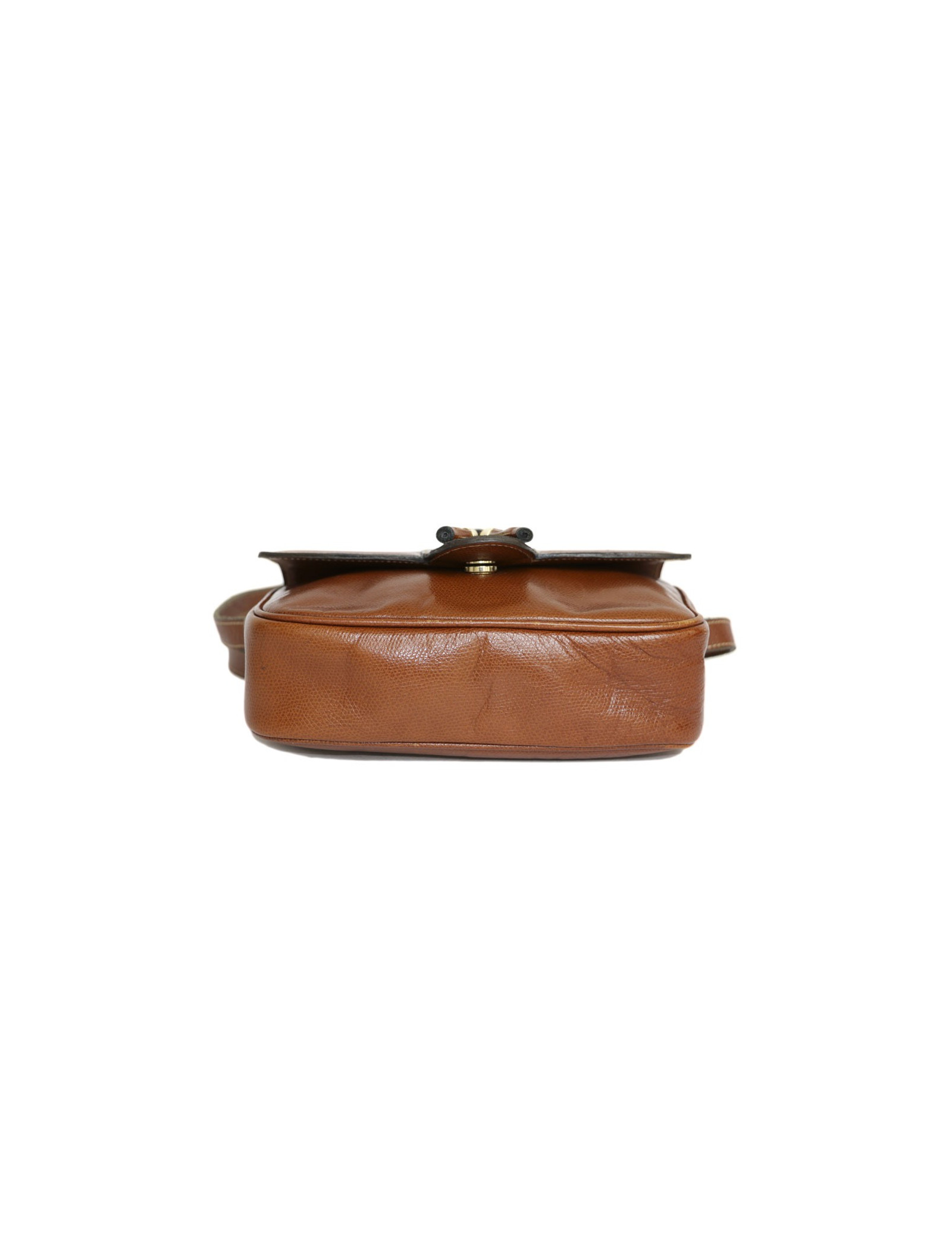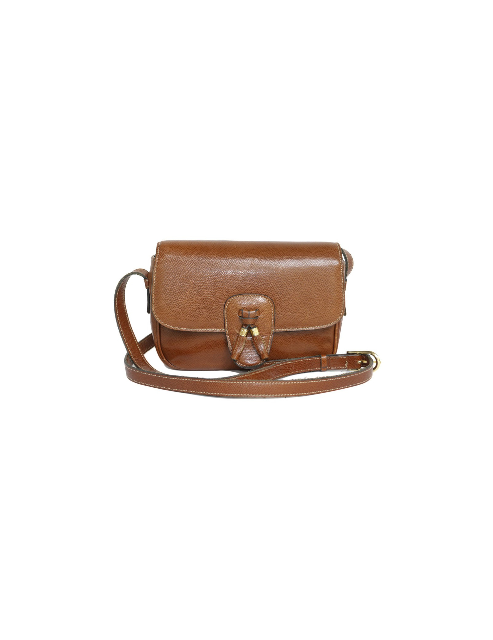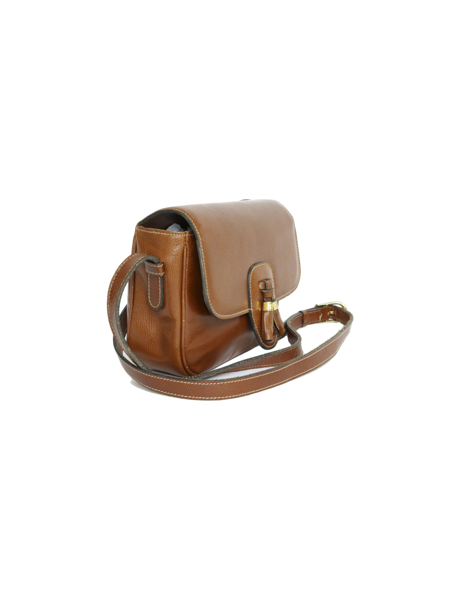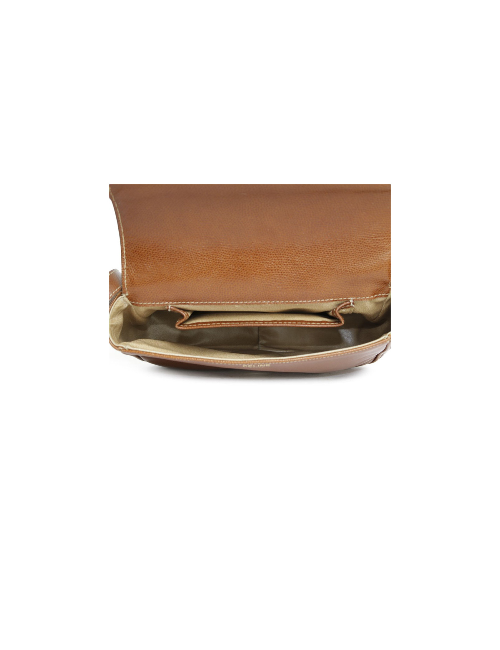 Mini sac Céline, en cuir légèrement grainé de couleur cognac (traces d'usage).