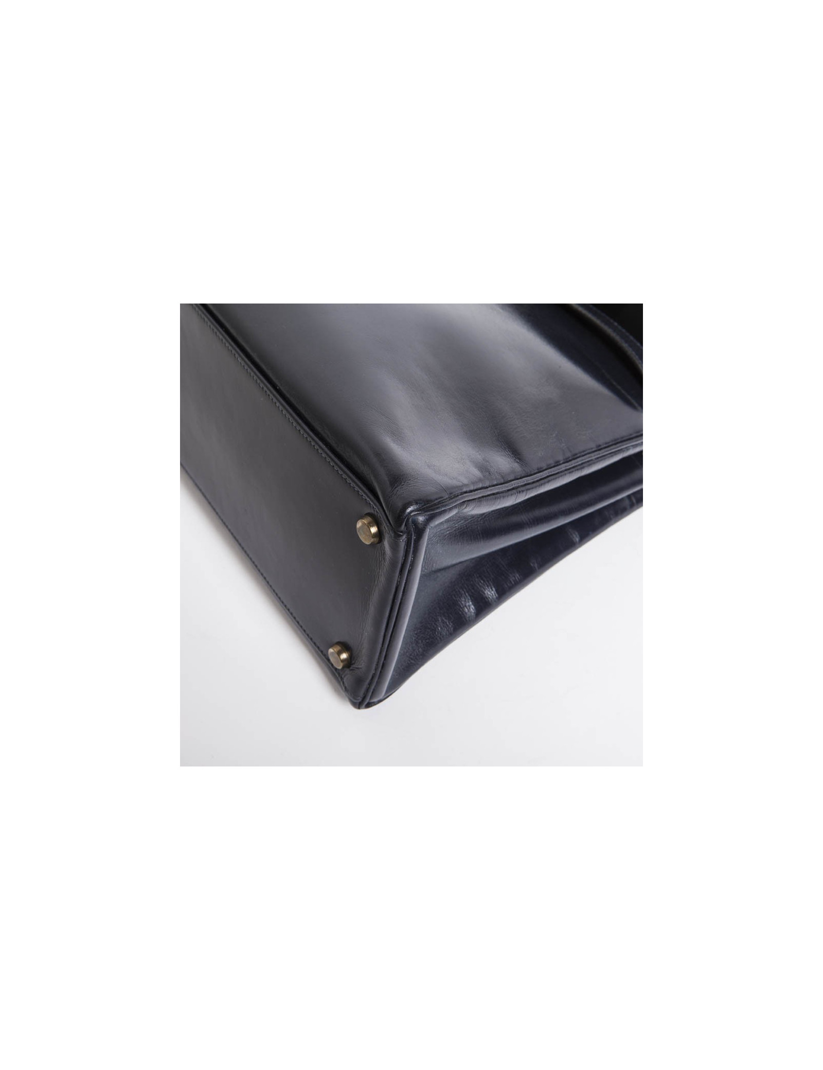 Sac Kelly 32 HERMES vintage cuir box bleu marine