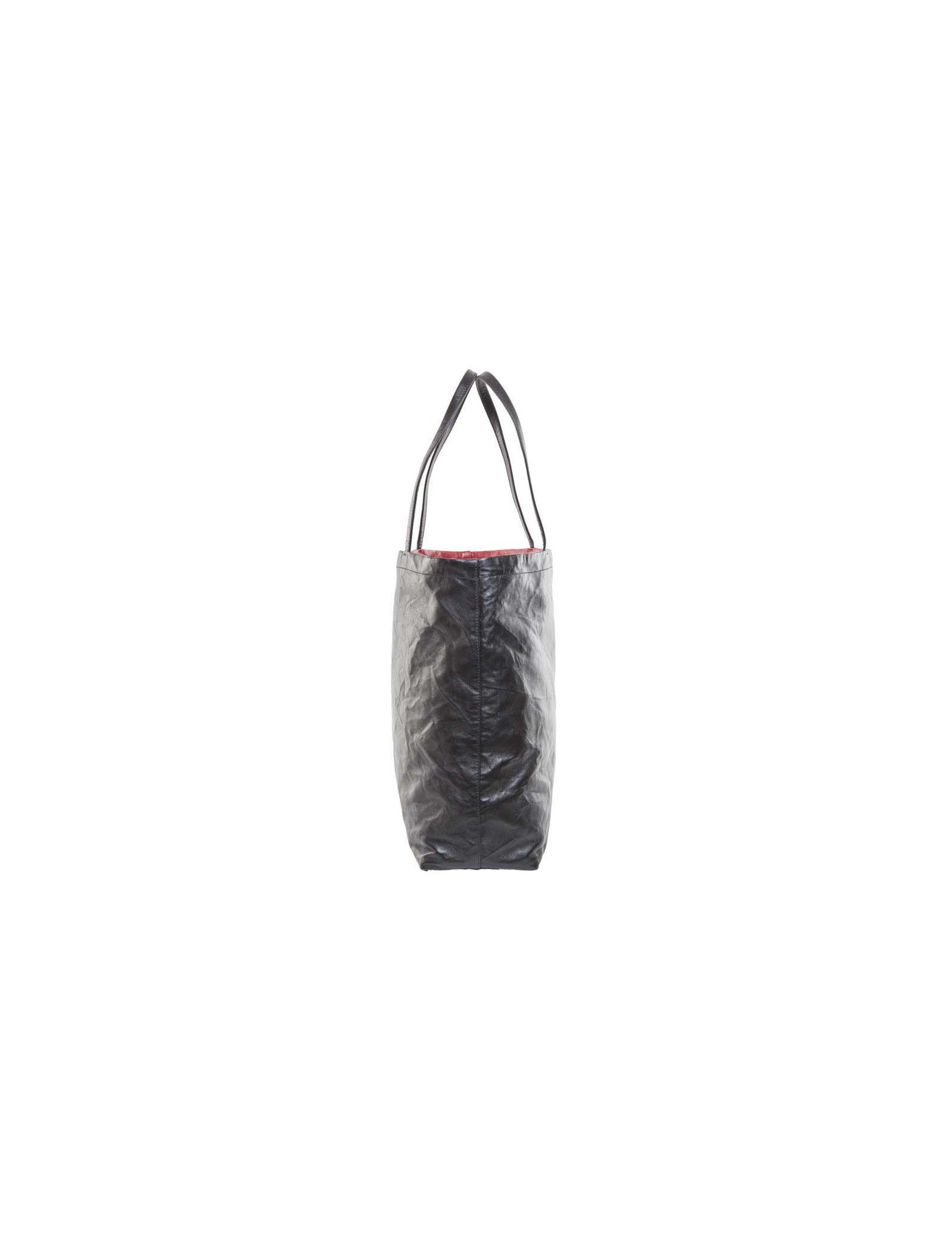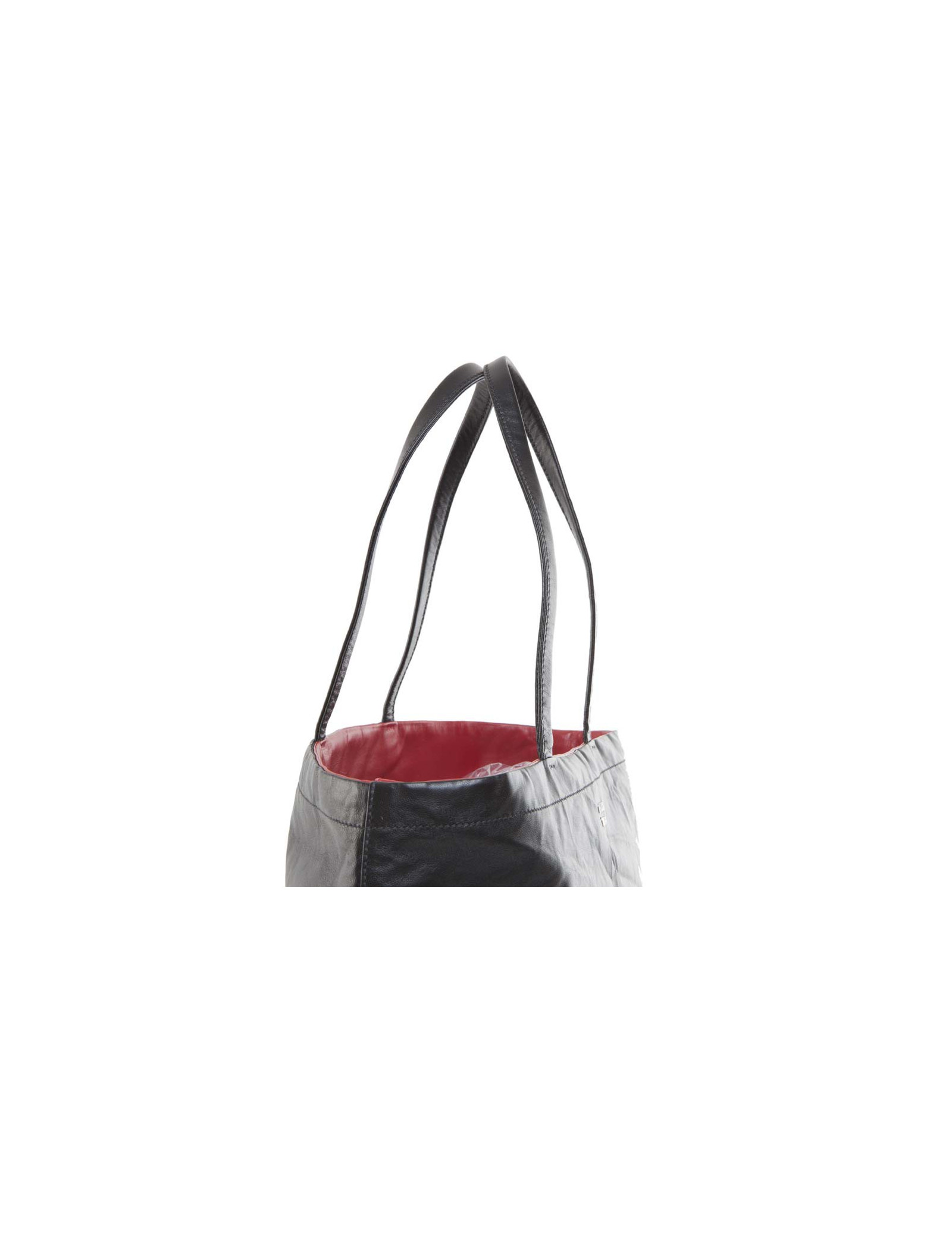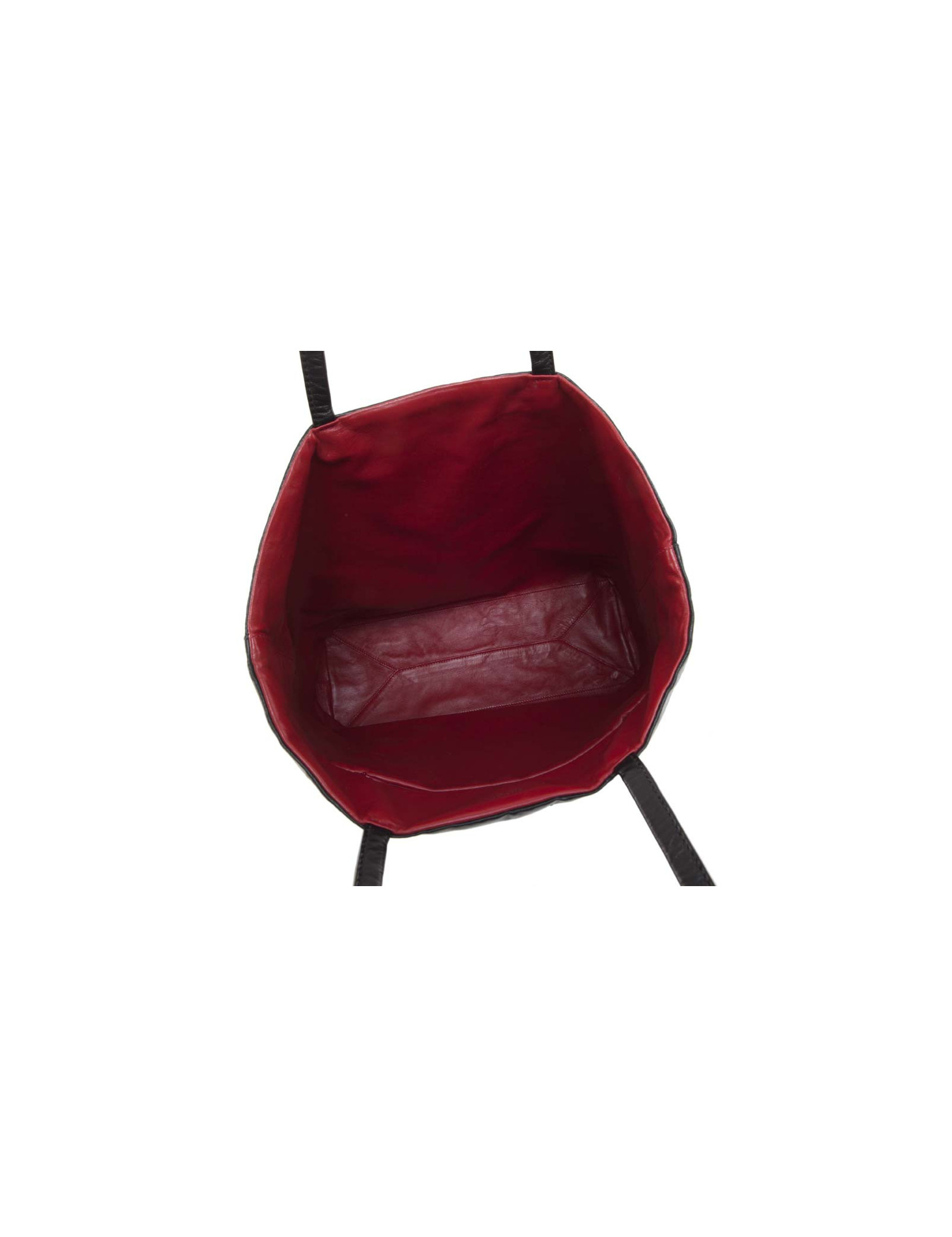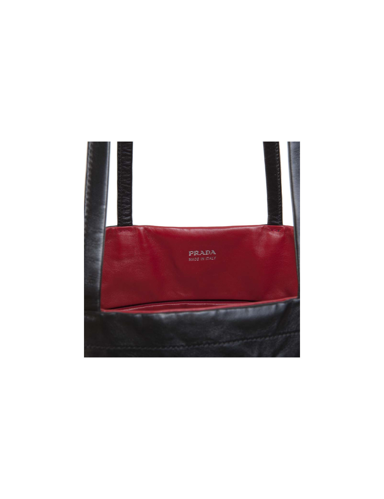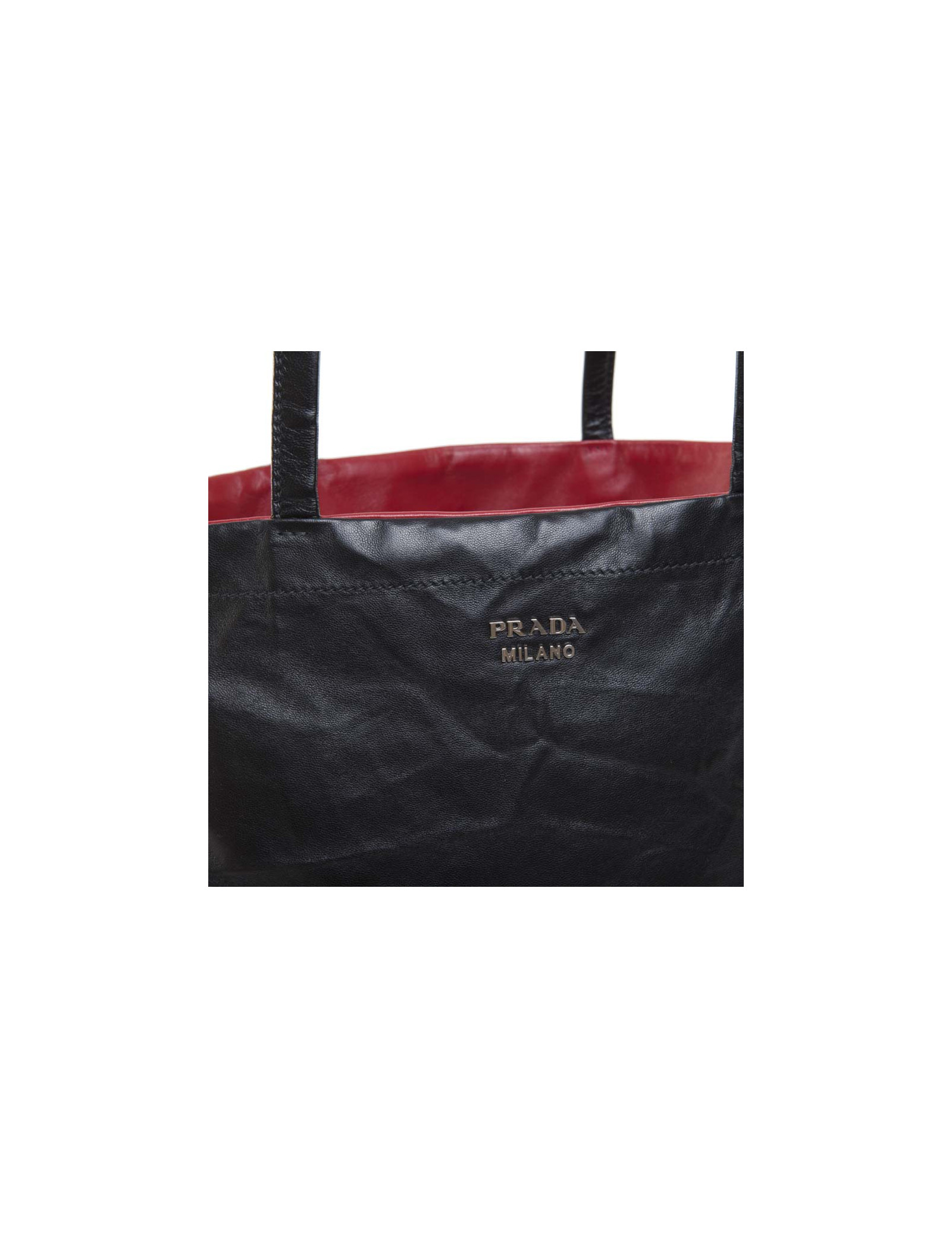 Sac cabas de la Maison Prada en cuir lisse réversible rouge et noir. Effet cuir noir froissé. A l'intérieur, une grande poche zippée. Certificat d'authenticité à l'intérieur. Acheté en décembre 2015. Sur la partie rouge : poche extérieure avec fermeture éclair.