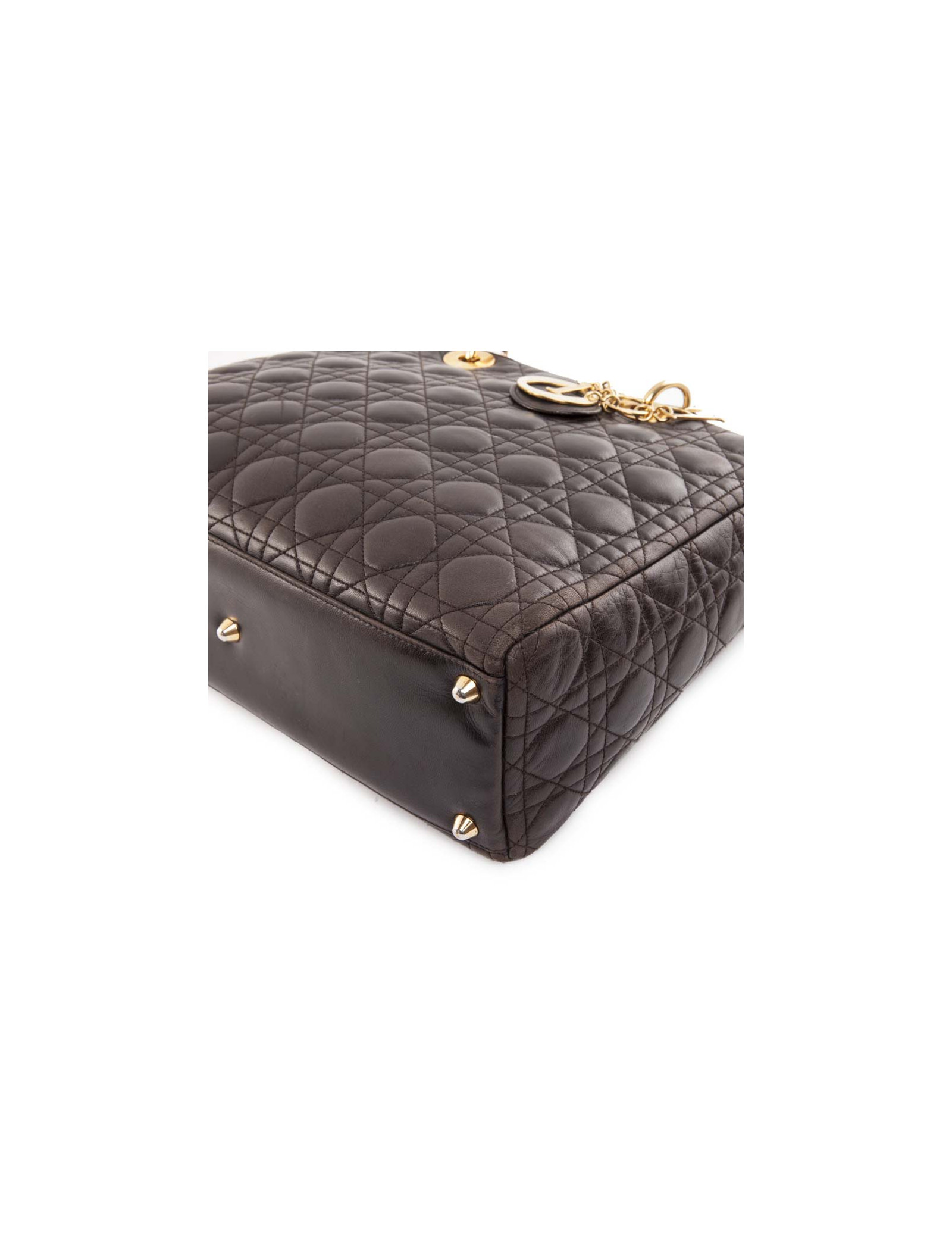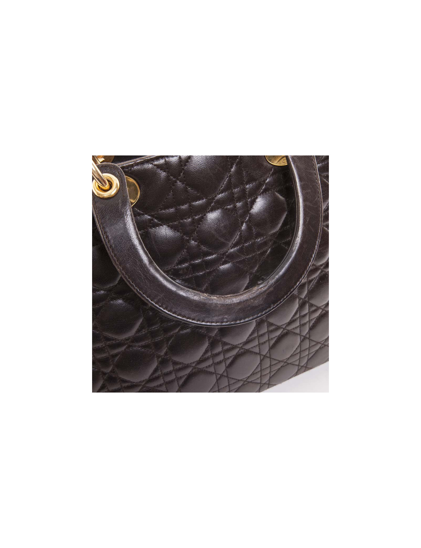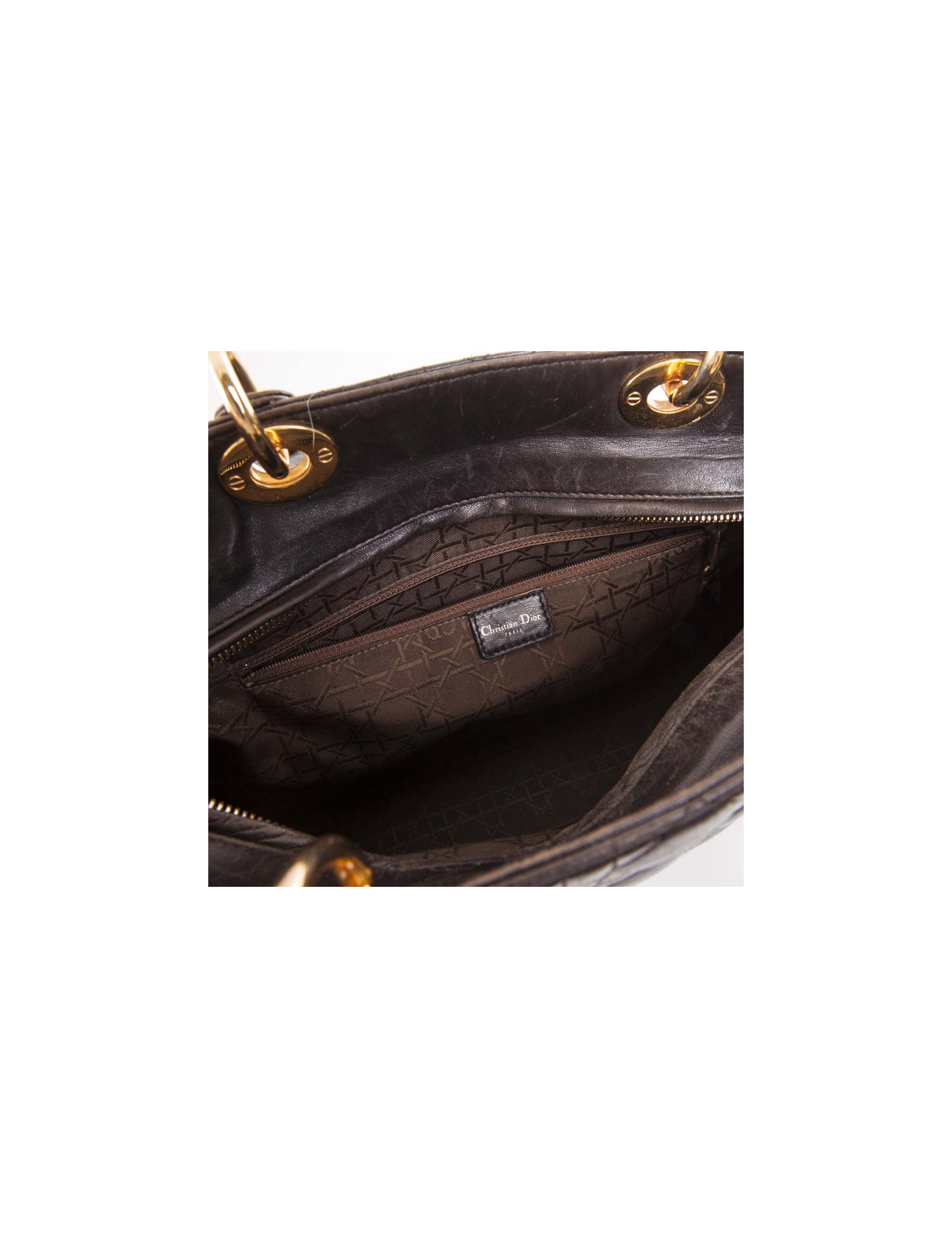 Sac Lady Dior CHRISTIAN DIOR cuir matelassé marron