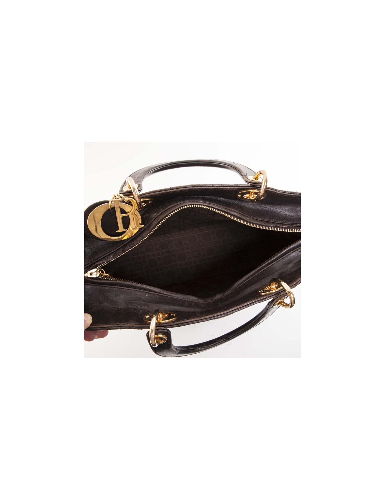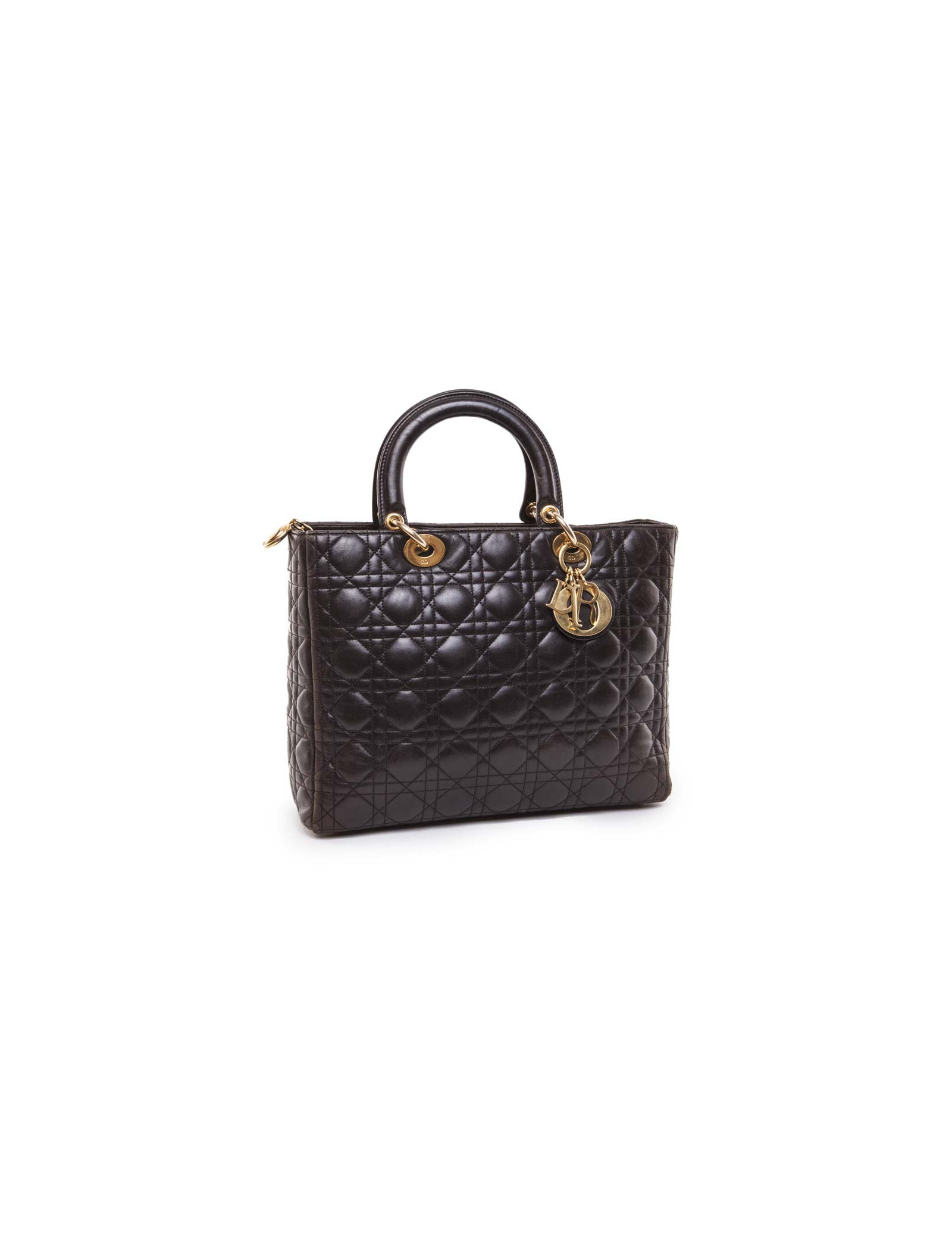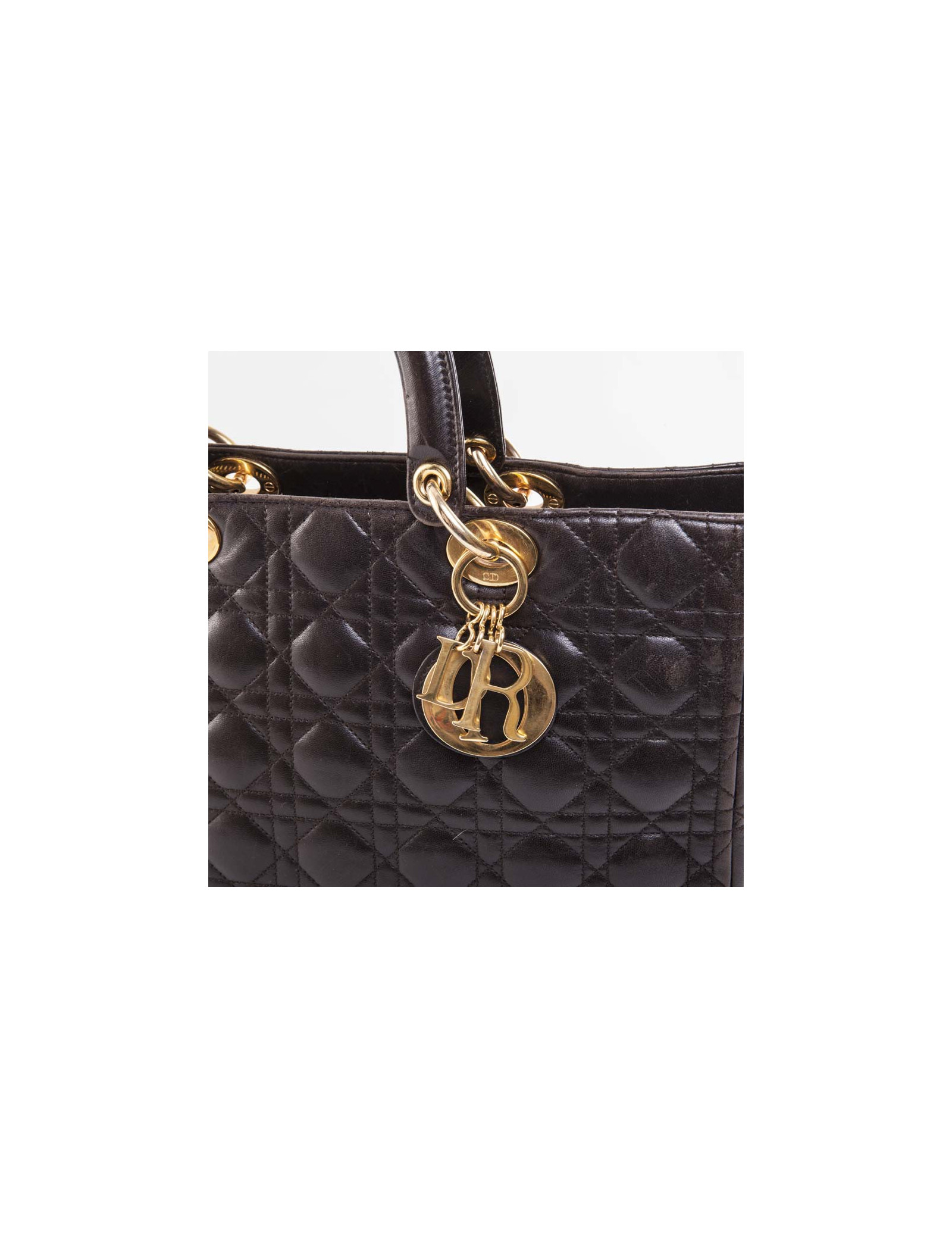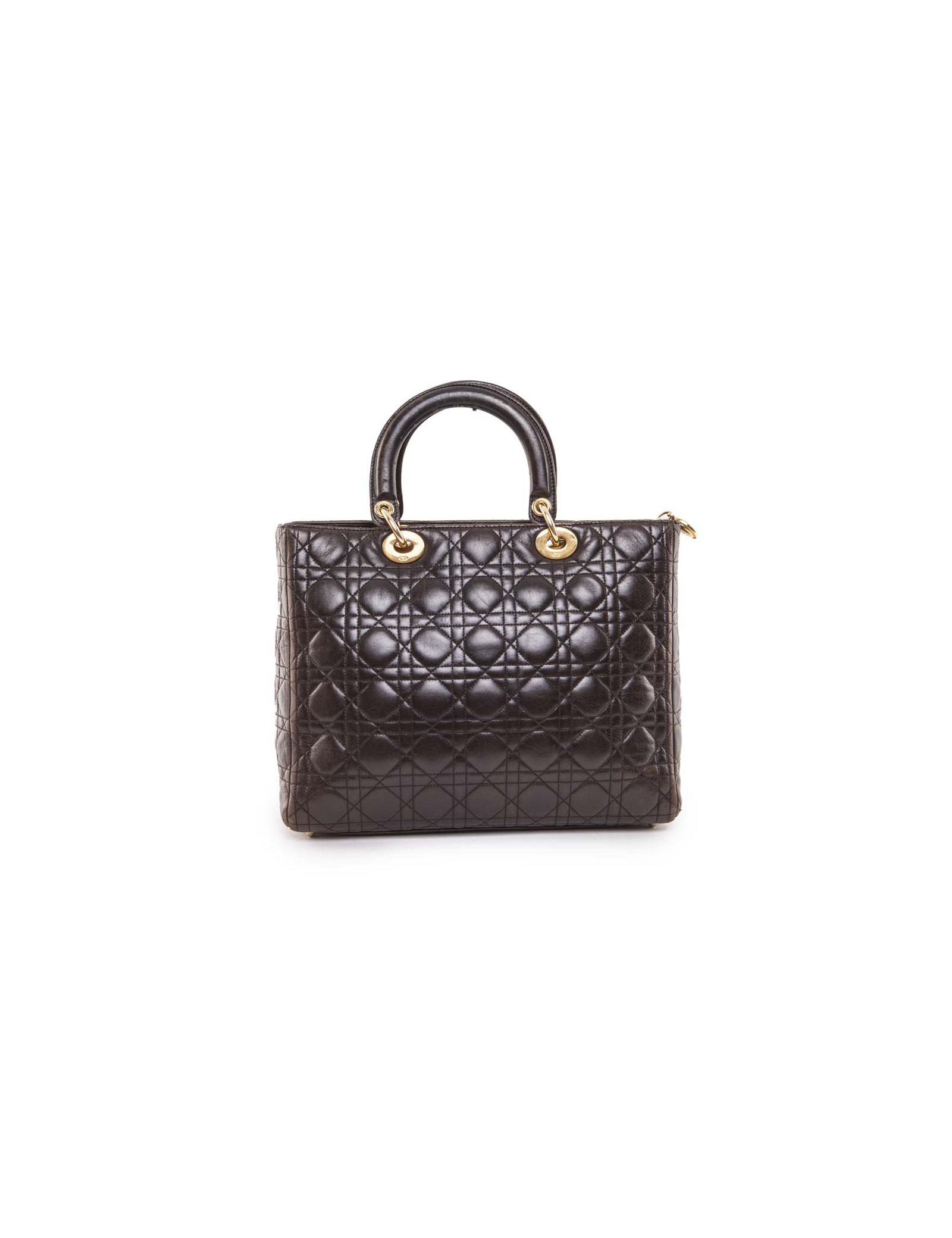 Sac Lady Dior CHRISTIAN DIOR cuir matelassé marron