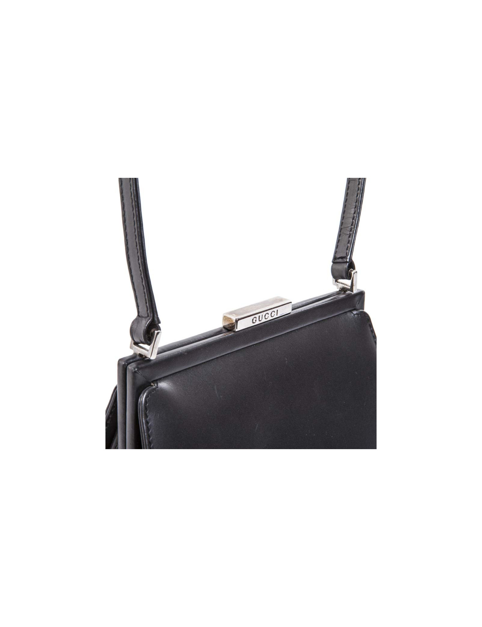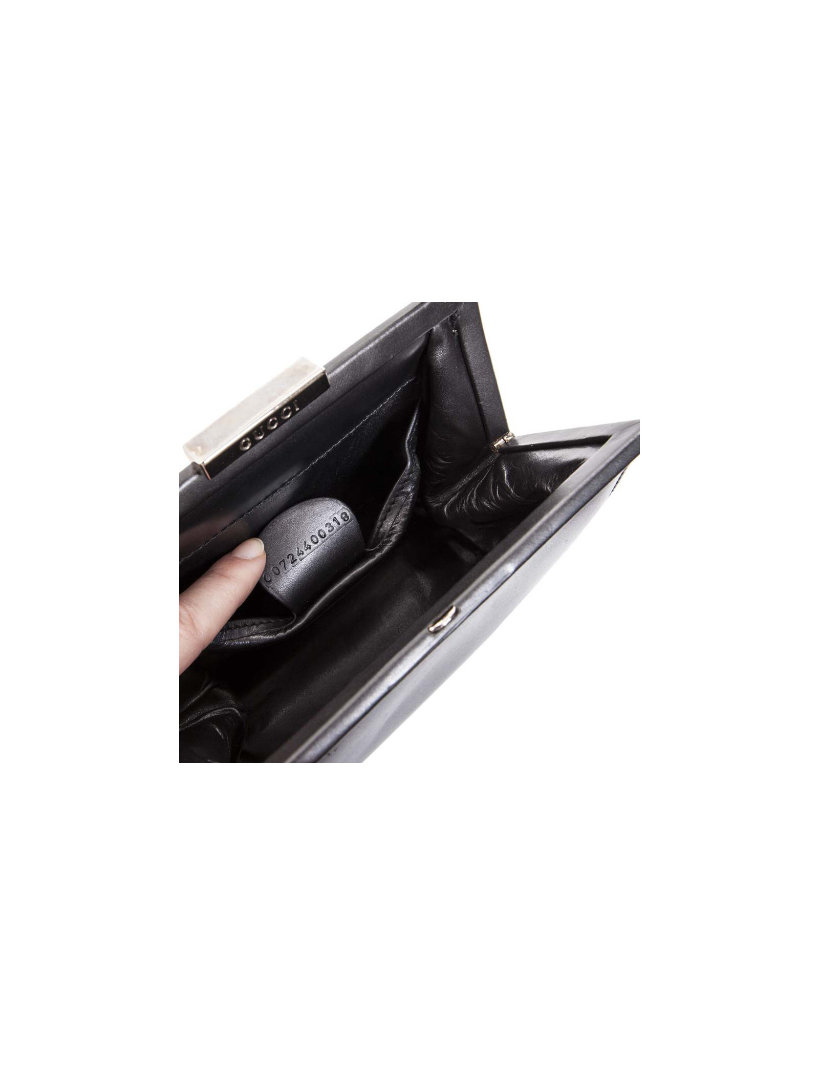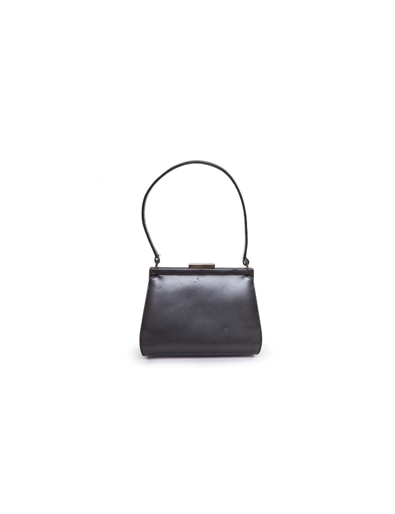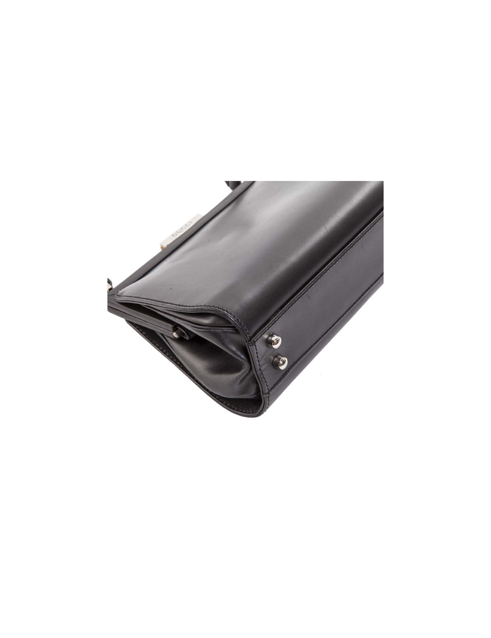 Sac (petit), en cuir lisse gris anthracite de la Maison Gucci. Bijouterie argentée.