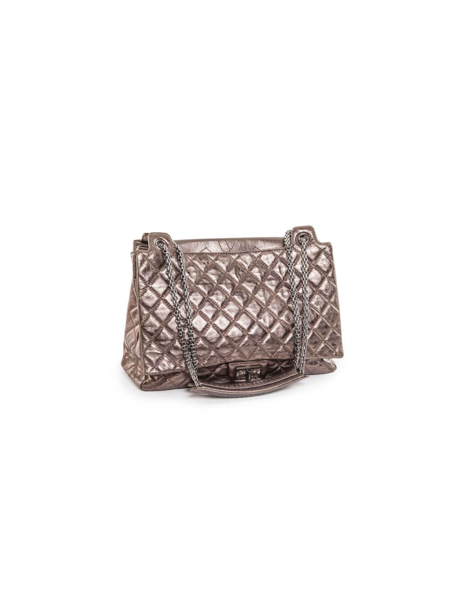 Sac cabas de la Maison Chanel en cuir matelassé brillant marron glacé.