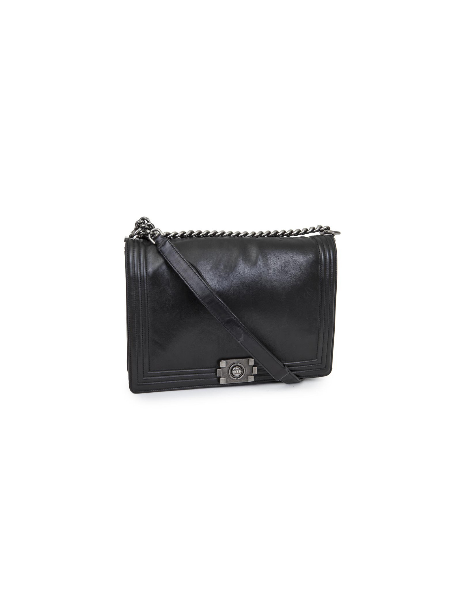 Collector. Série Limitée. Sac "Boy" GM de la Maison Chanel, en cuir d'agneau noir. Bijouterie en métal argenté vieilli.