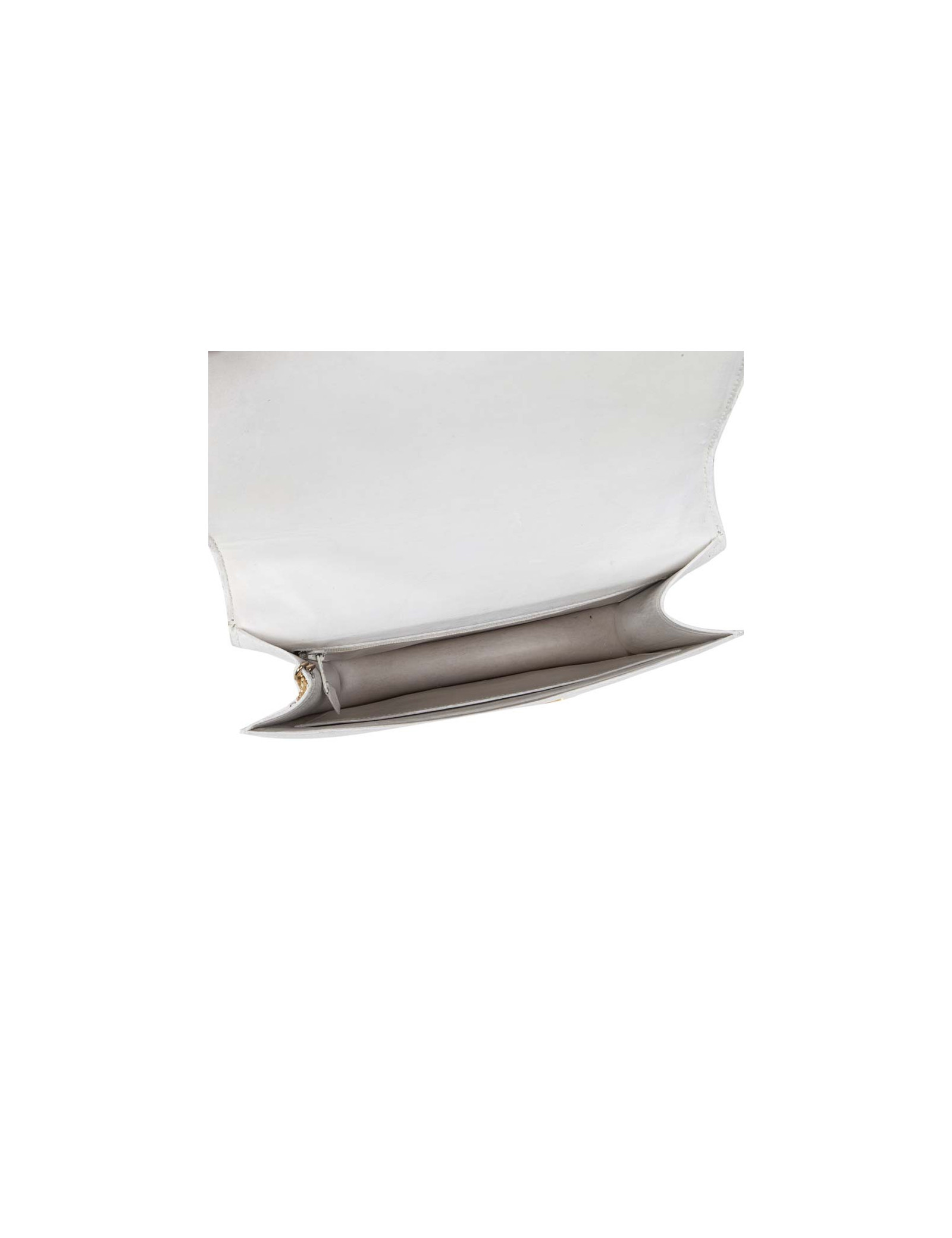 Le sac a été nettoyé et pigmenté. Intérieur entièrement doublé d'agneau blanc. Lettre N dans un rond (Année 1984). La garniture métallique est en plaqué or avec micro rayures. La bandoulière permet un porté épaule ou un porté main
