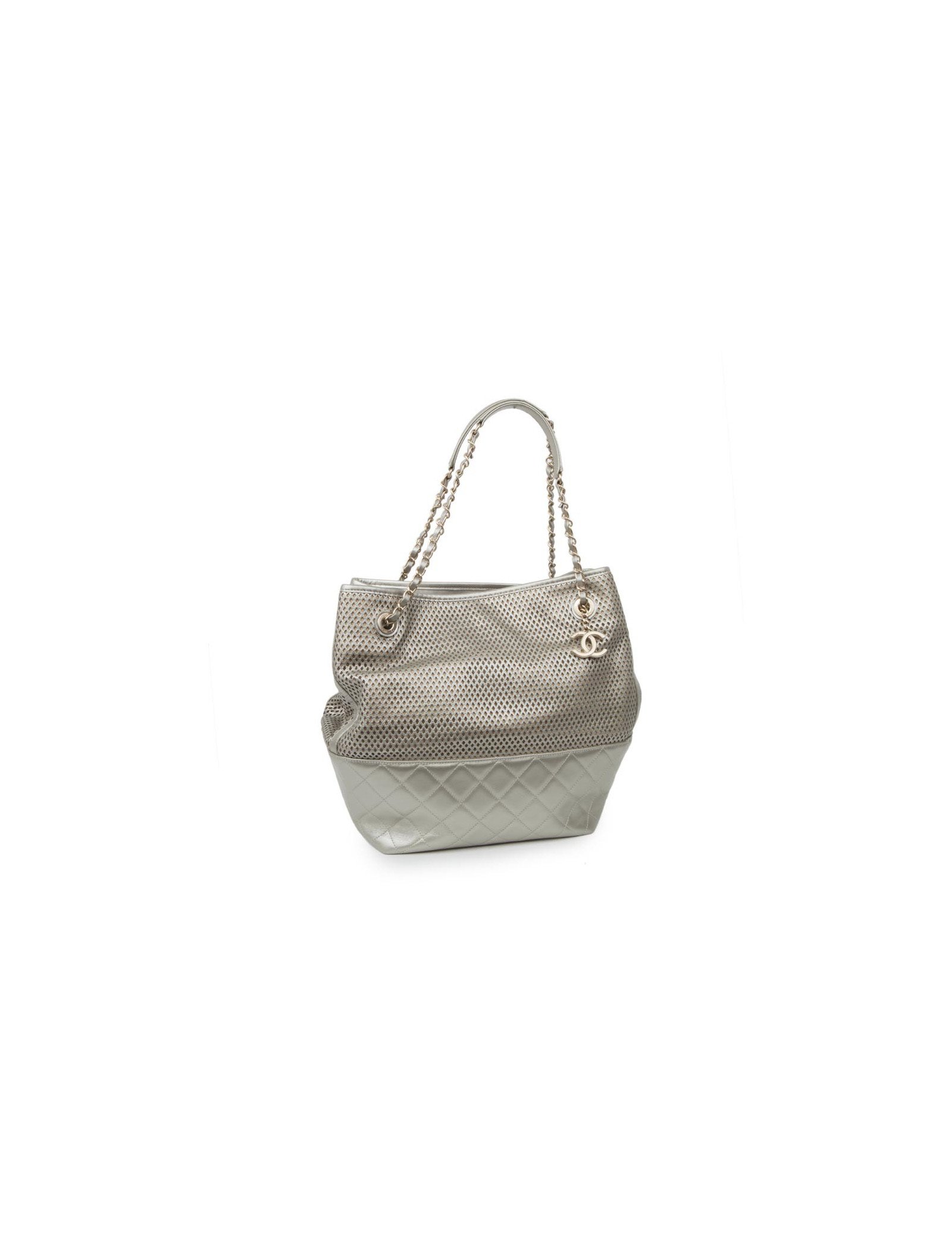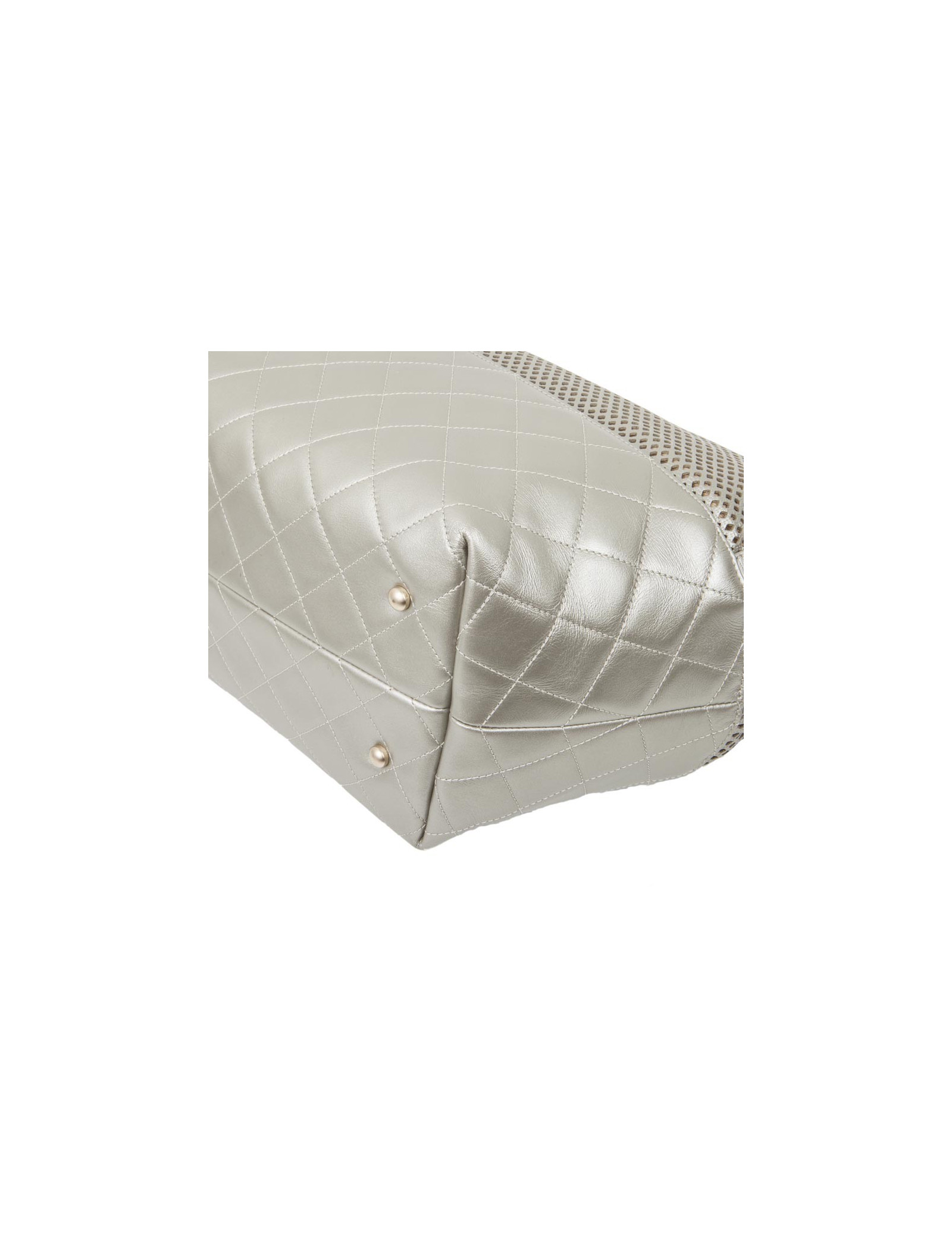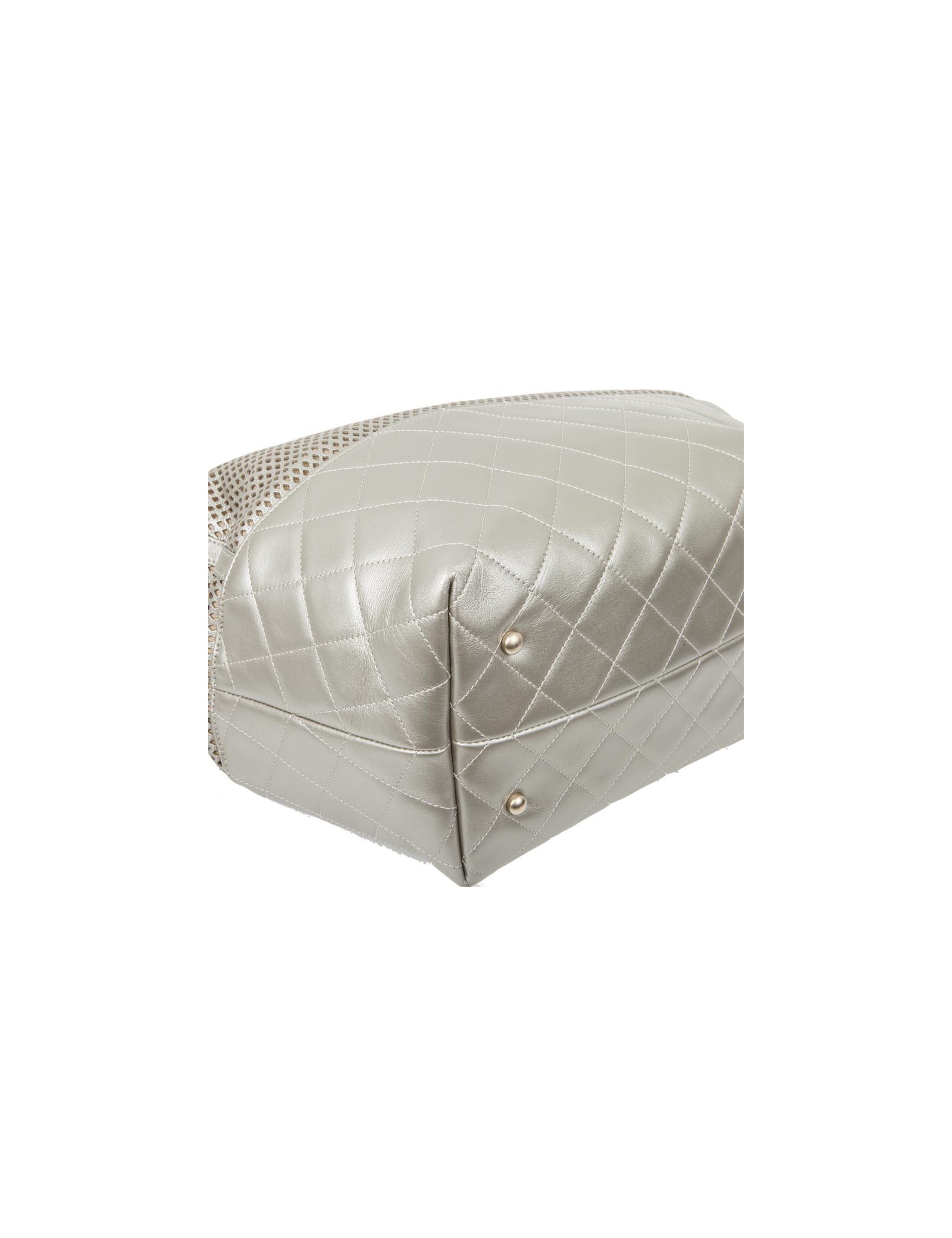 Sac CHANEL en cuir matelassé et perforé argenté