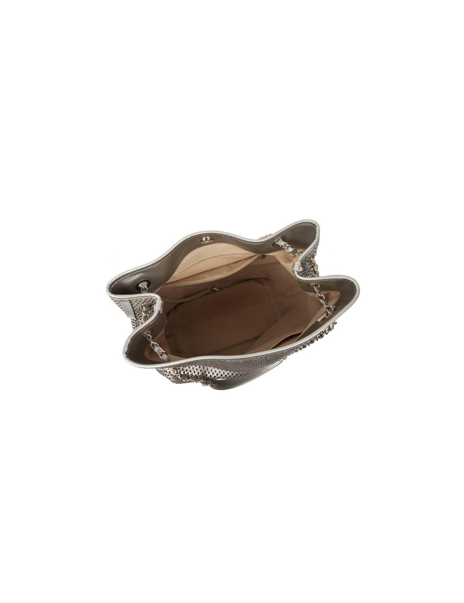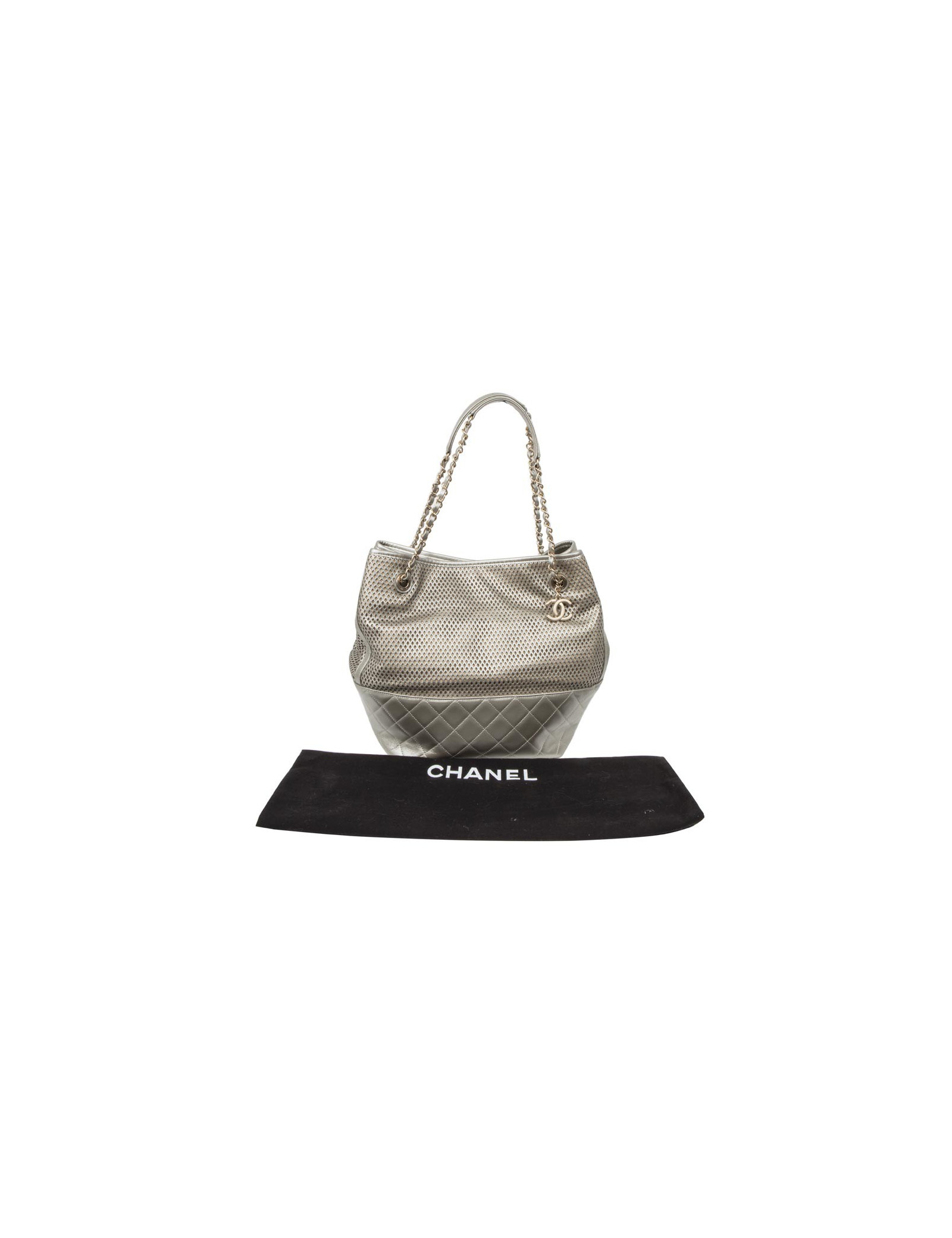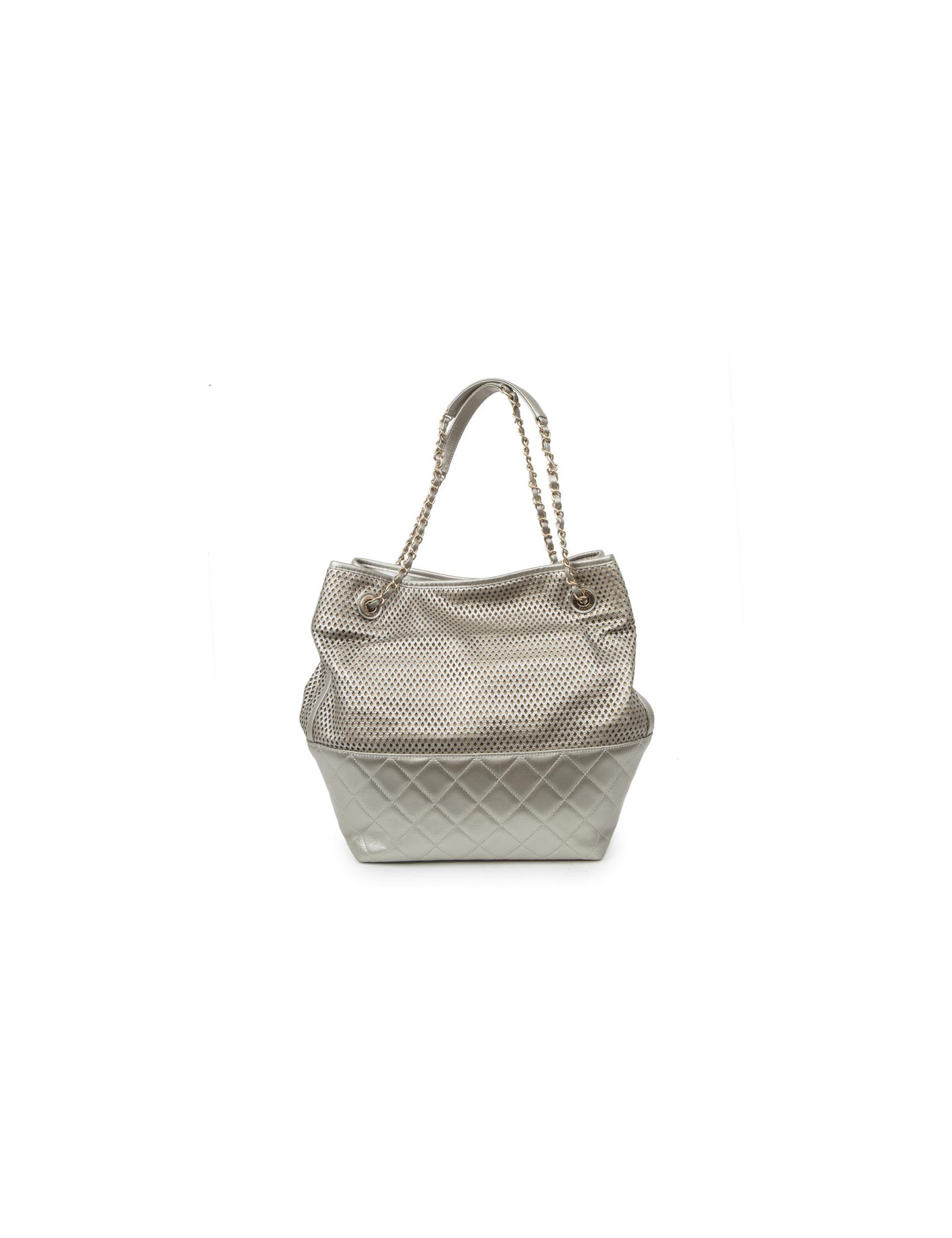 Sac CHANEL en cuir matelassé et perforé argenté