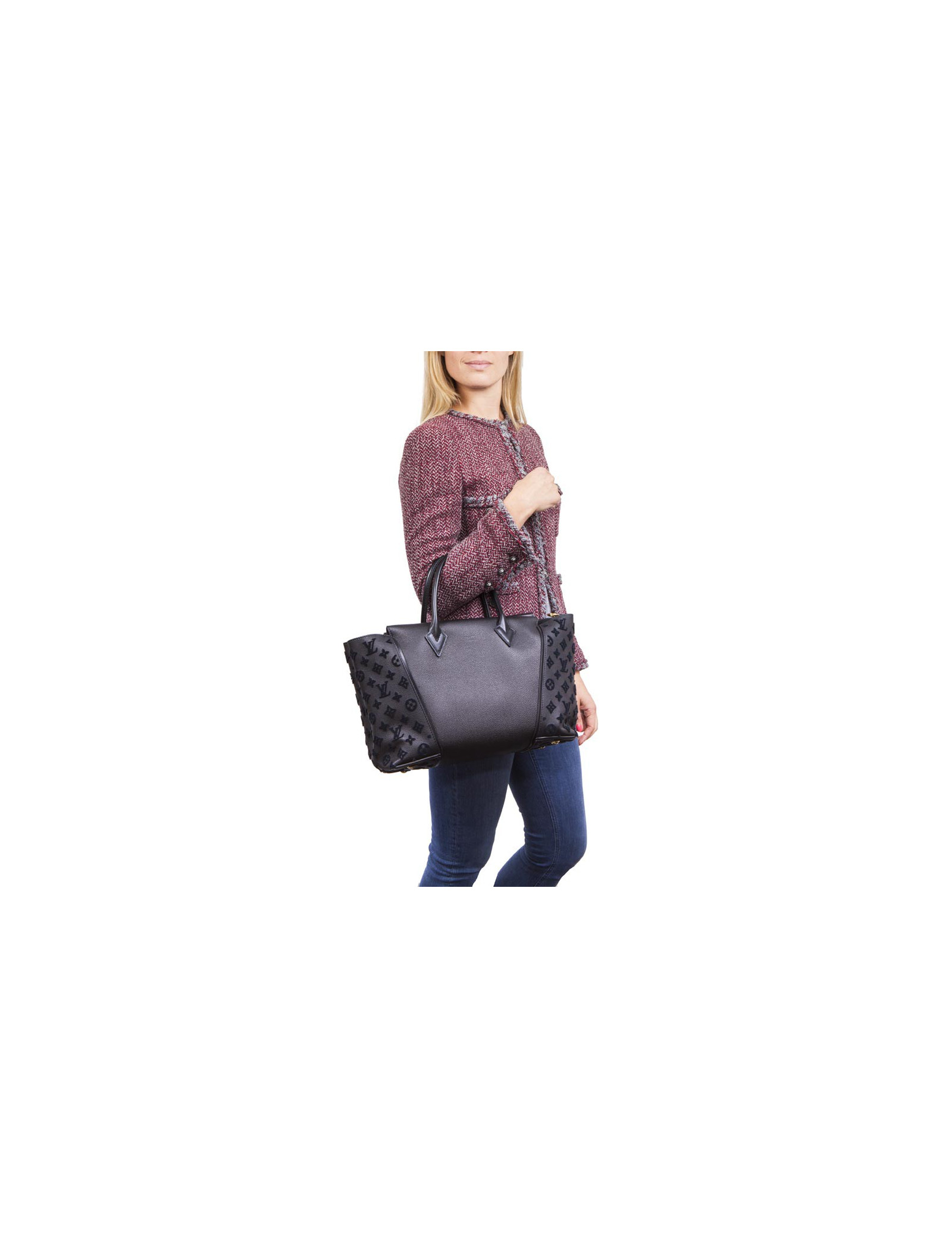 Sac "Tote W" LOUIS VUITTON cuir taurillon noir