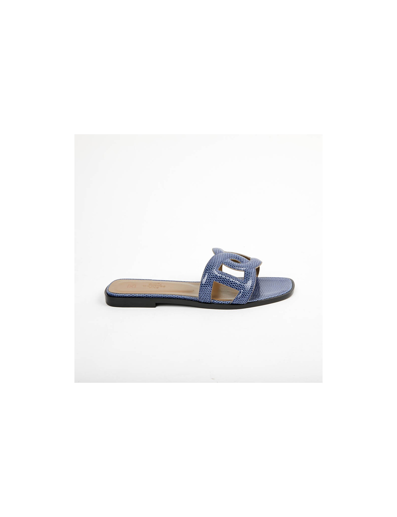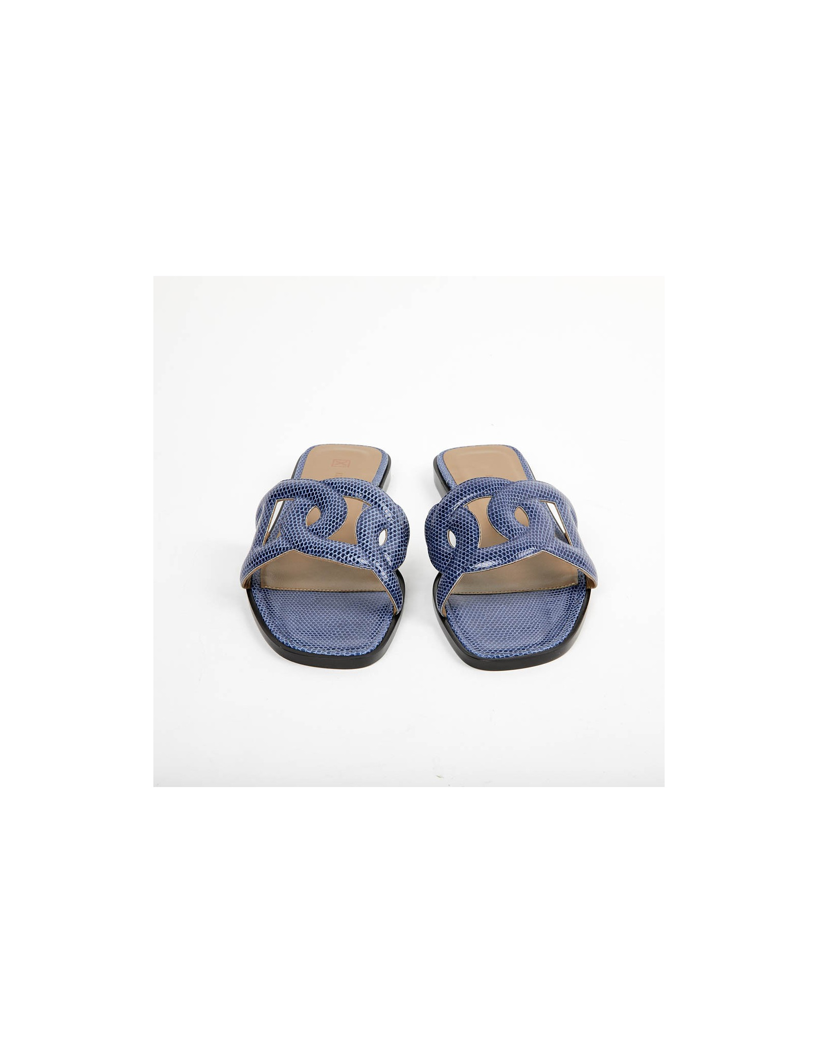 Sandales Omaha HERMES lézard bleu maritime T37