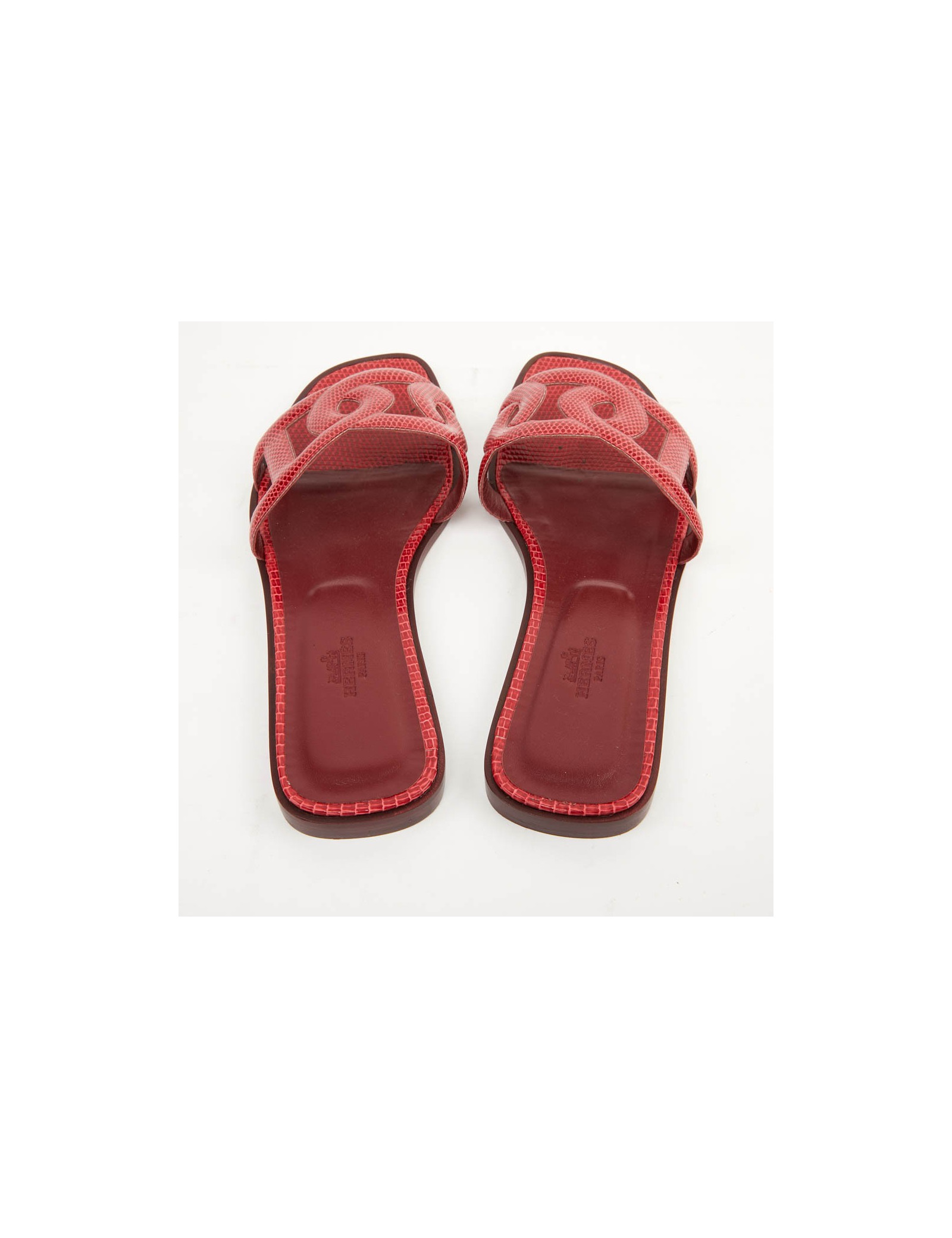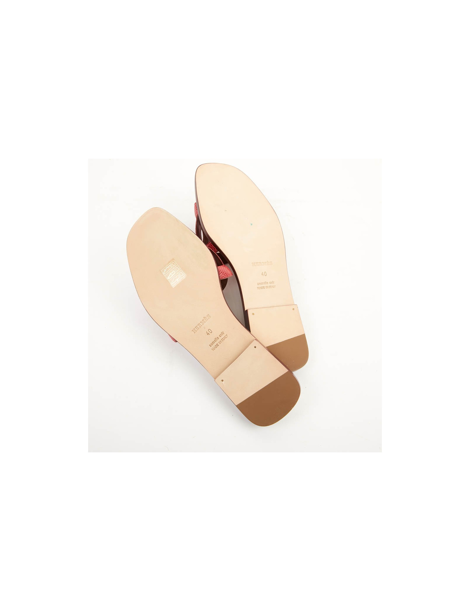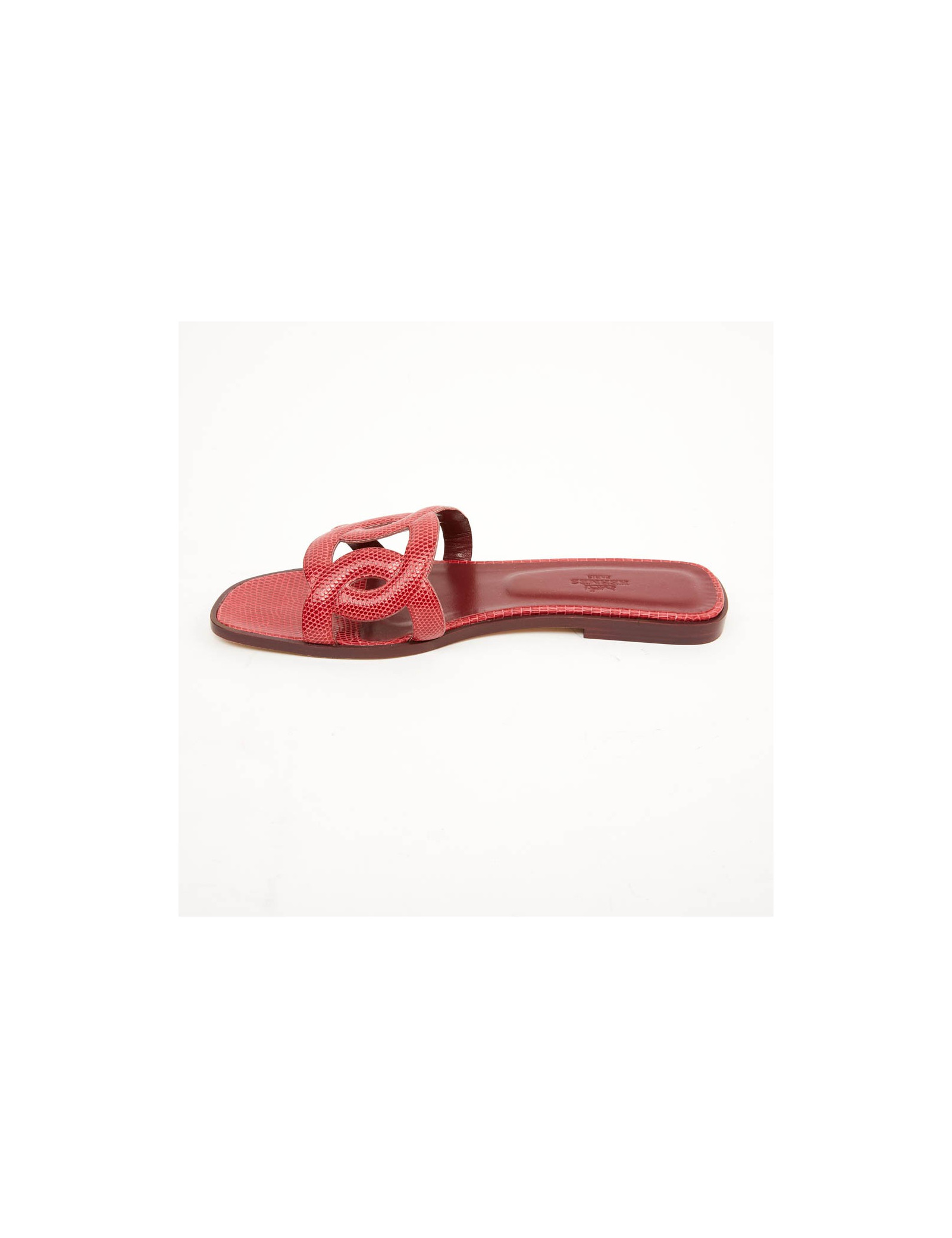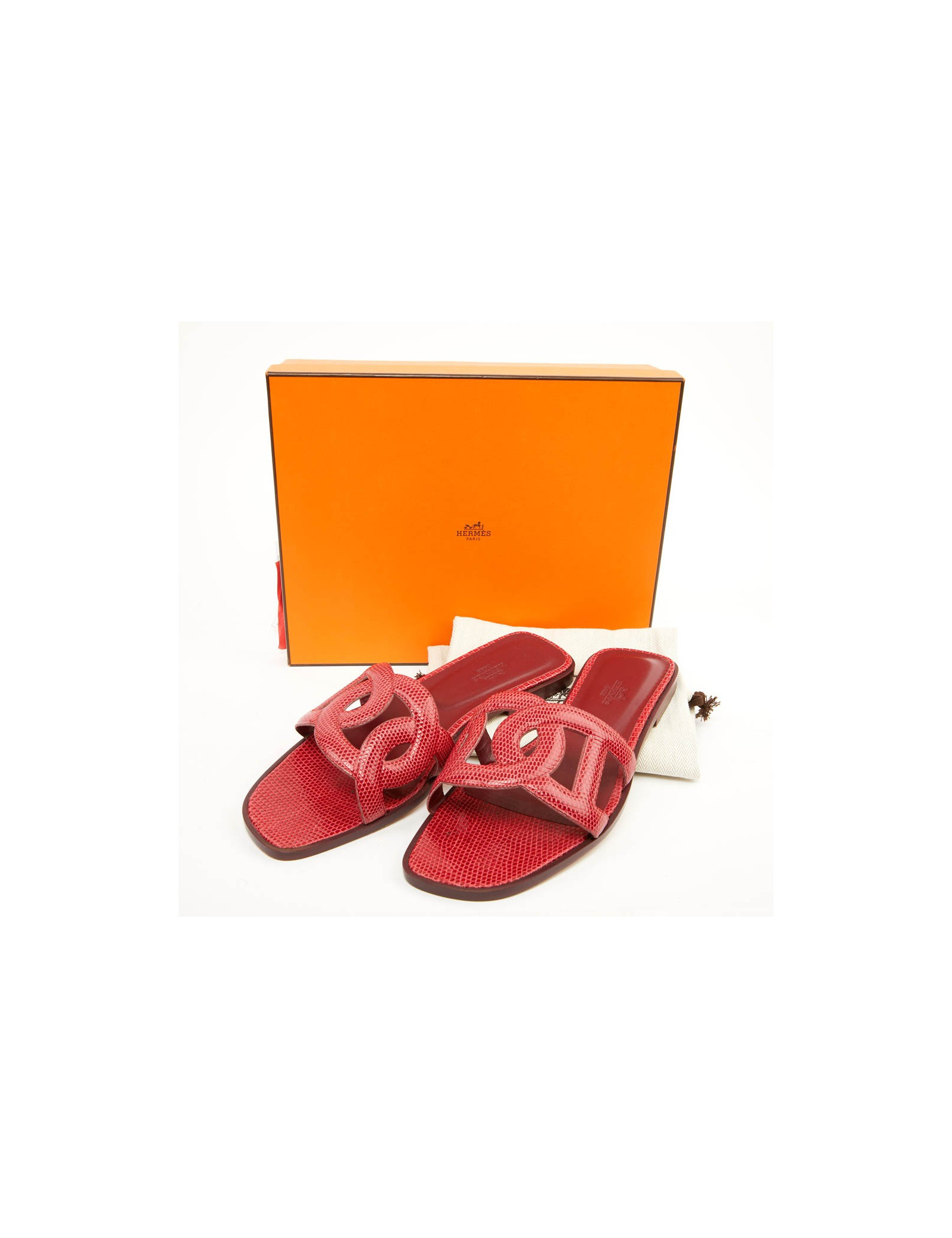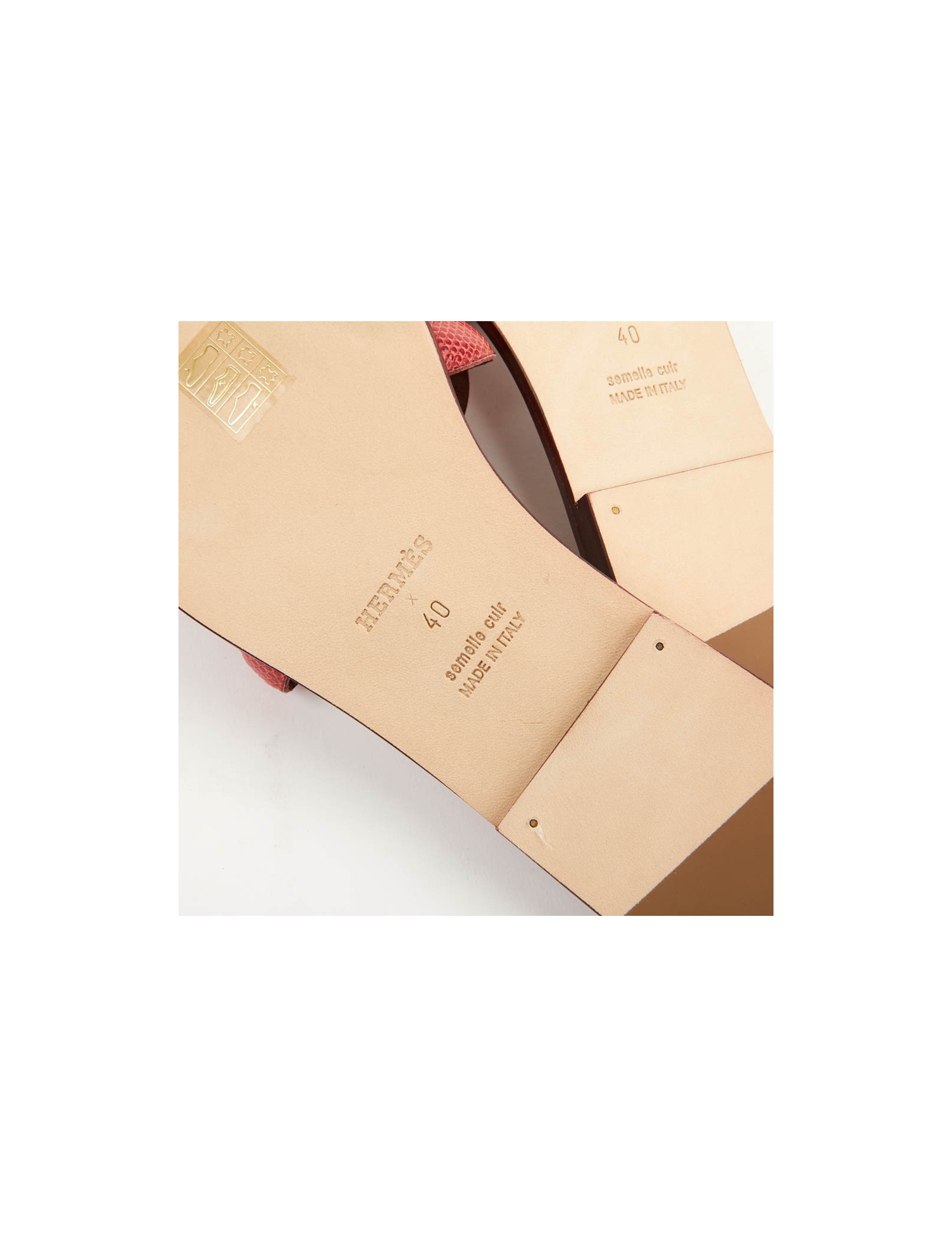 Sandales Omaha HERMES T 40 lézard brillant carmin