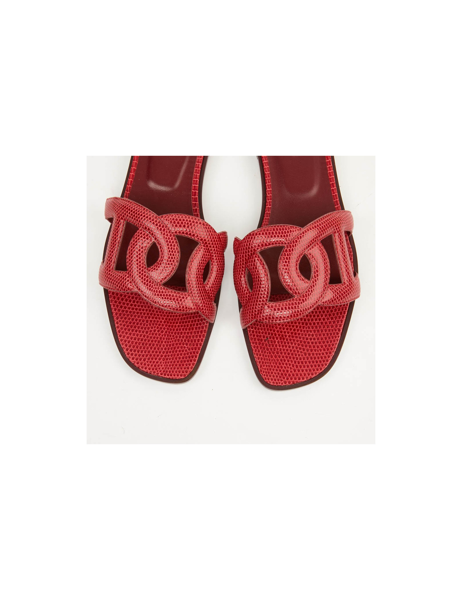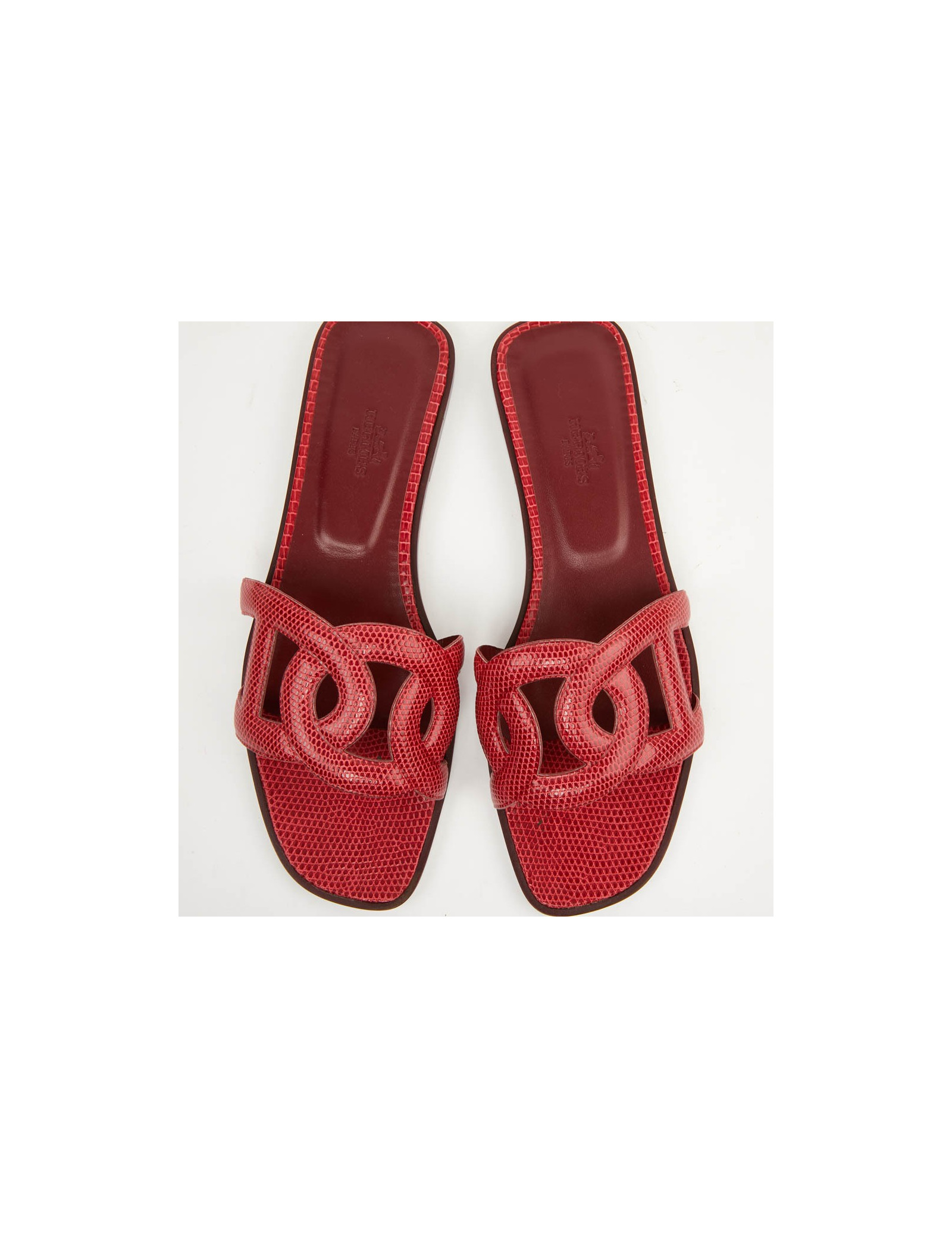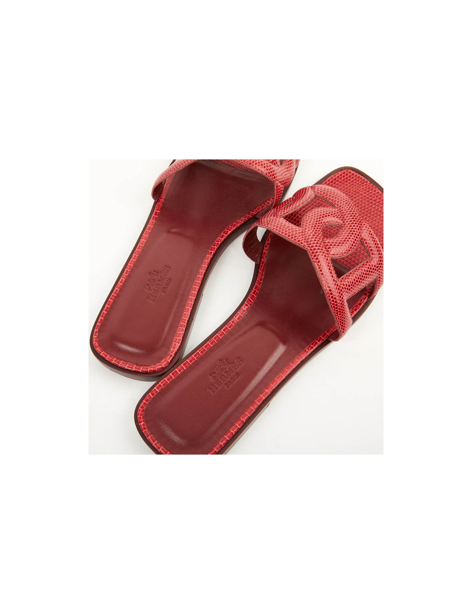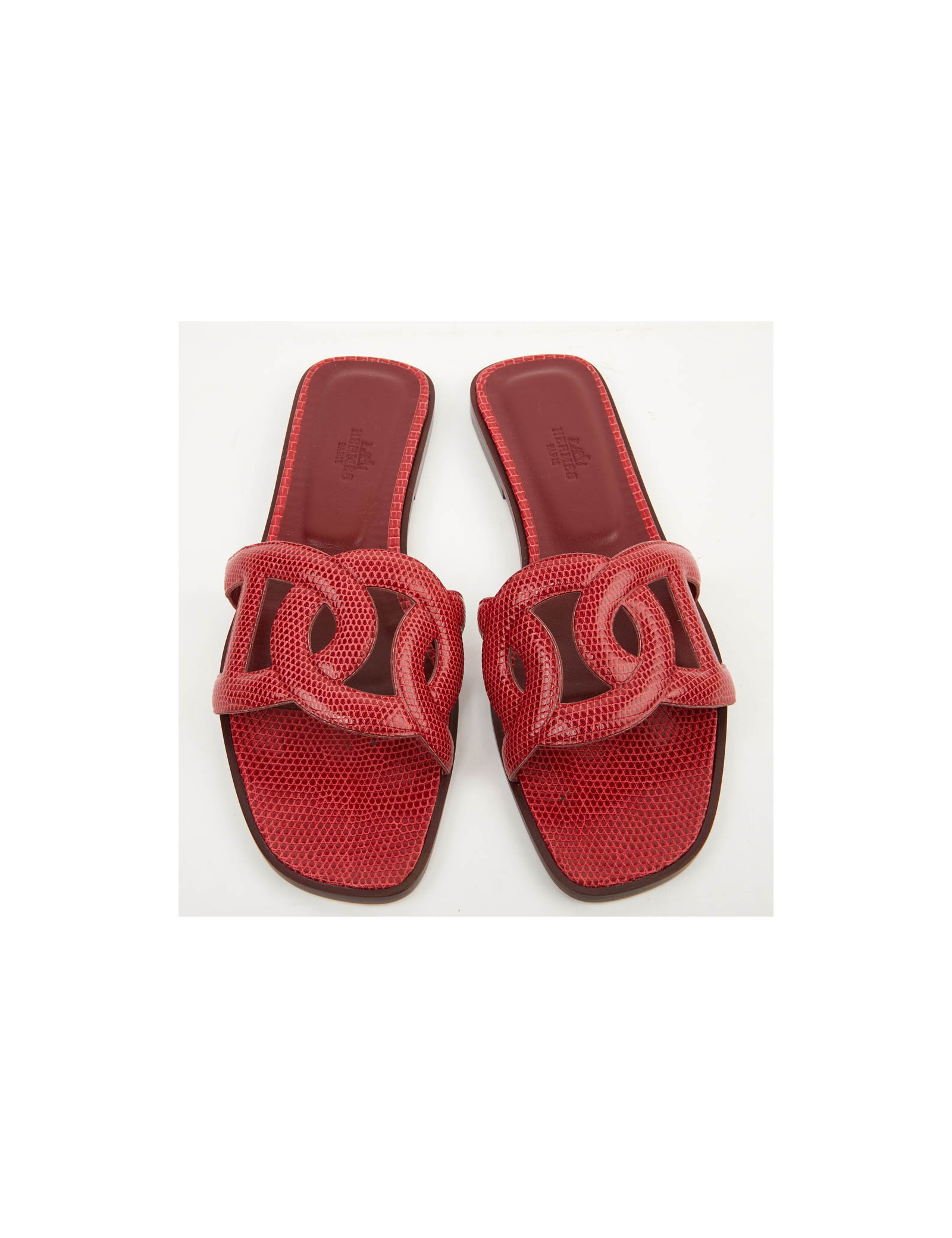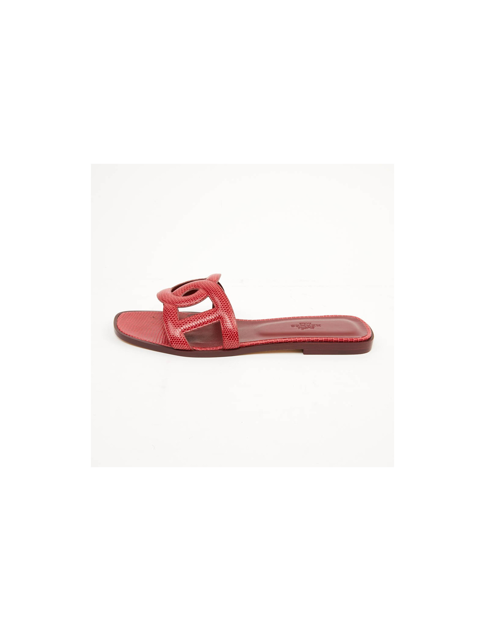 Sandales Omaha HERMES T 40 lézard brillant carmin