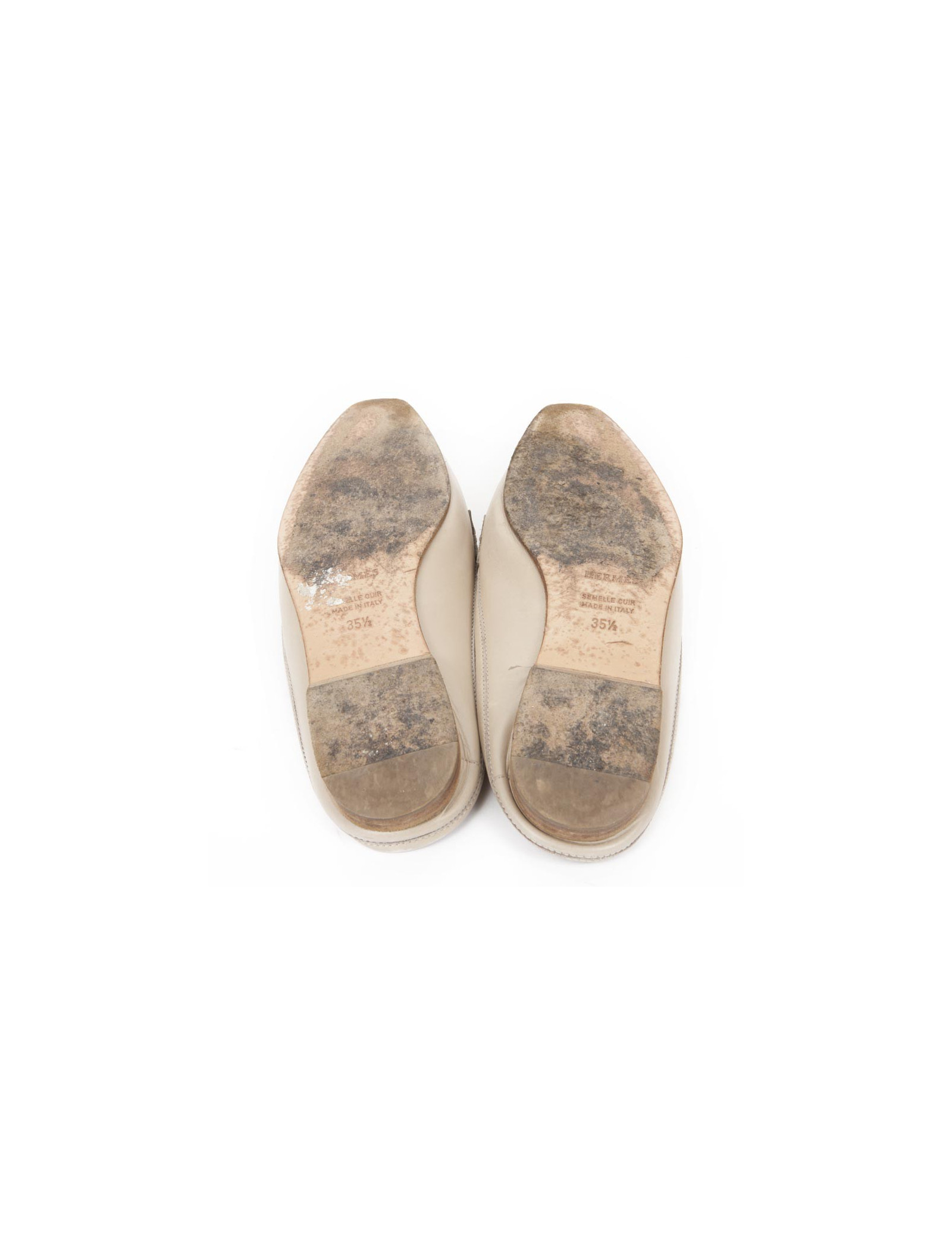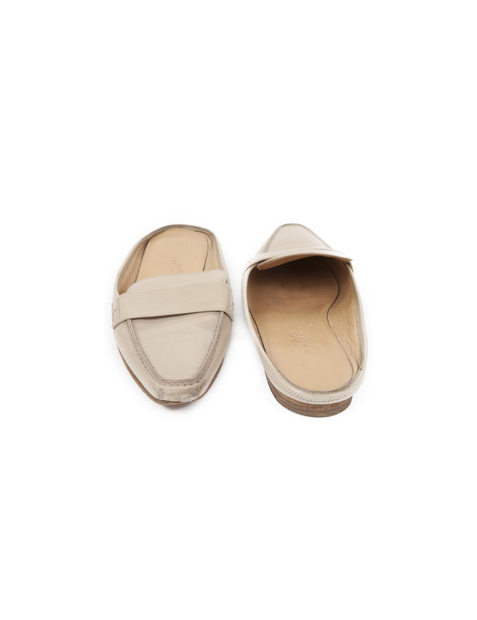 Mules Hermes en cuir beige t 35.5. L'intérieur est en cuir beige. En bon état, sur le bout des chaussures le cuir est légèrement rapé.