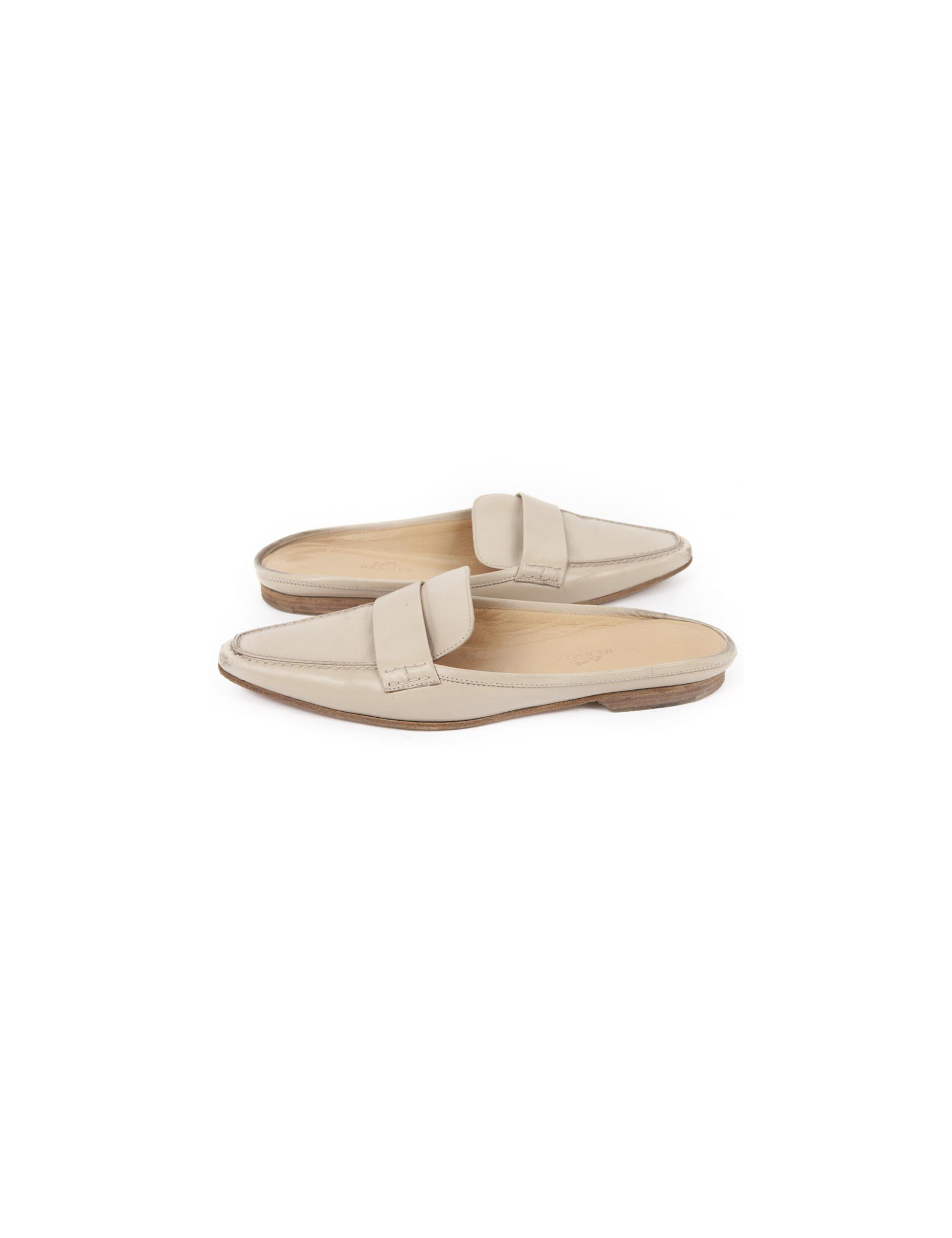 Mules Hermes T 35,5 cuir beige
