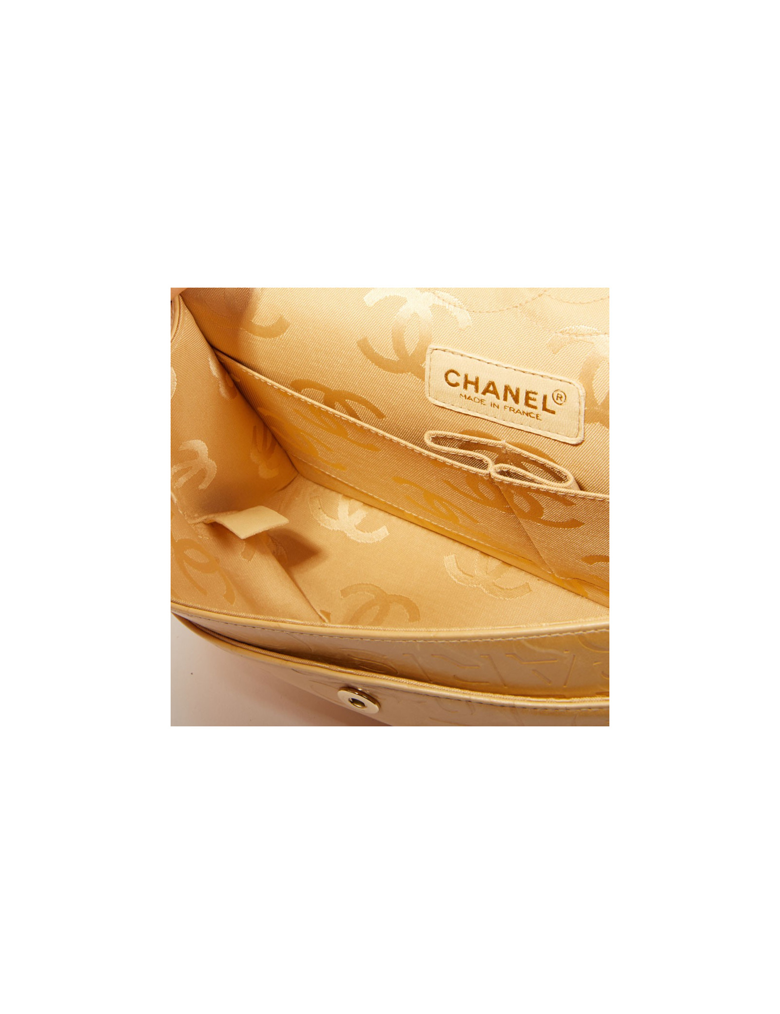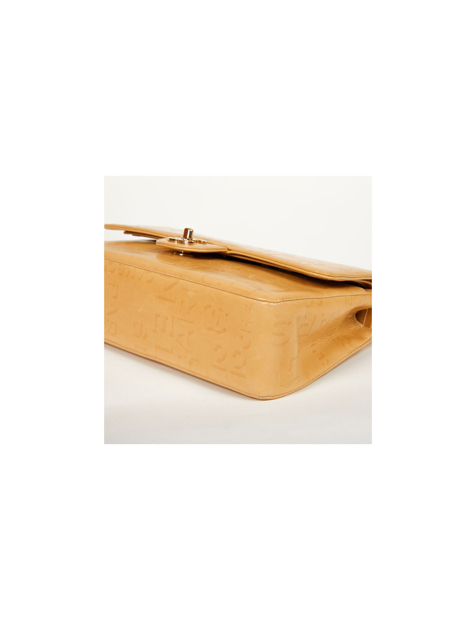 Sac Chanel siglé beige embossé de logos "Chanel" "CC"