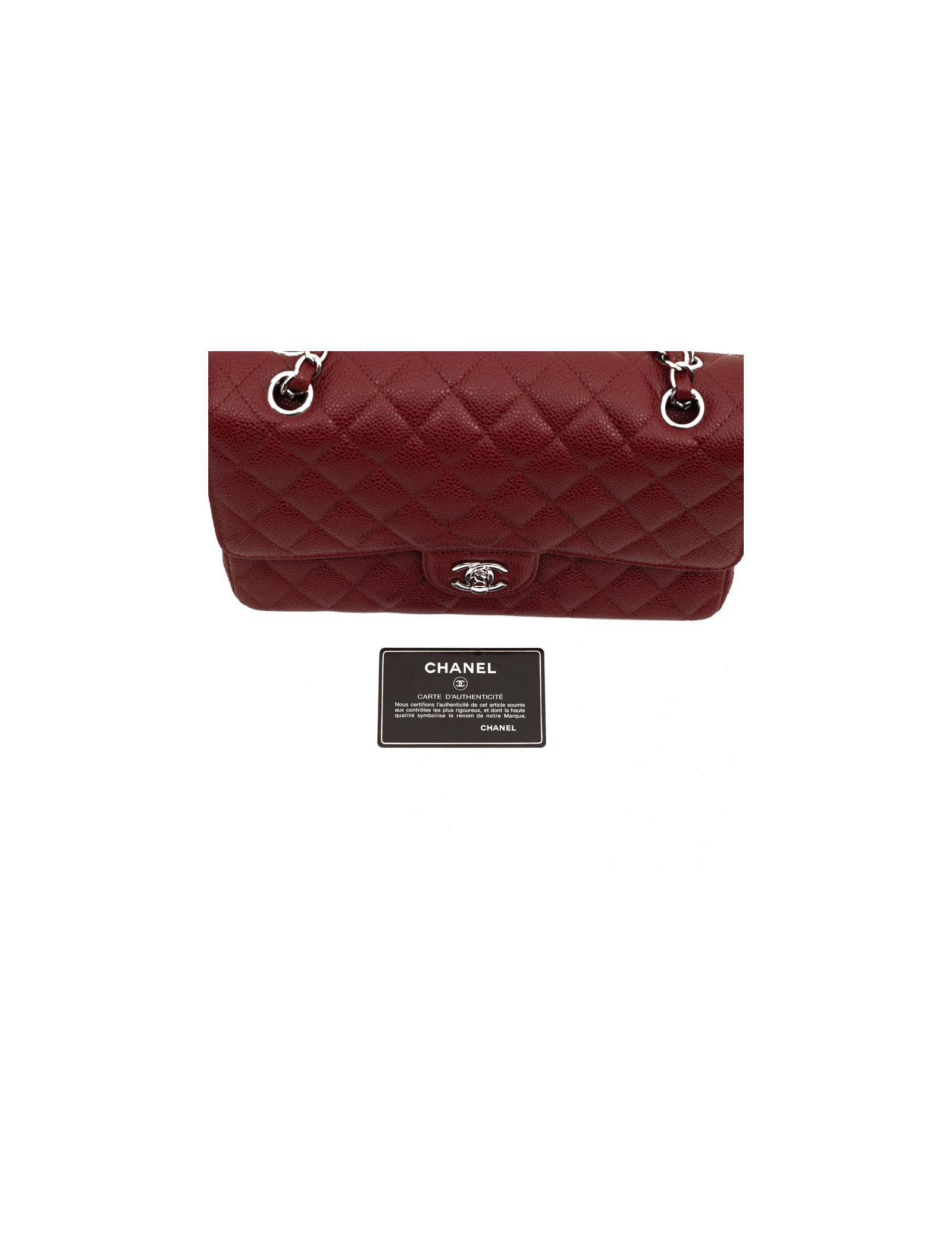 Sac Classique 25 cm CHANEL cuir grainé bordeaux