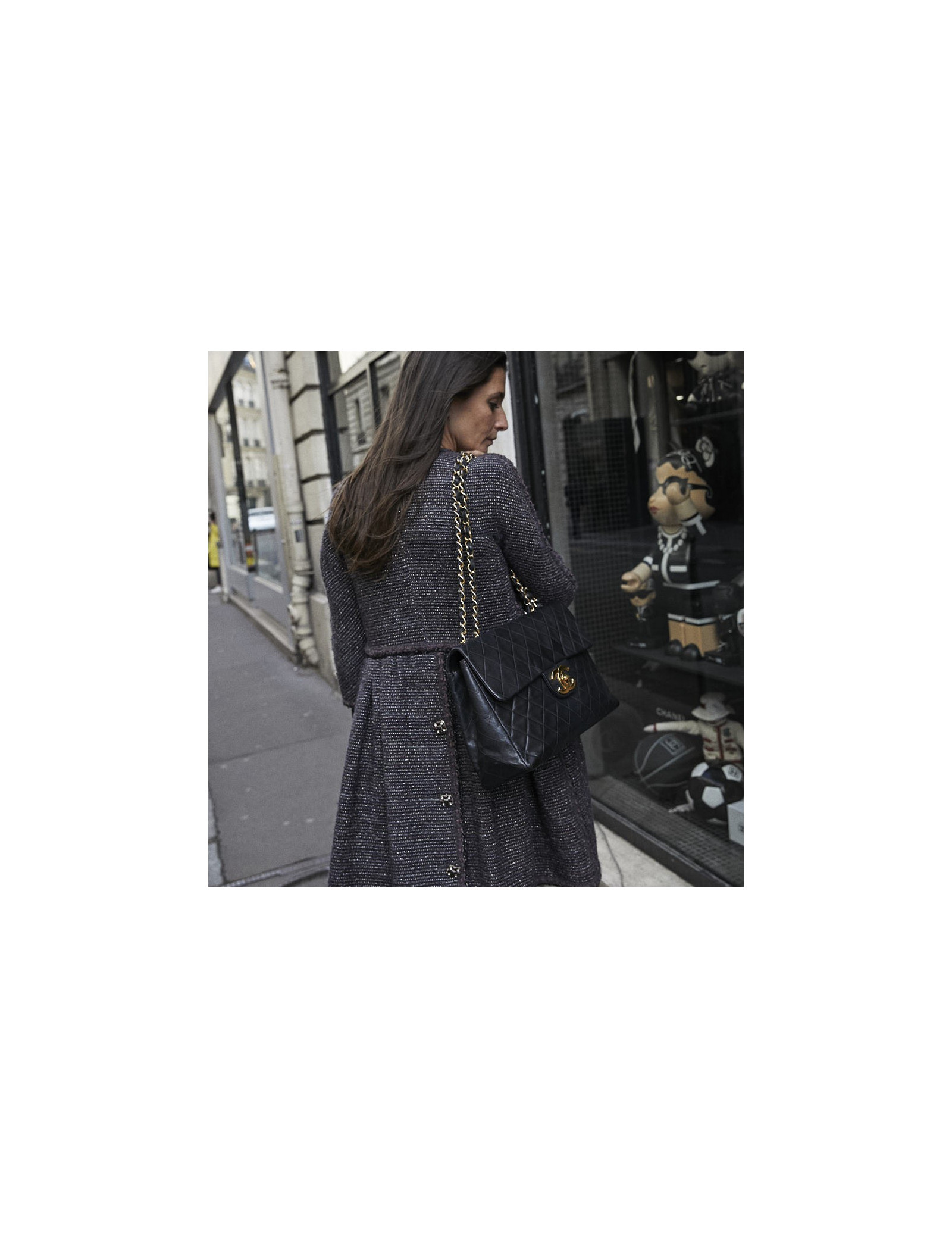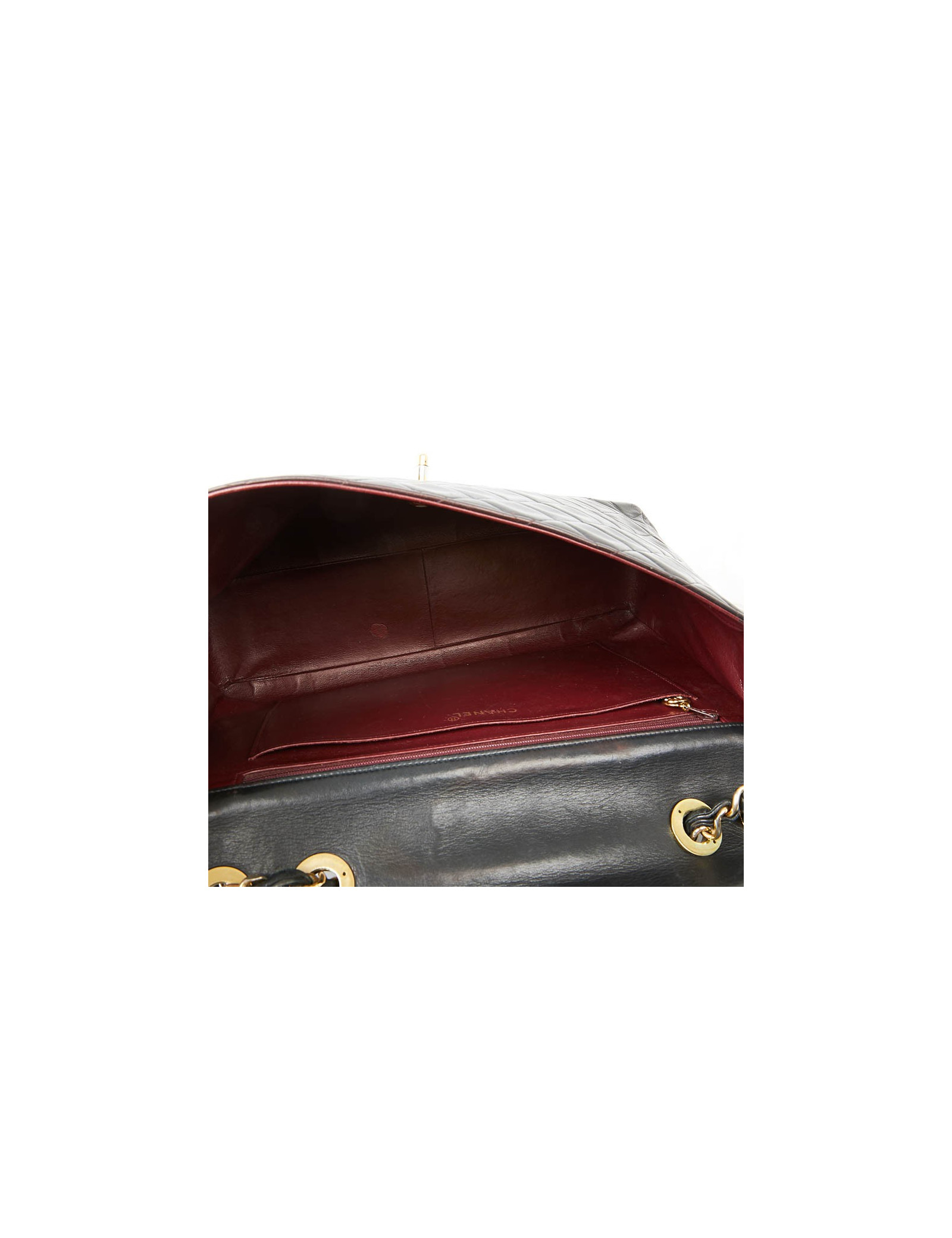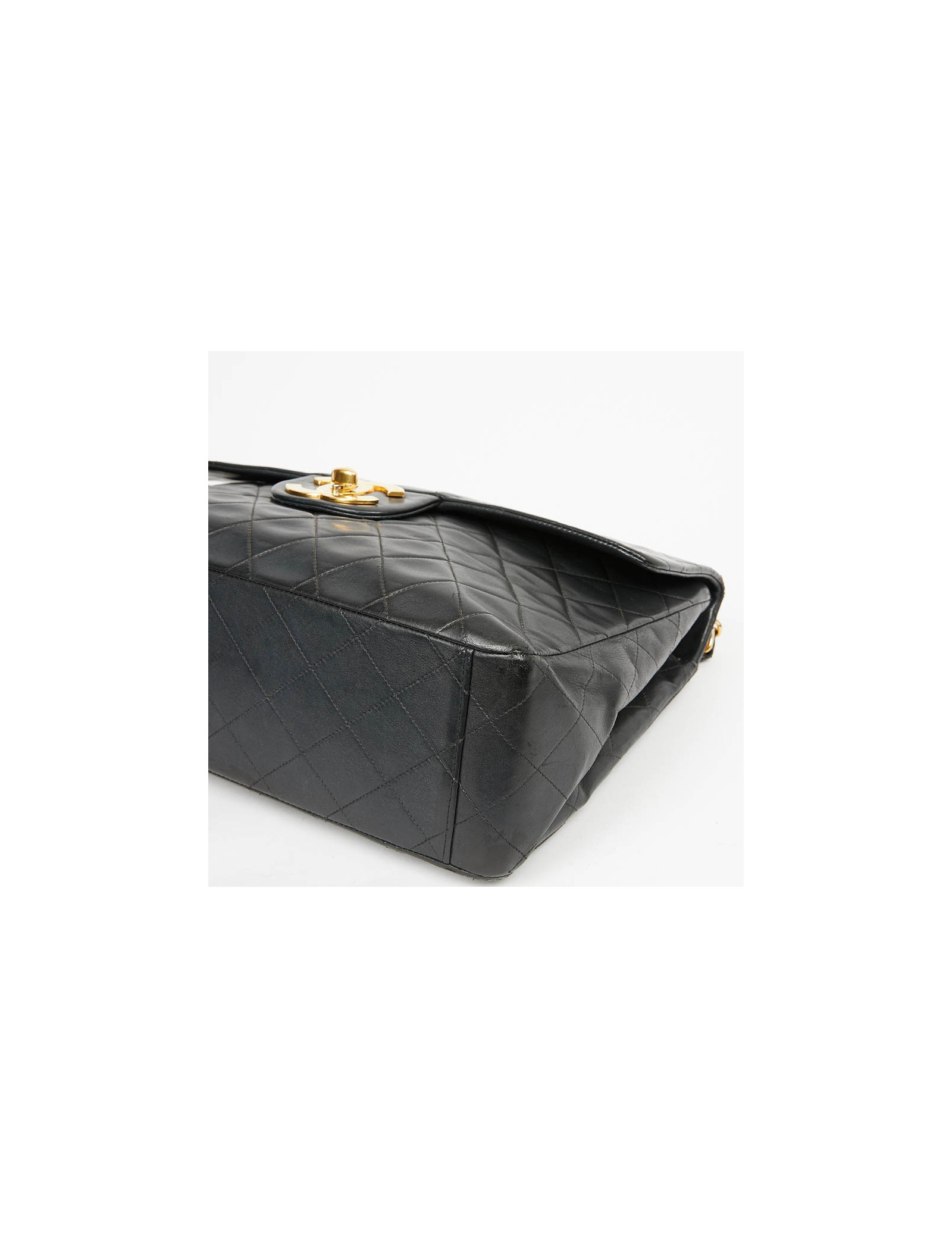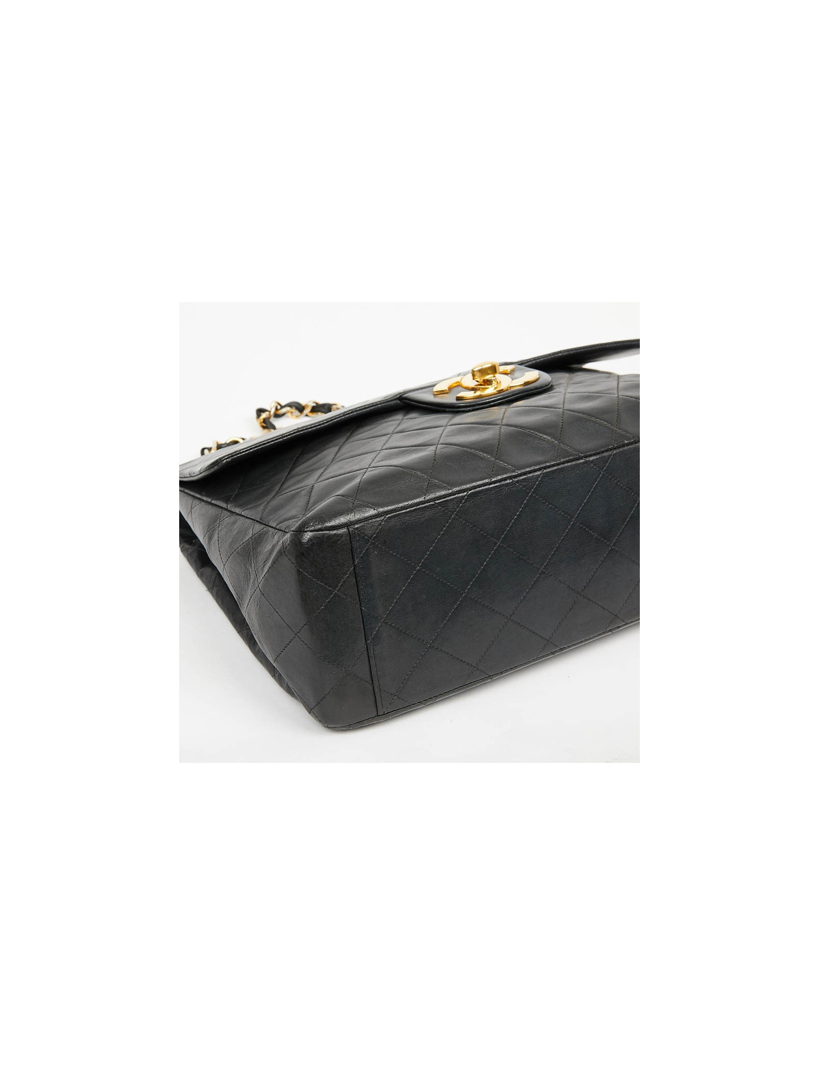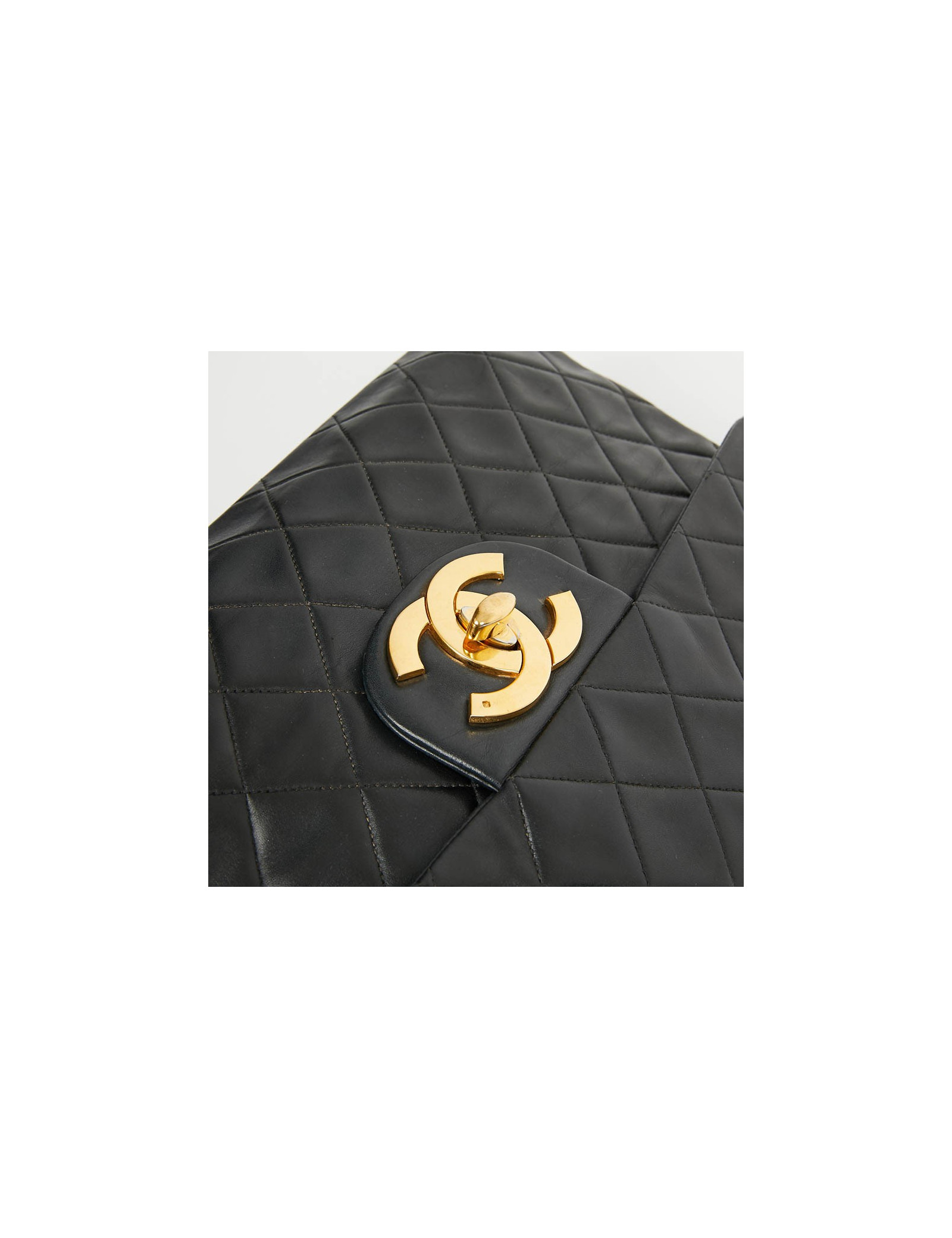 Ce maxi jumbo est le symbole des années Chanel des années 90'. Le gros double "C" est en métal or vintage. Il représente l'époque des top models qui le portaient lors des défilés qui faisaient sensation.