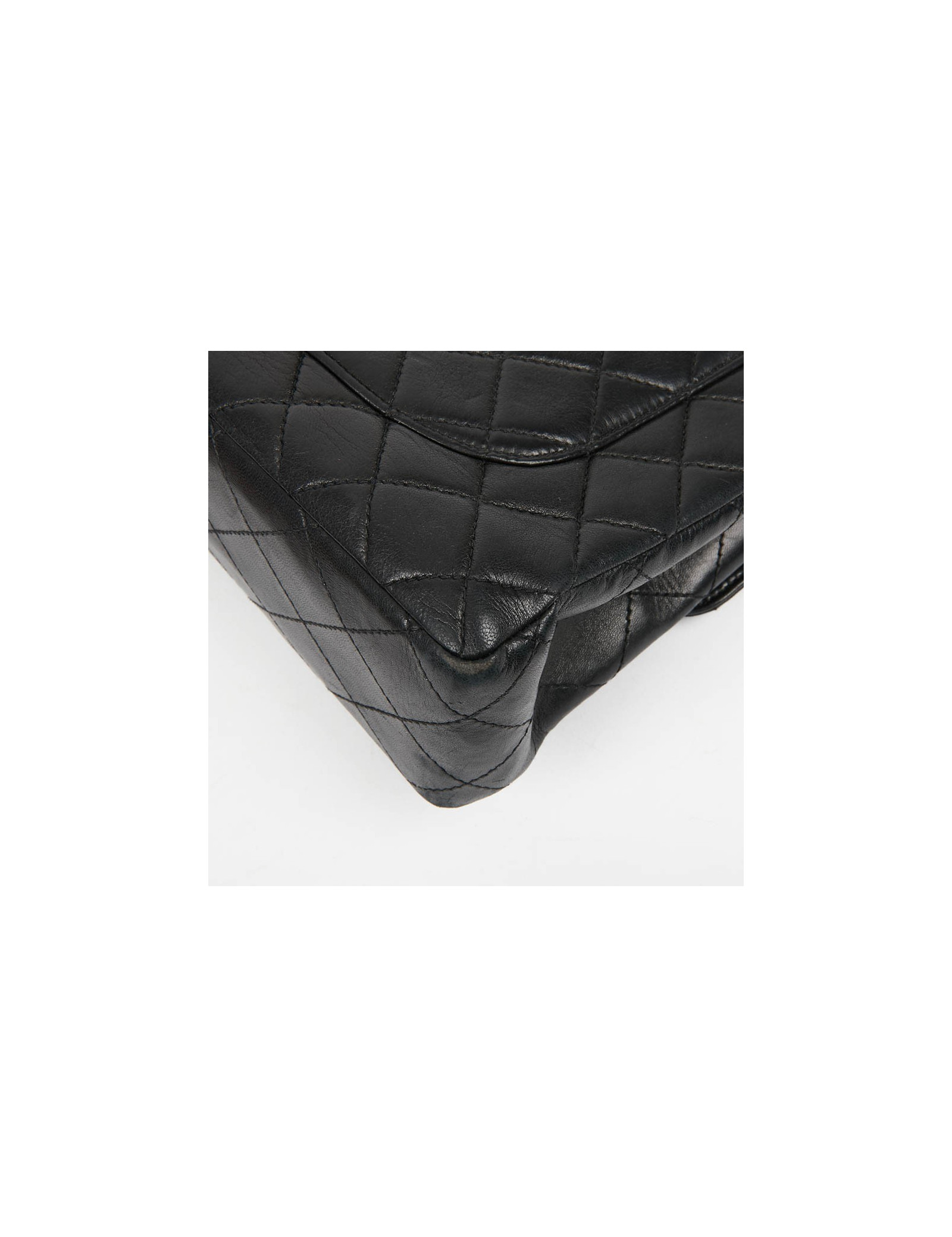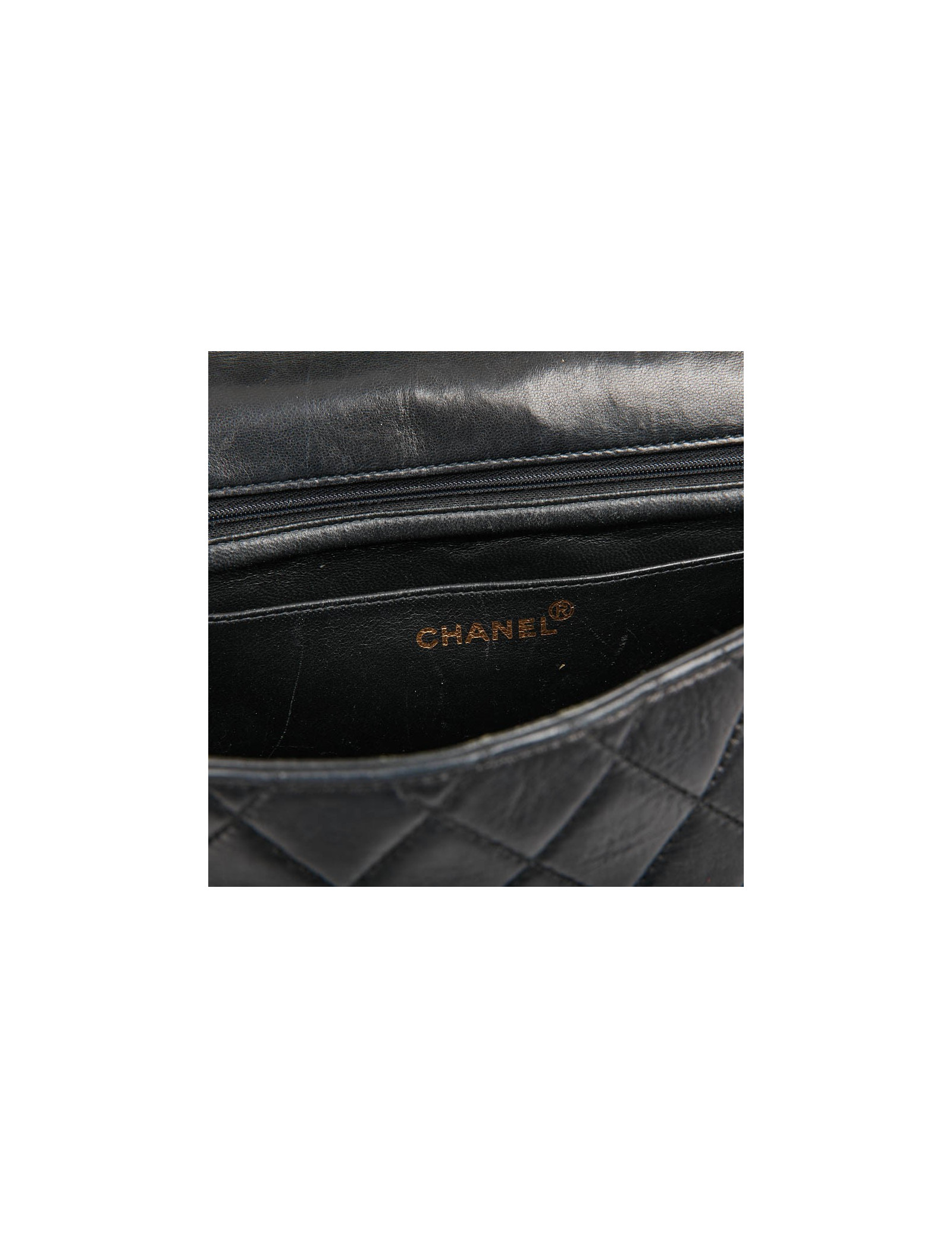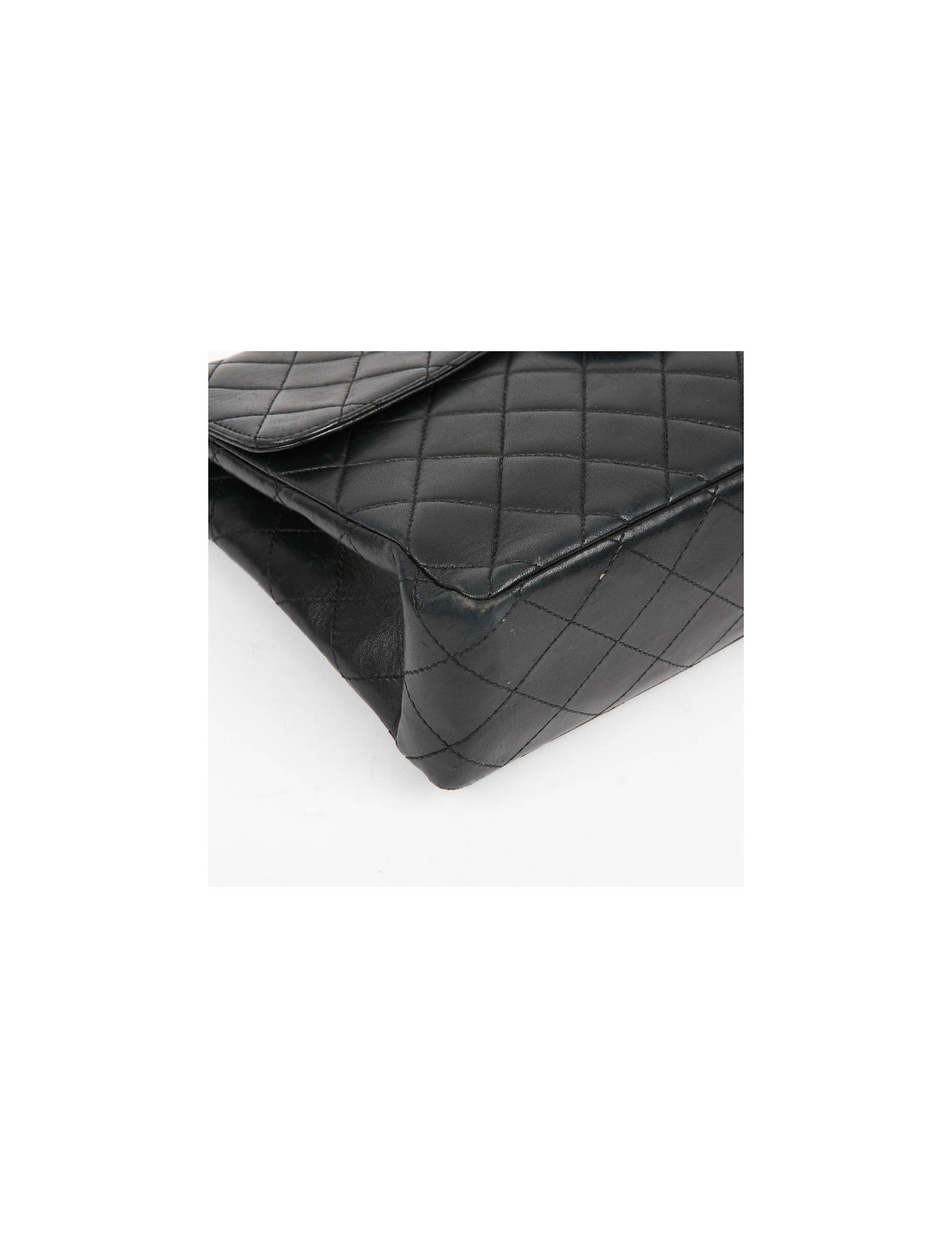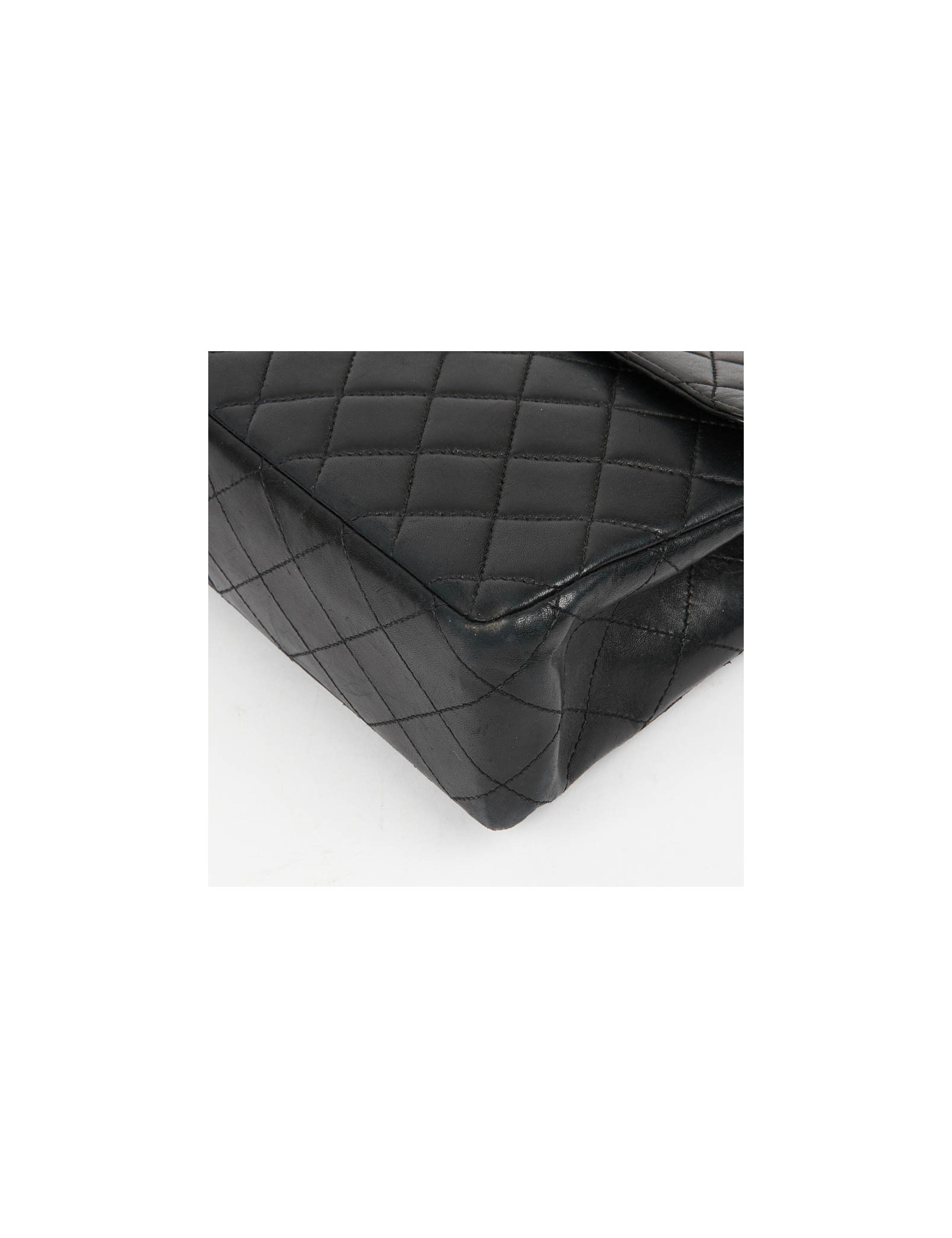 Ce grand sac vintage classique CHANEL, avec sa bandoulière façon écaille, est en cuir lisse noir matelassé. Il peut se porter crossbody.