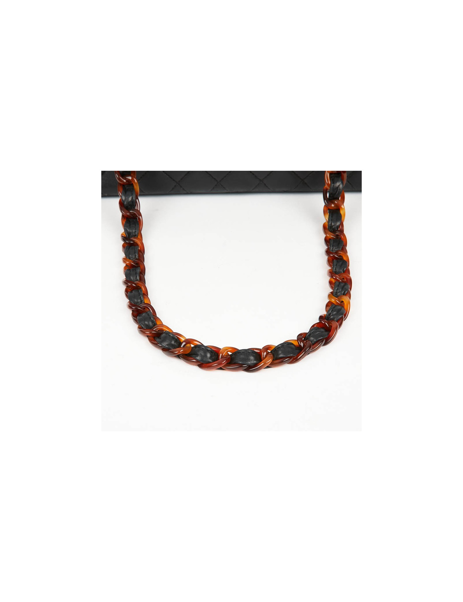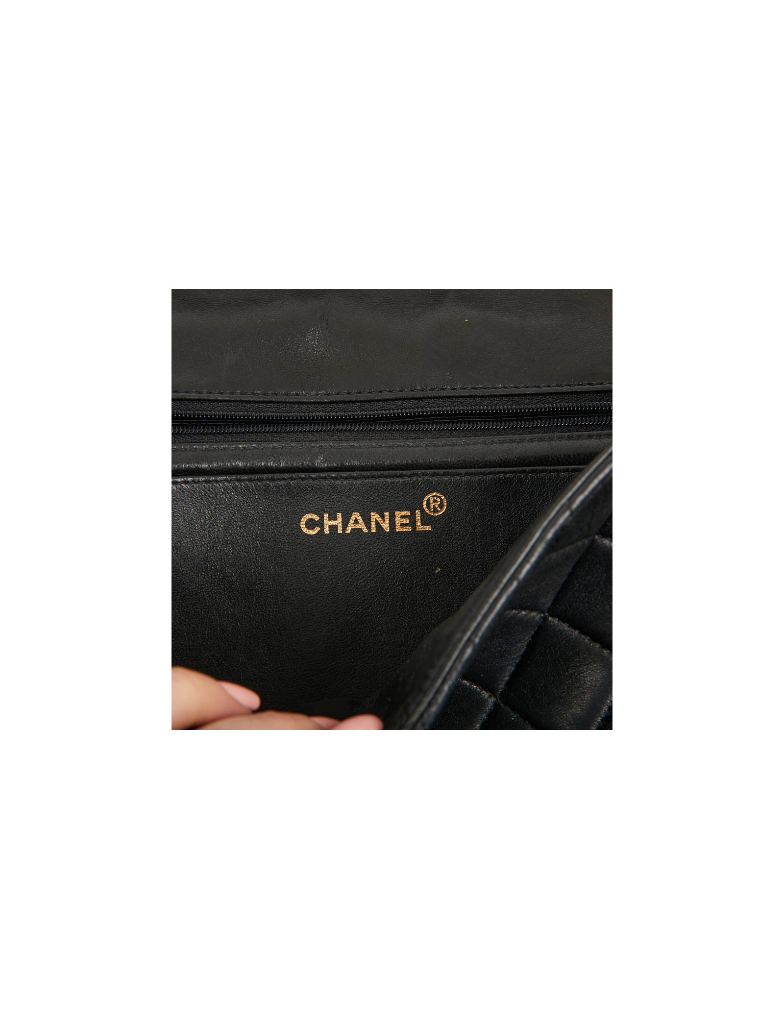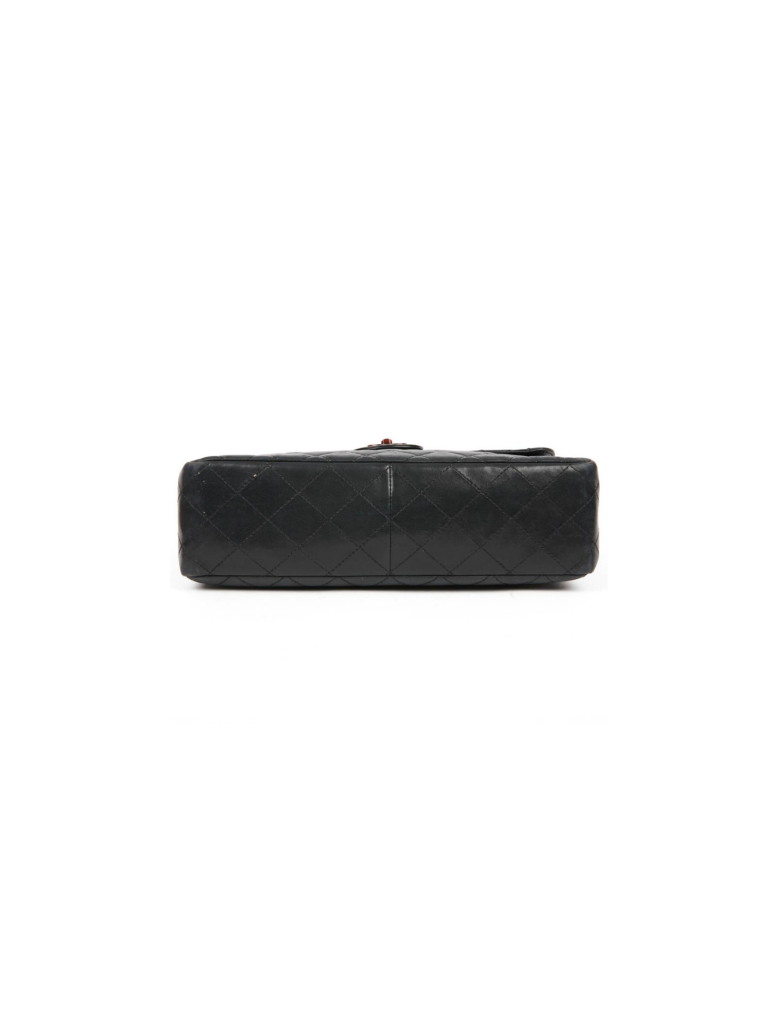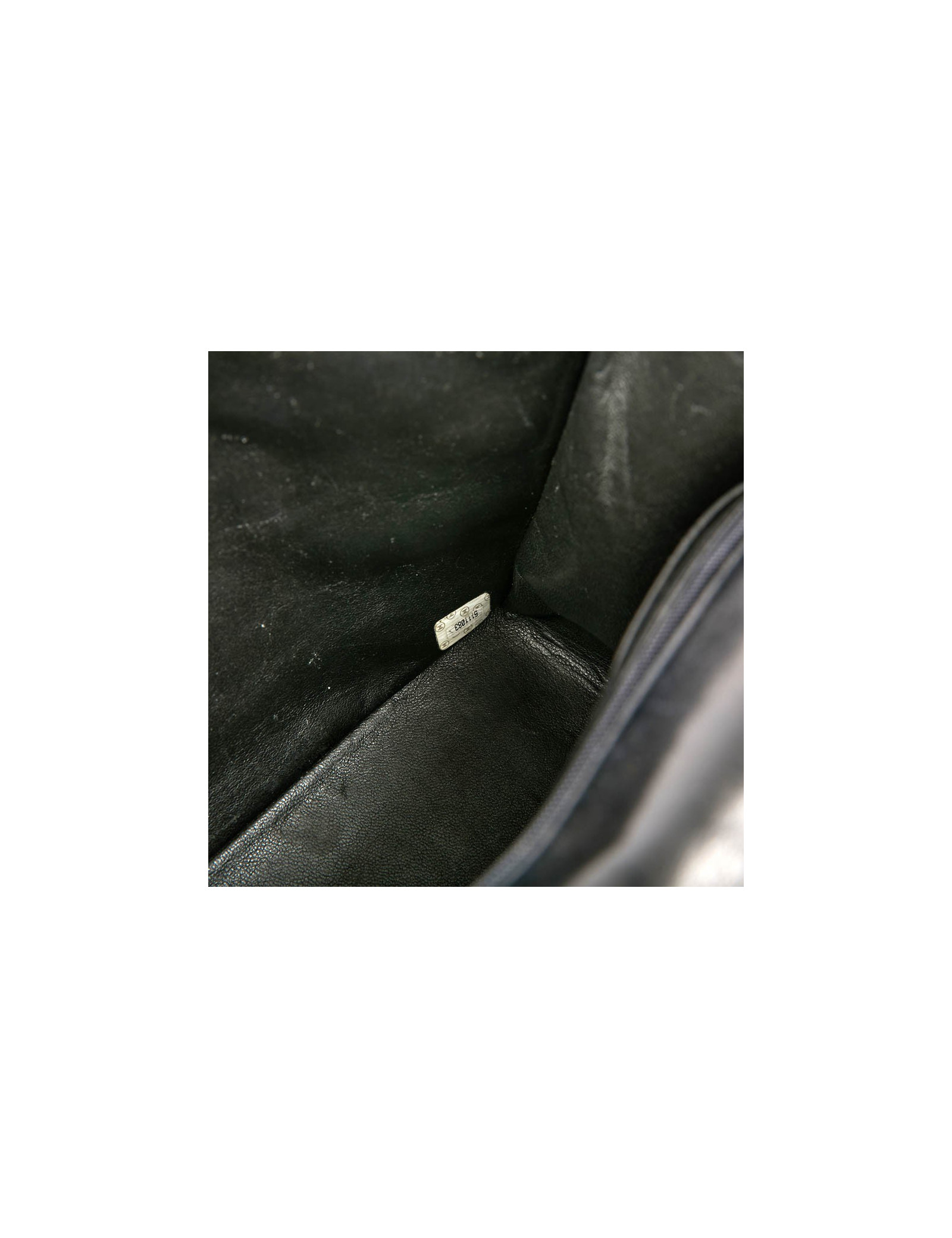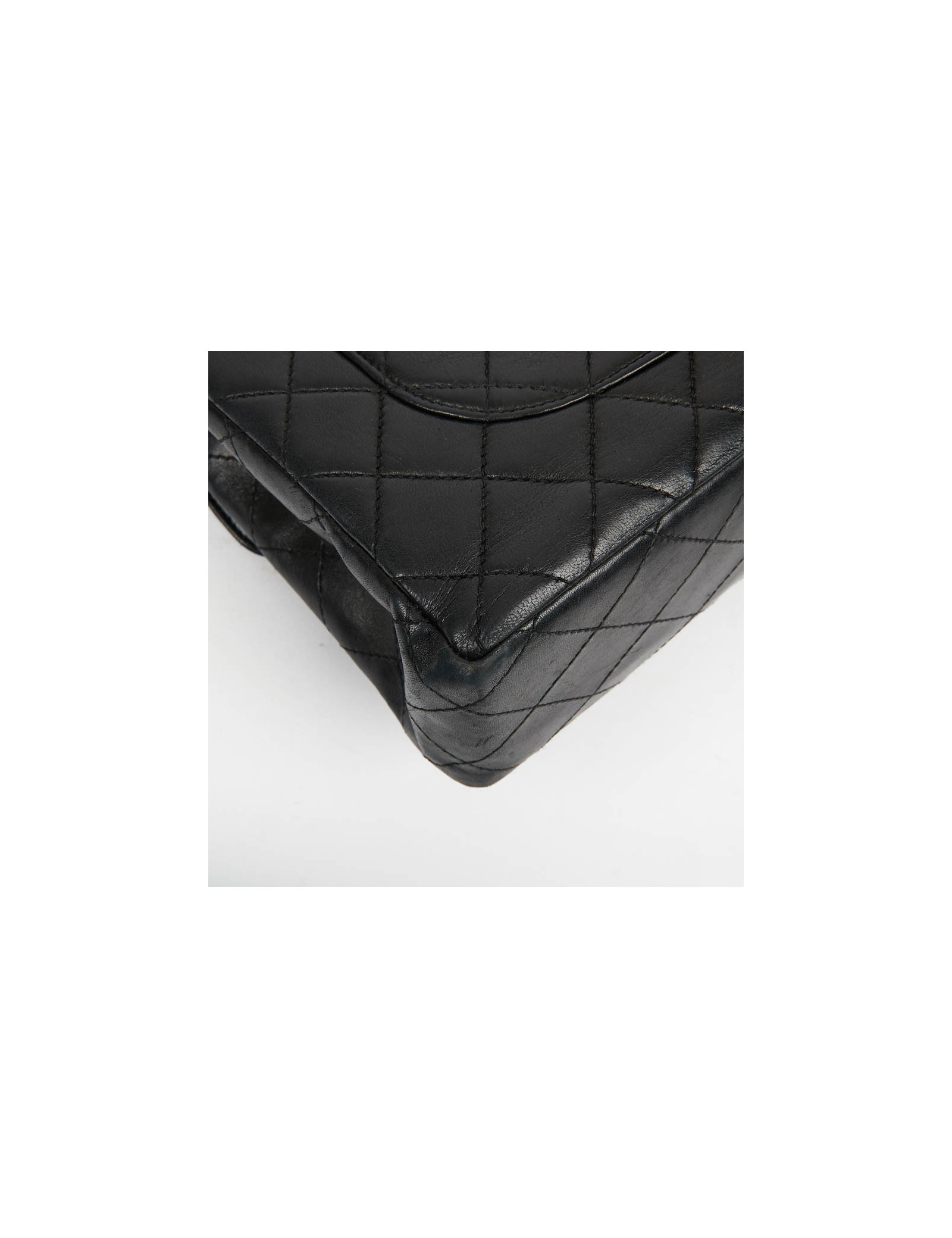 Ce grand sac vintage classique CHANEL, avec sa bandoulière façon écaille, est en cuir lisse noir matelassé. Il peut se porter crossbody.