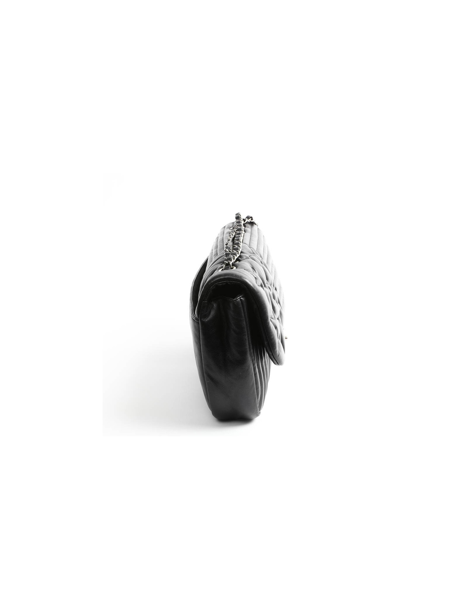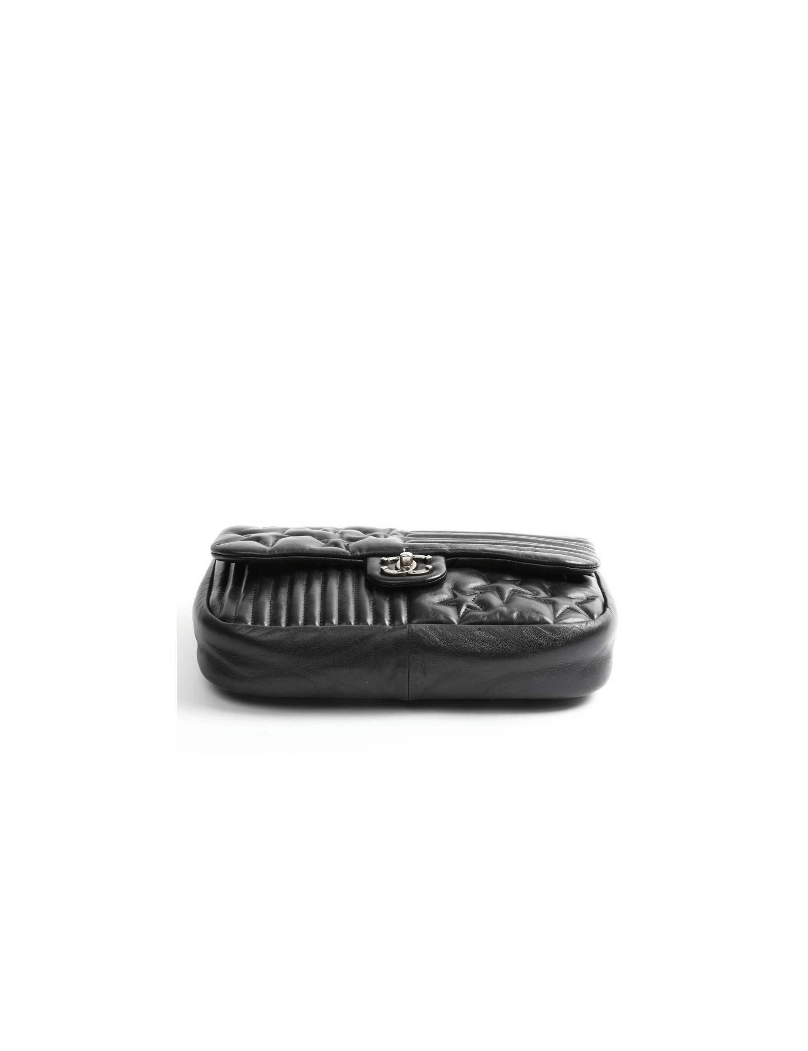 L'intérieur est en tissu noir avec 2 poches dont une zippée. Le plus de ce sac, le cuir sous le rabat est matelassé pour rappeler le classicisme de la Maison Chanel .