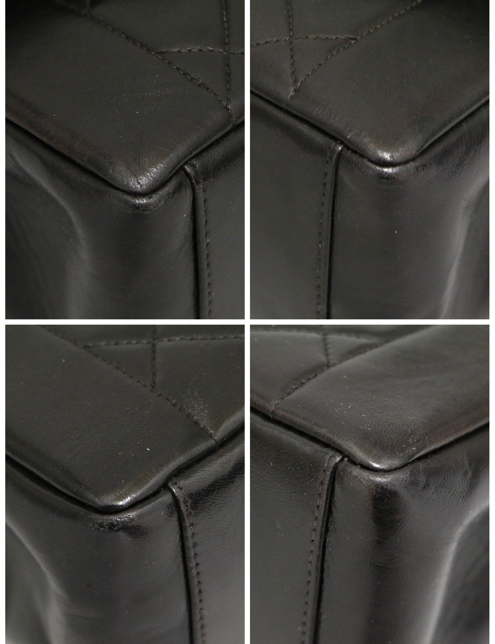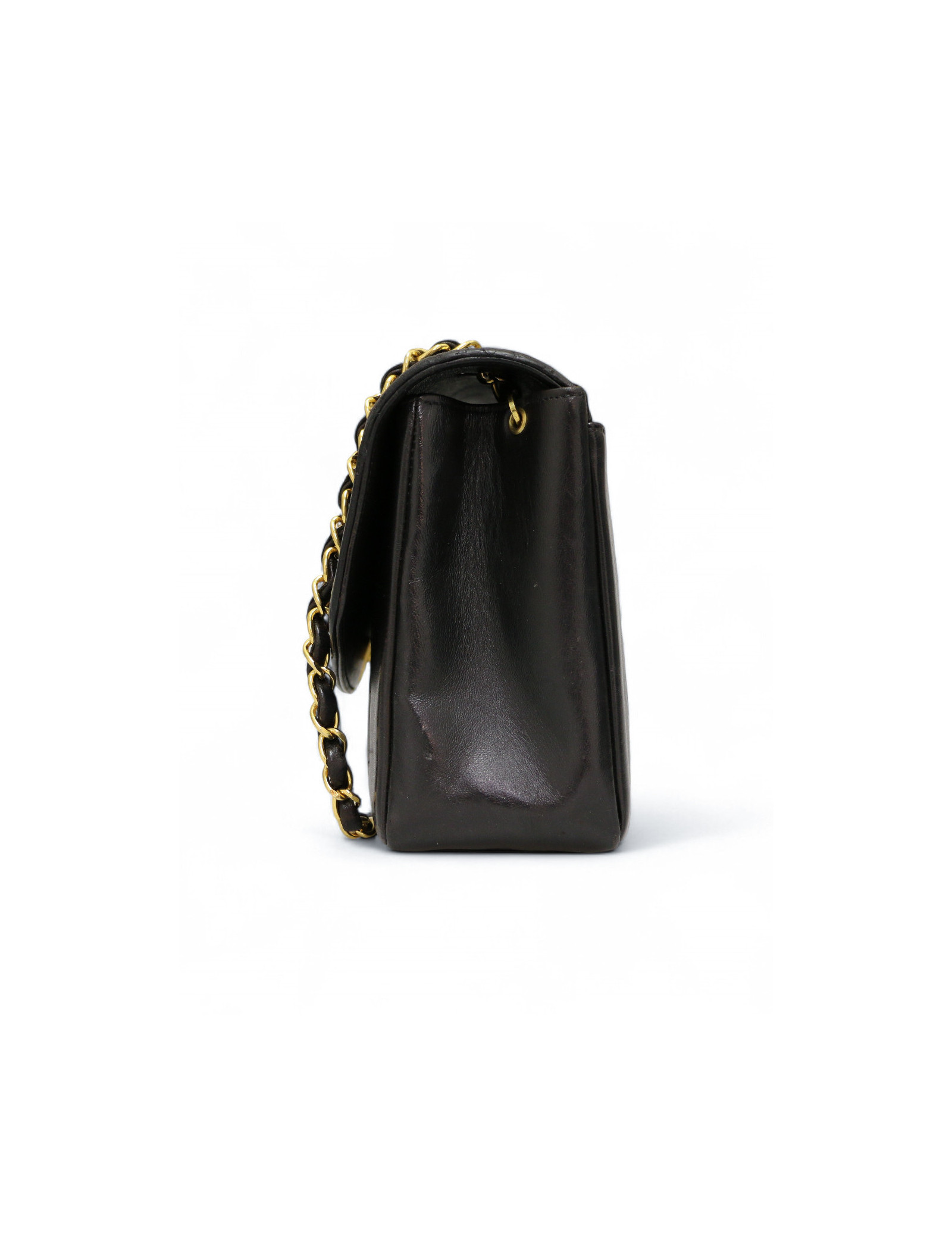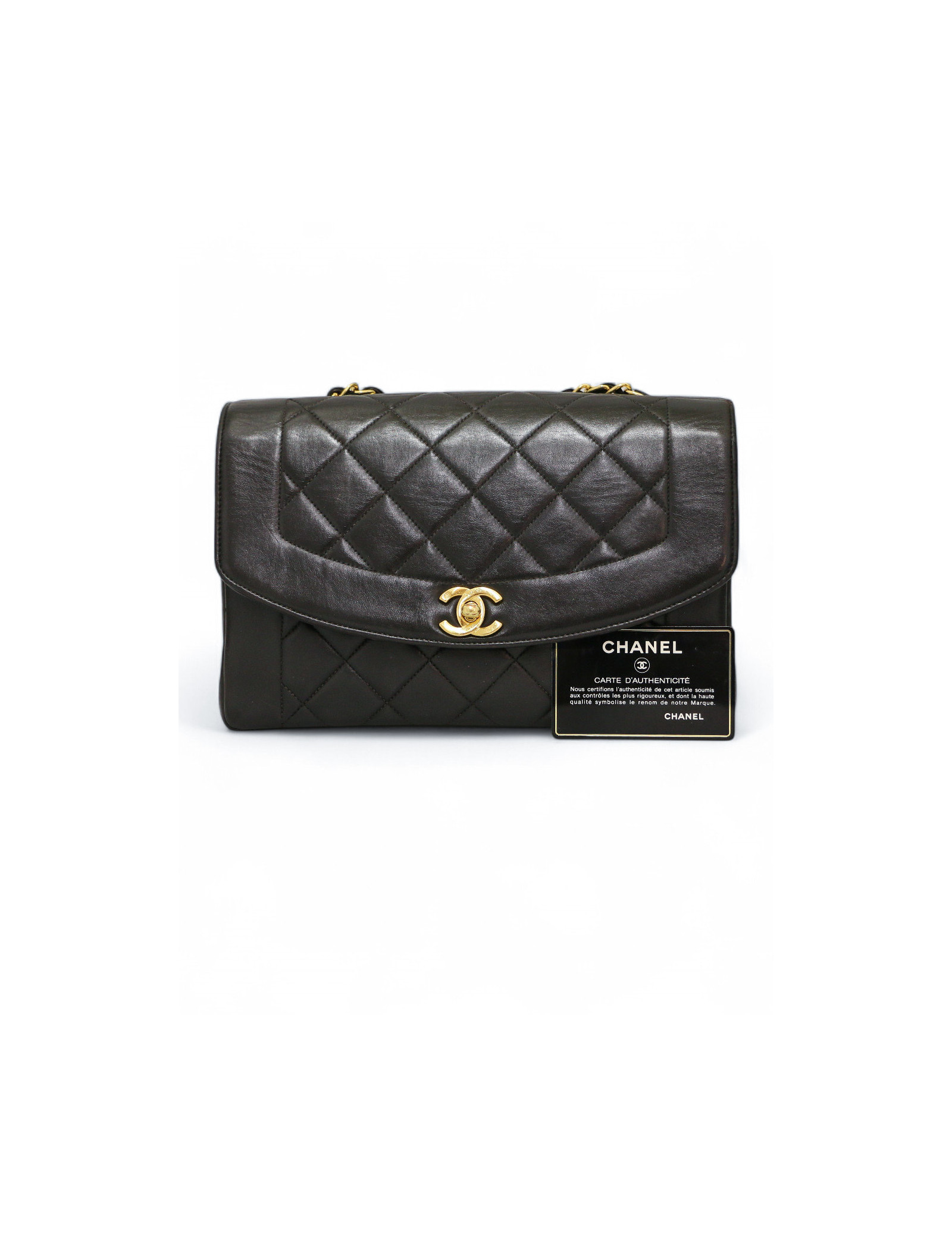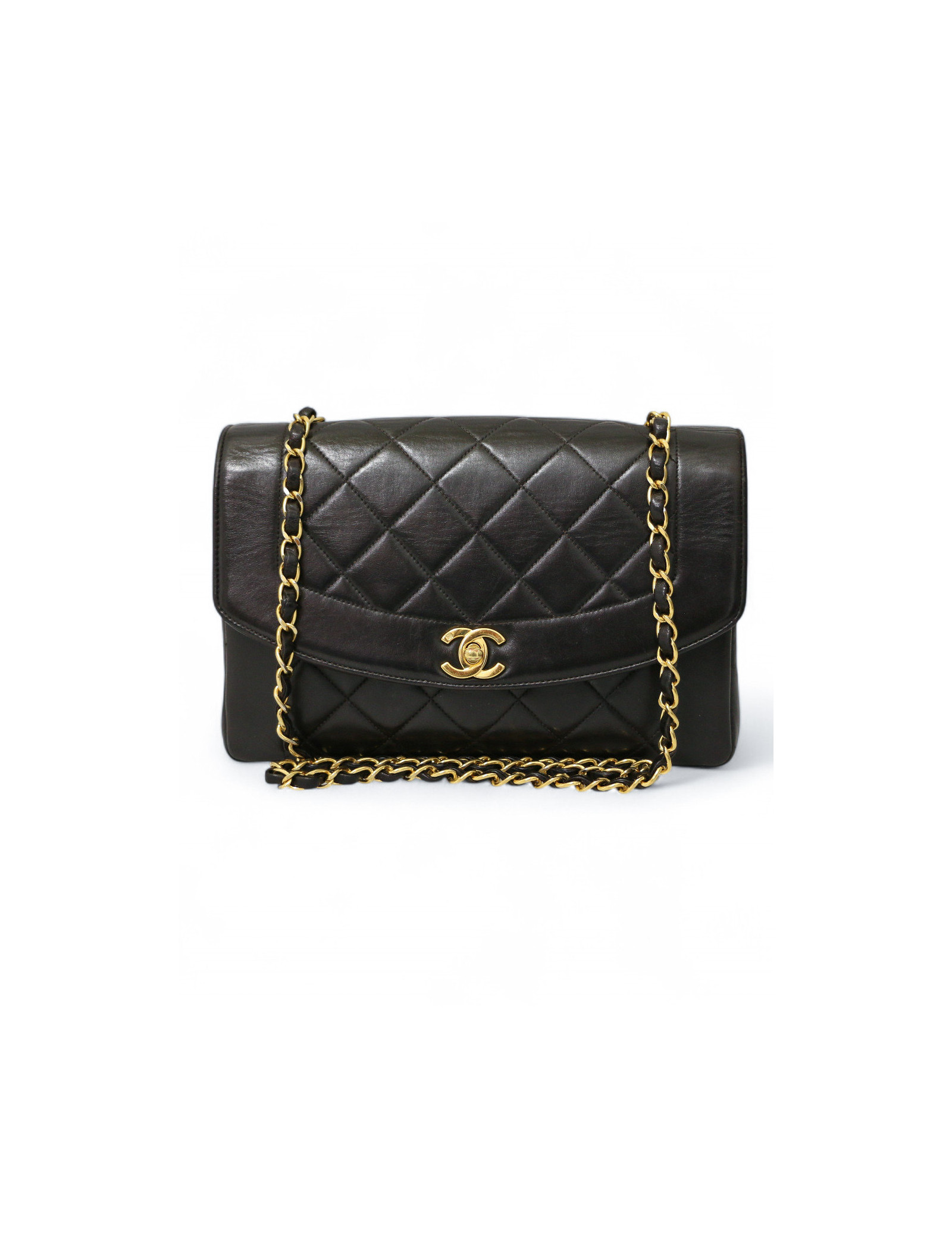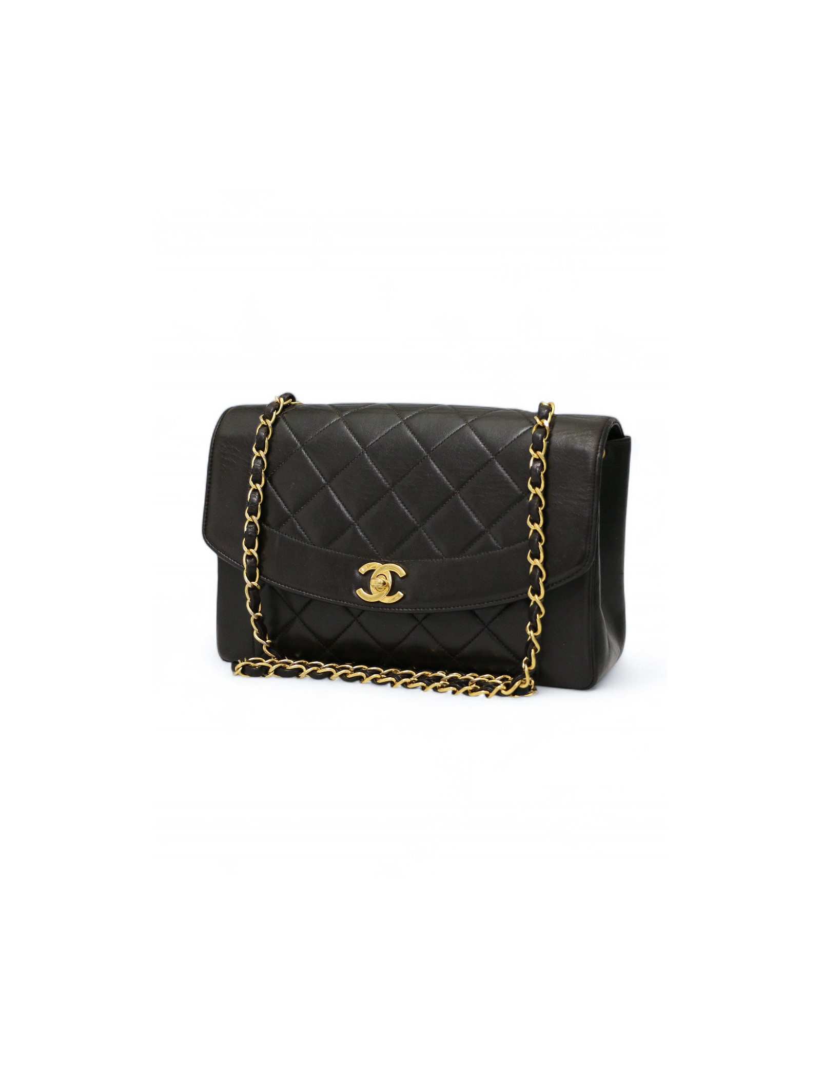 Détails : sac vintage à rabat unique orné d'une bijouterie en or 24 carats. Les coins sont en très bon état alors que le bord du rabat présente une légère usure. A l'arrière du sac une poche discrète, sous le rabat un unique espace de rangement avec deux poches plaquées dont une zippée.