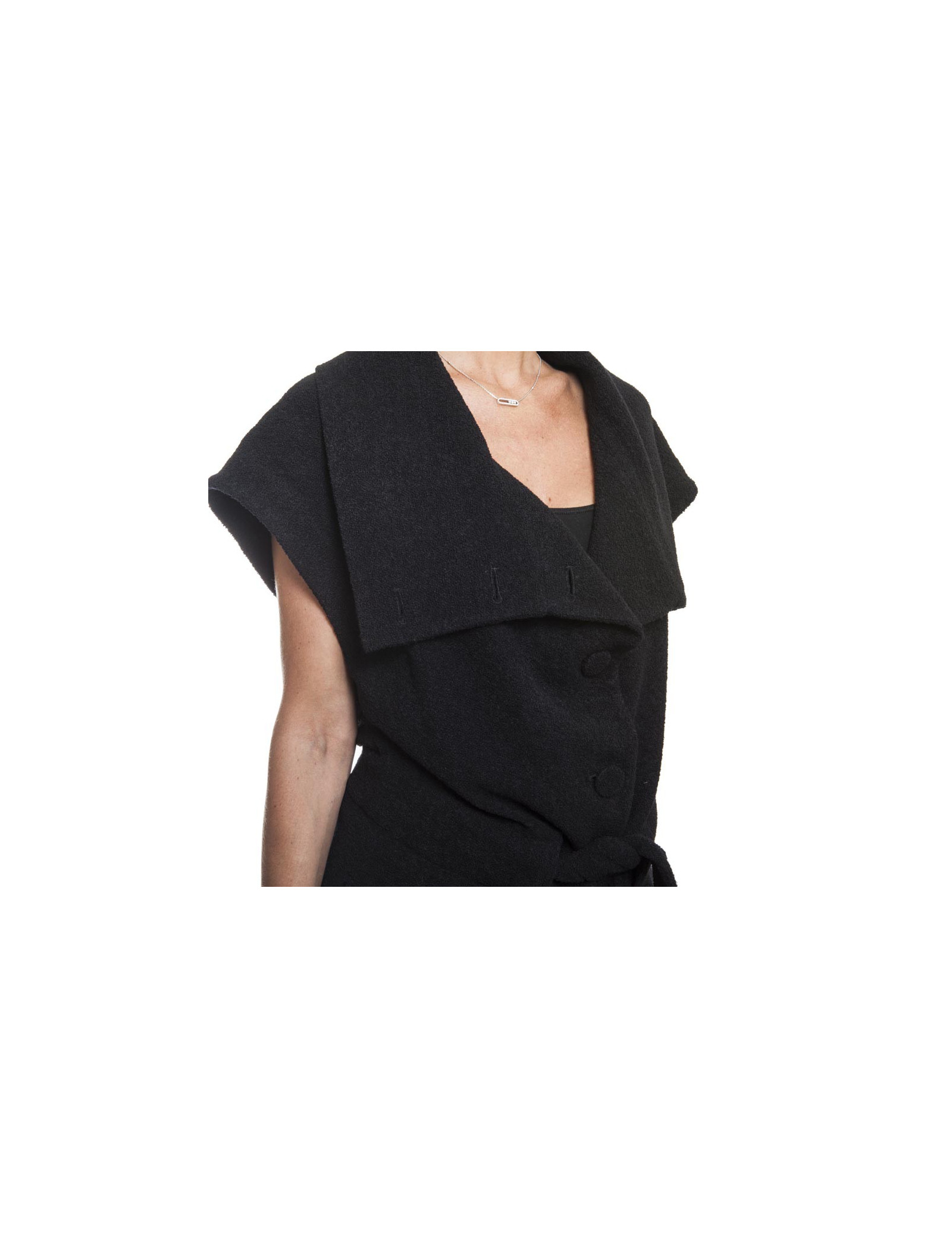 Veste épaules raglan sans manches avec un large col VIKTOR & ROLF taille 40 en laine noire. Elle a une ceinture à nouer et se ferme par 7 boutons. Elle se porte ample. Elle est doublée.