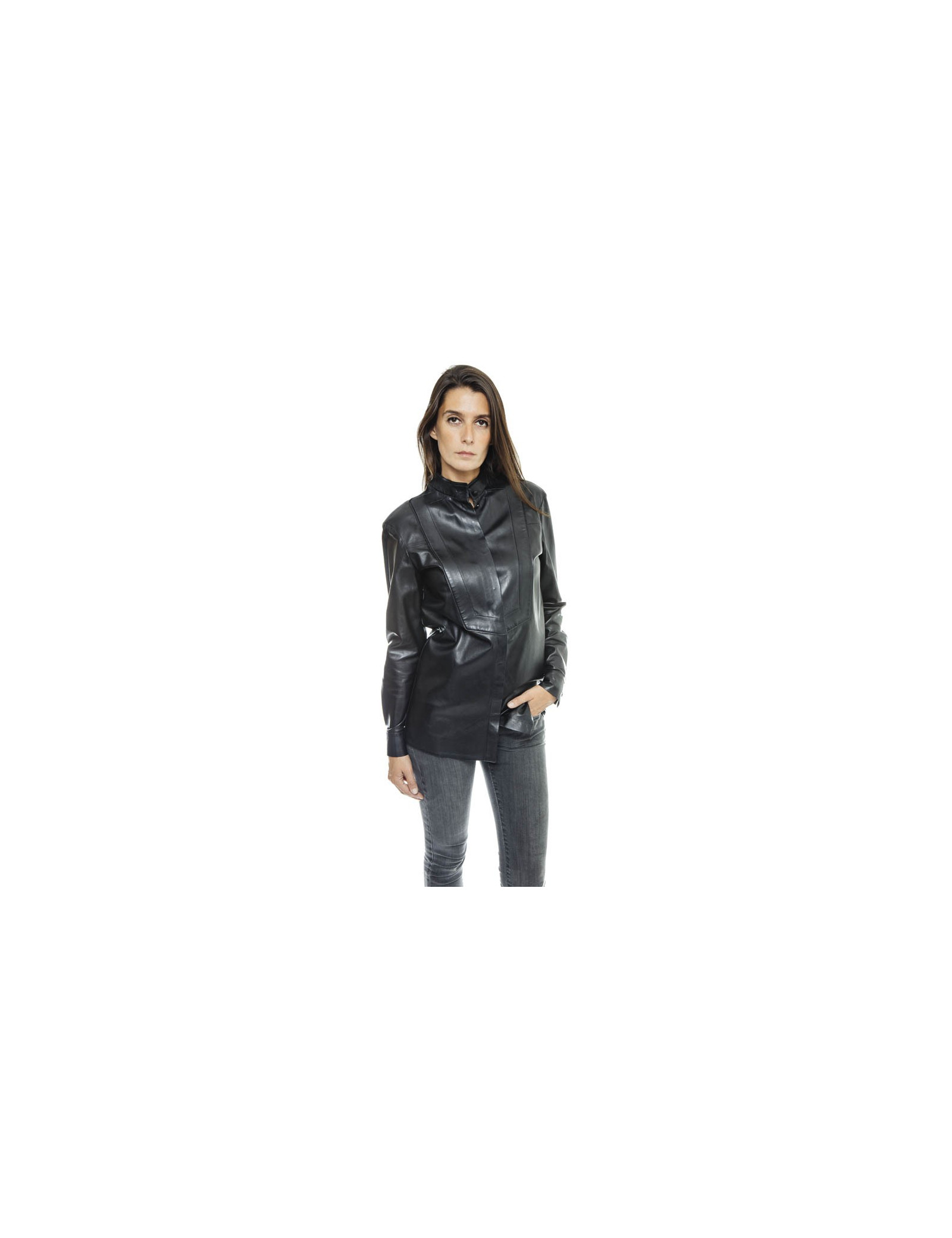 Blouse ou chemise en cuir d'agneau noir Givenchy.