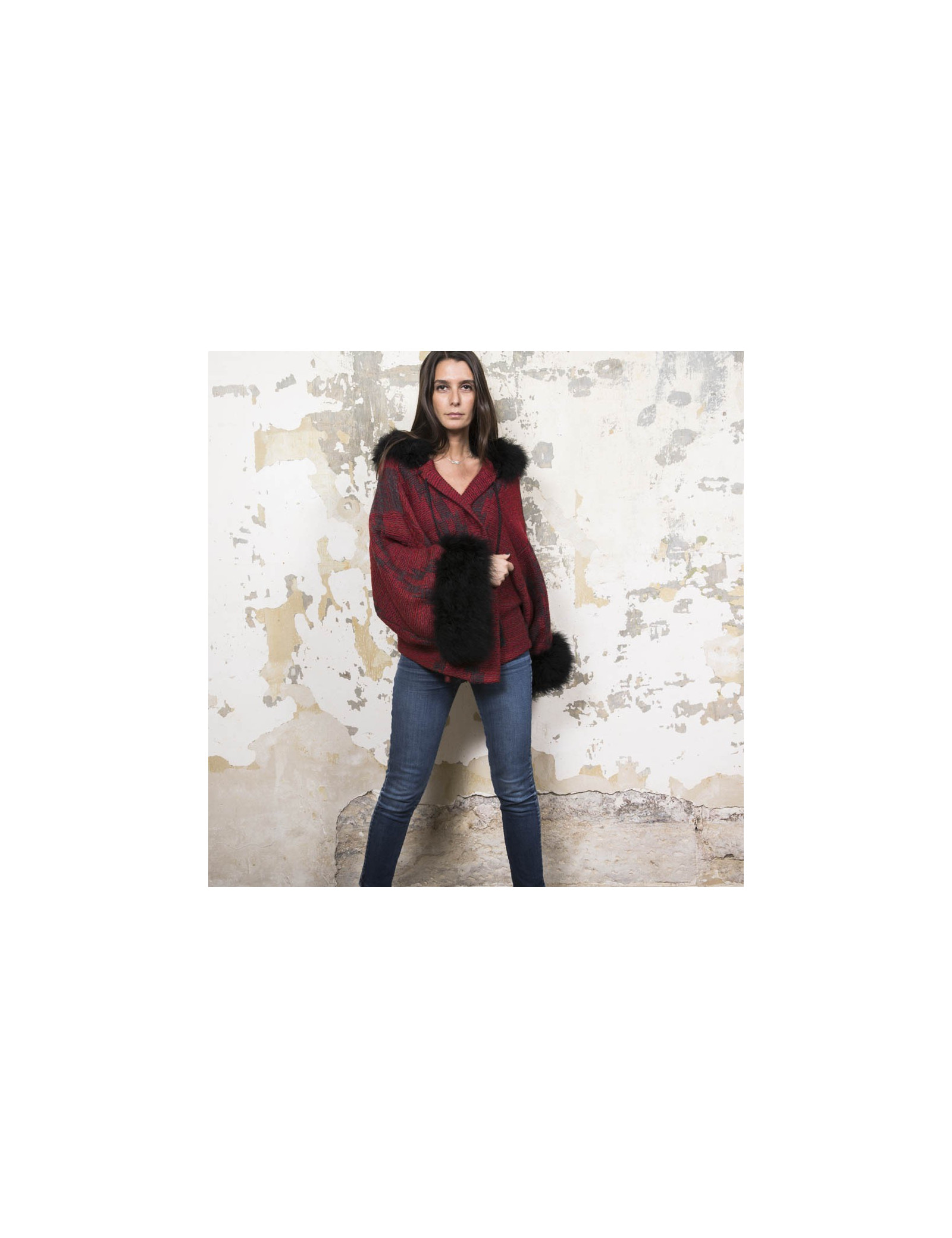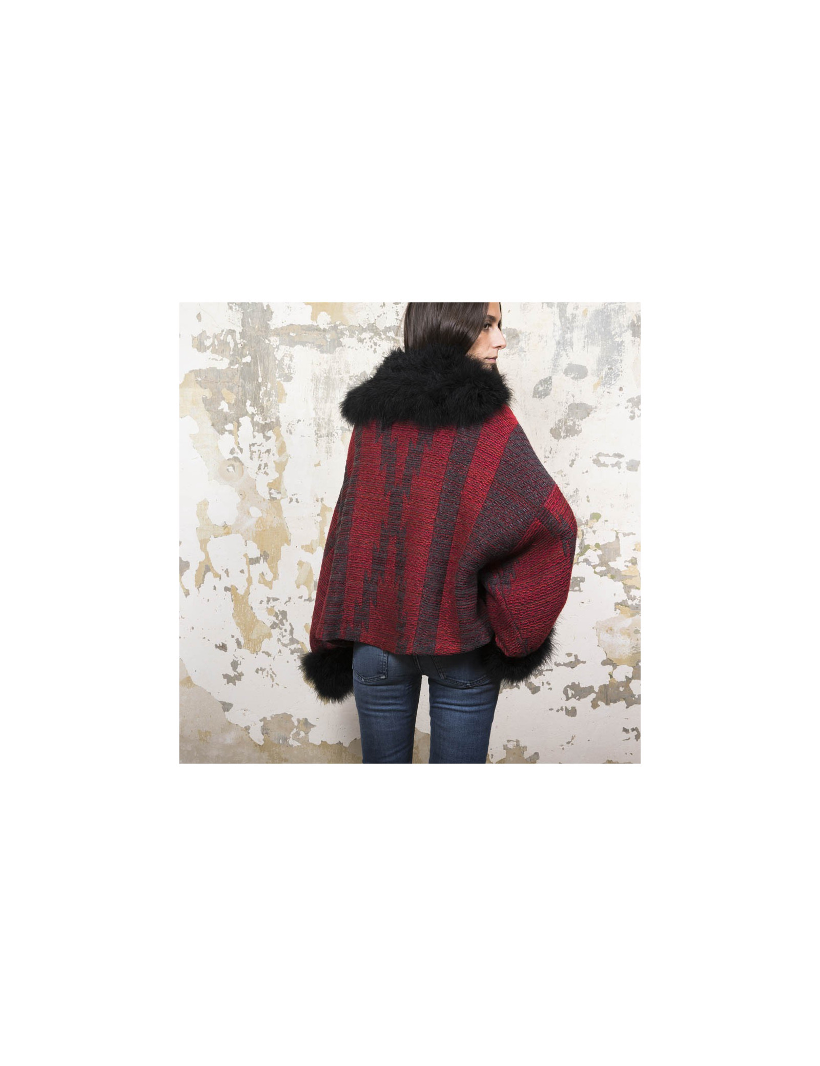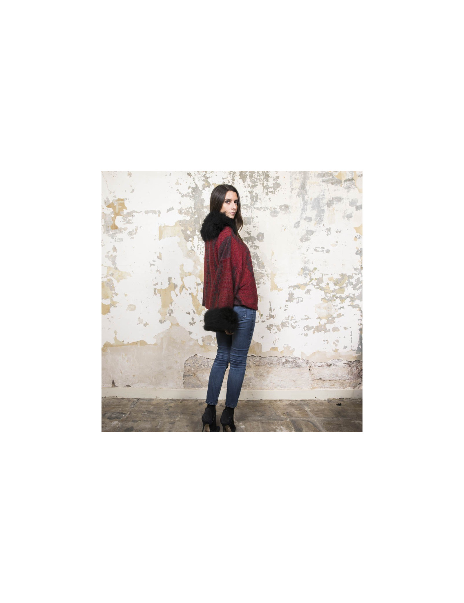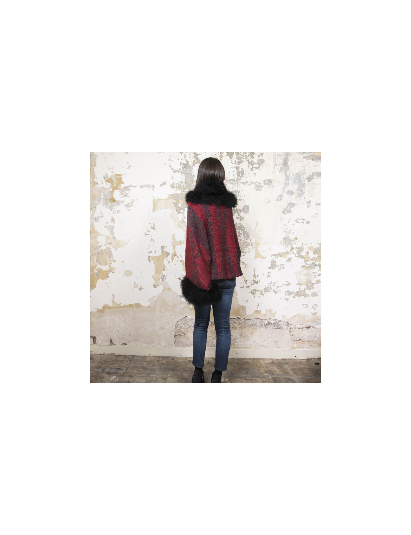 Gilet oversize Ralph Lauren en laine mérinos, lin et soie, rouge et noir.