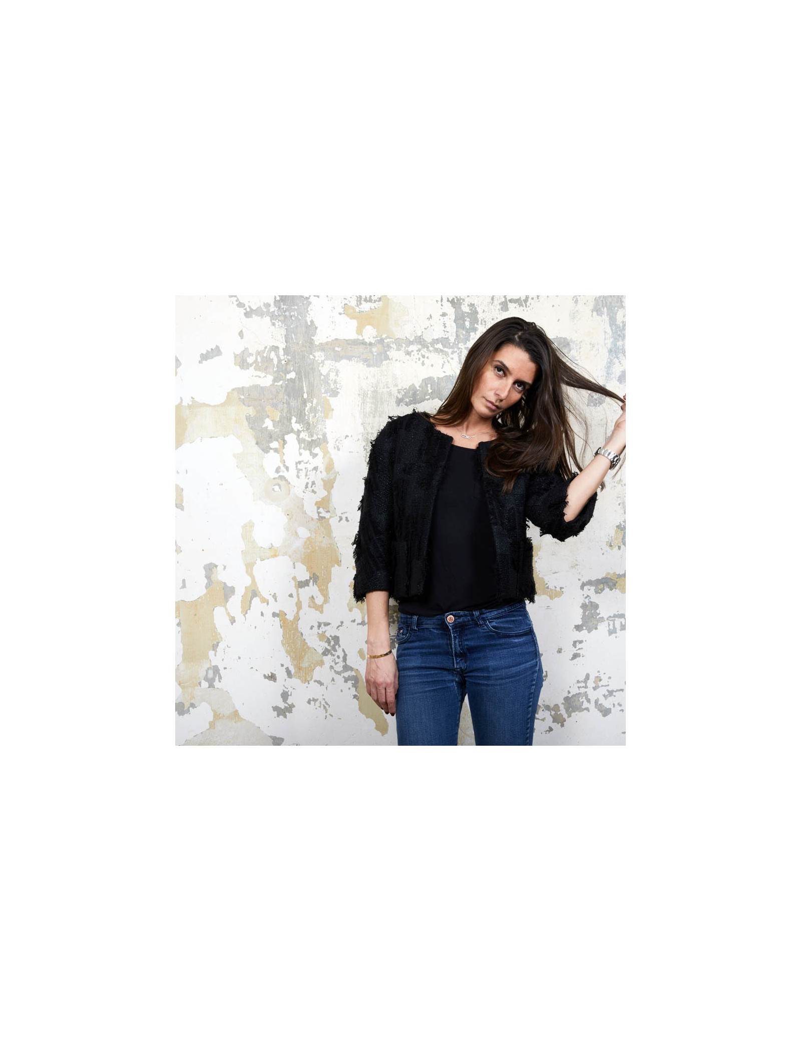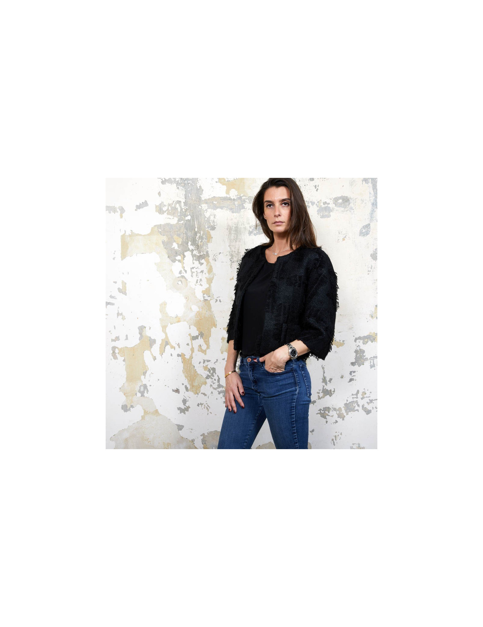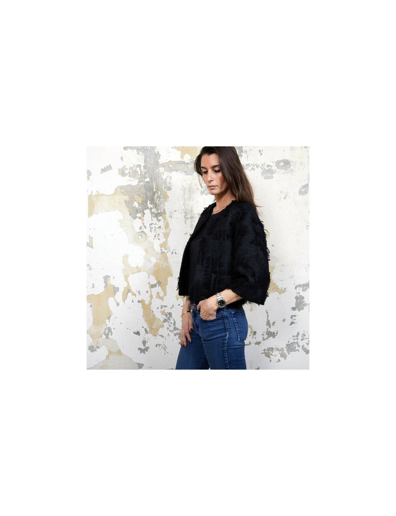 Veste courte Taille 38 noire de la Maison Chanel neuve. Doublure en soie noire monogram.