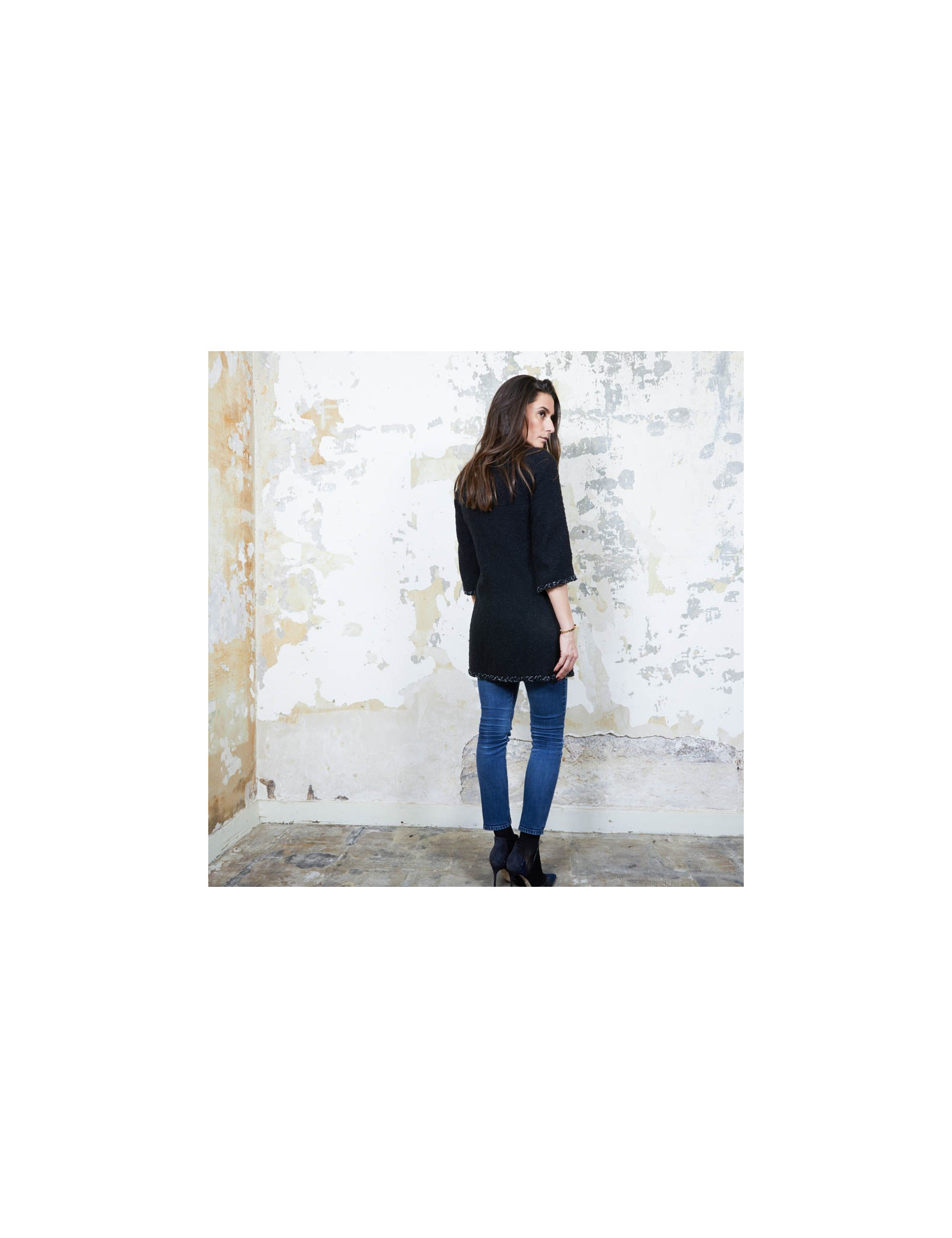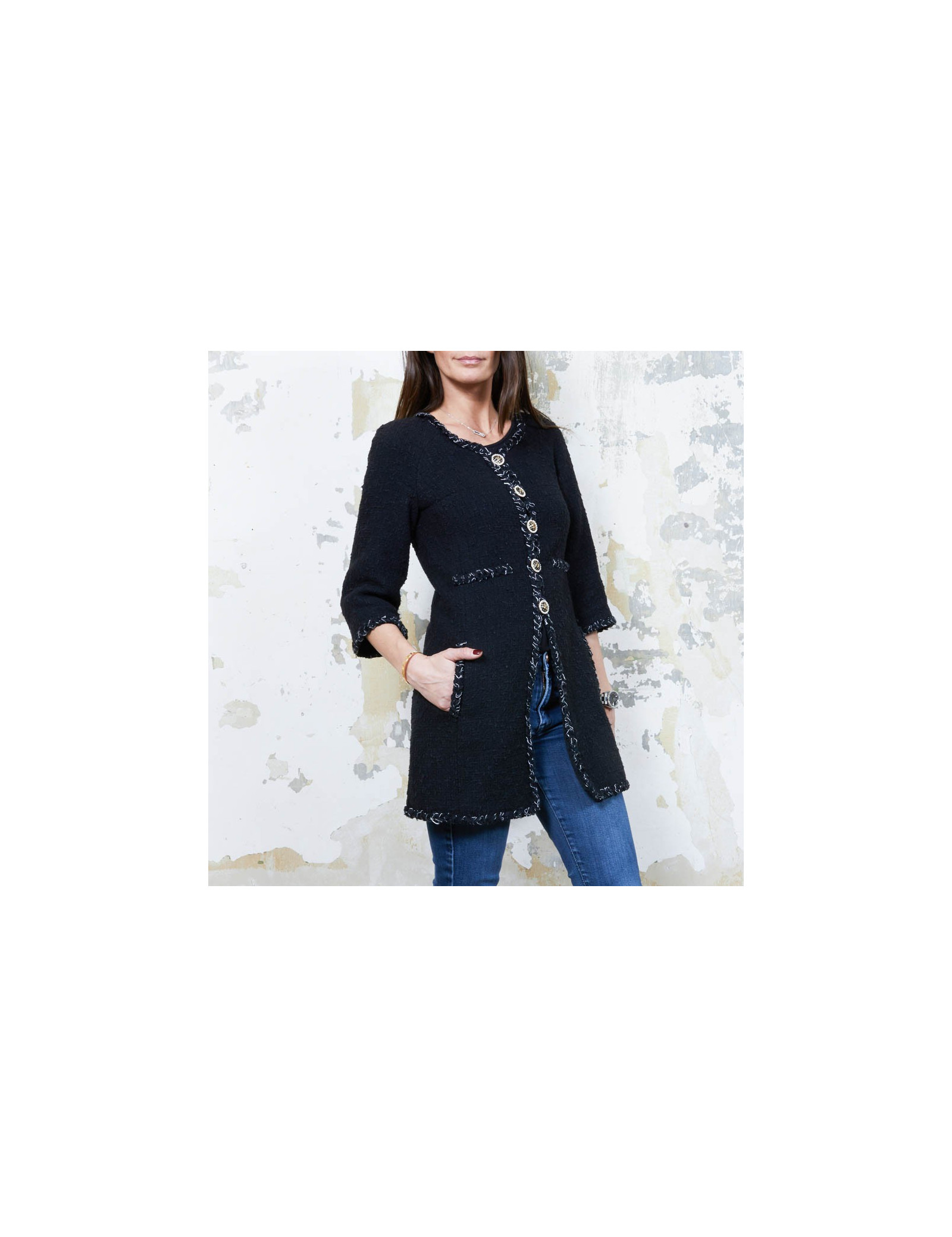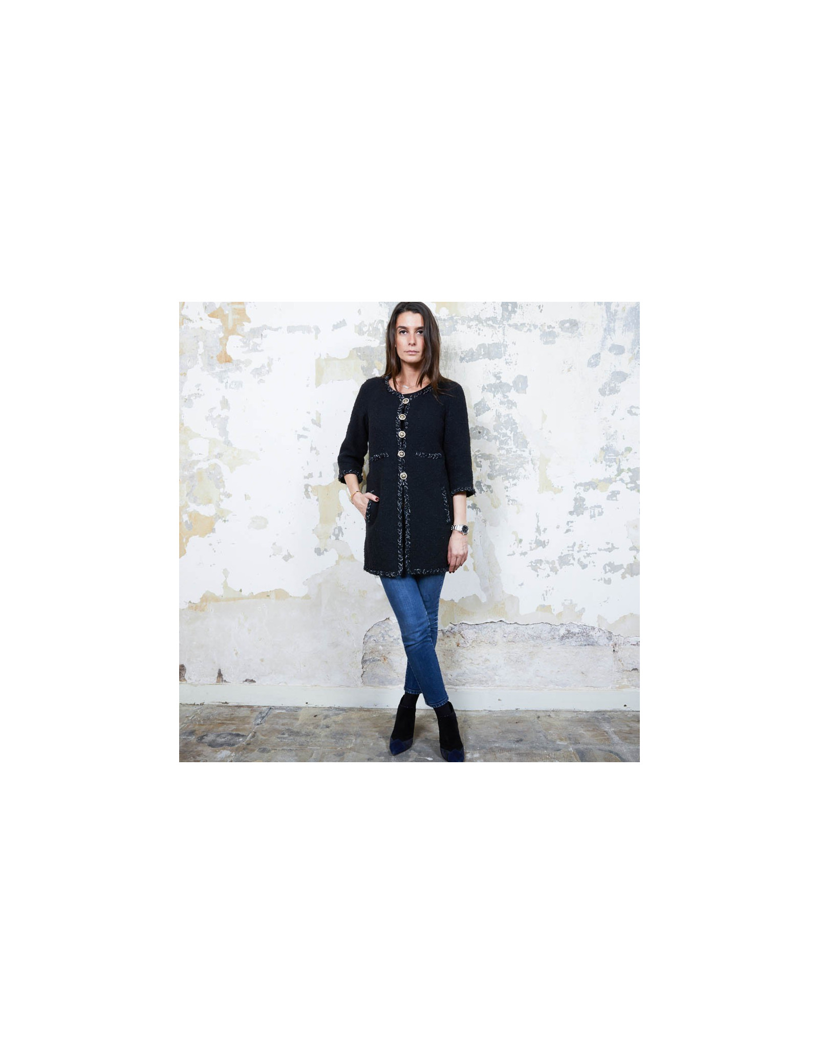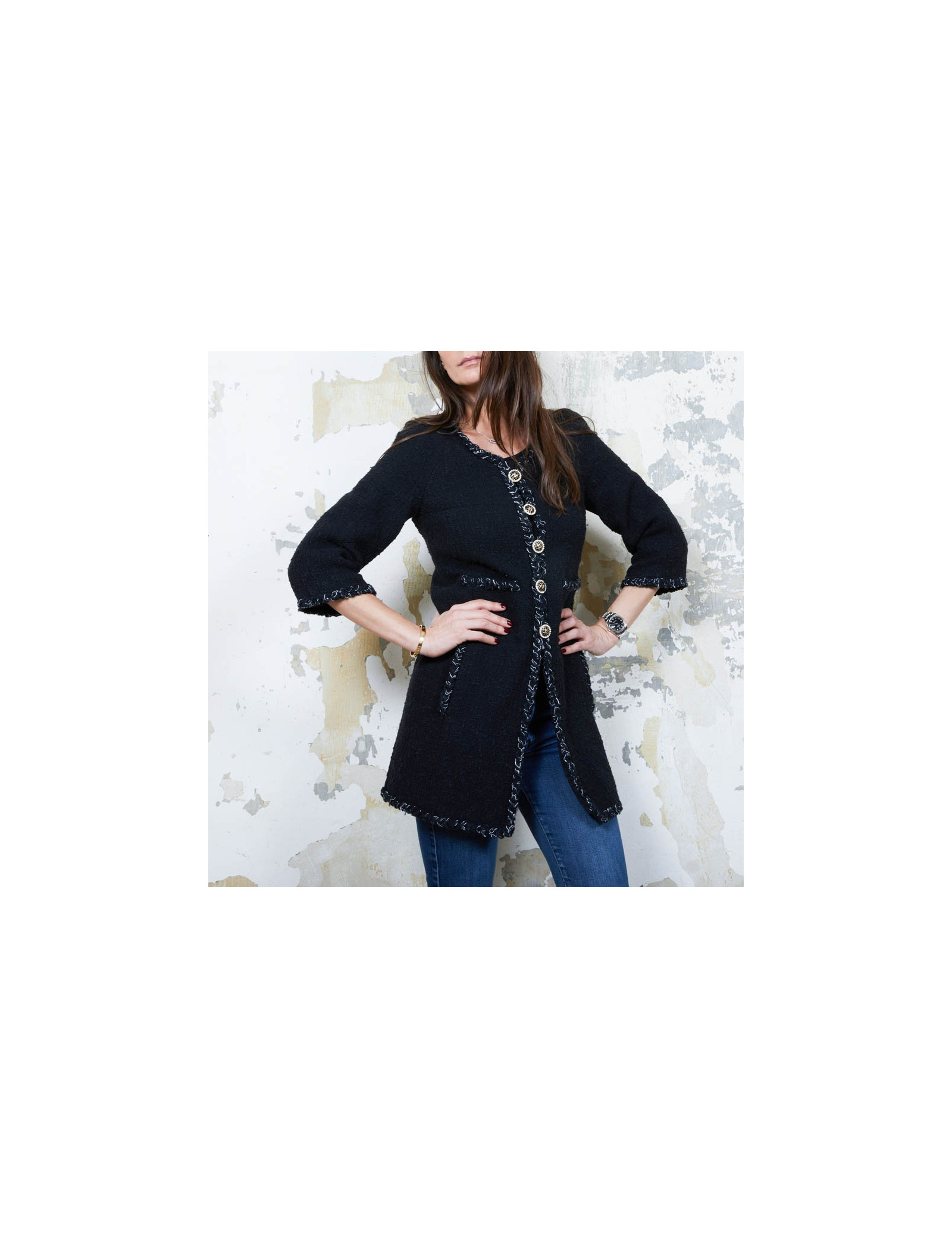 Iconique veste longue T 34 Chanel en tweed noir. Collection Printemps 2007. Made in France.
