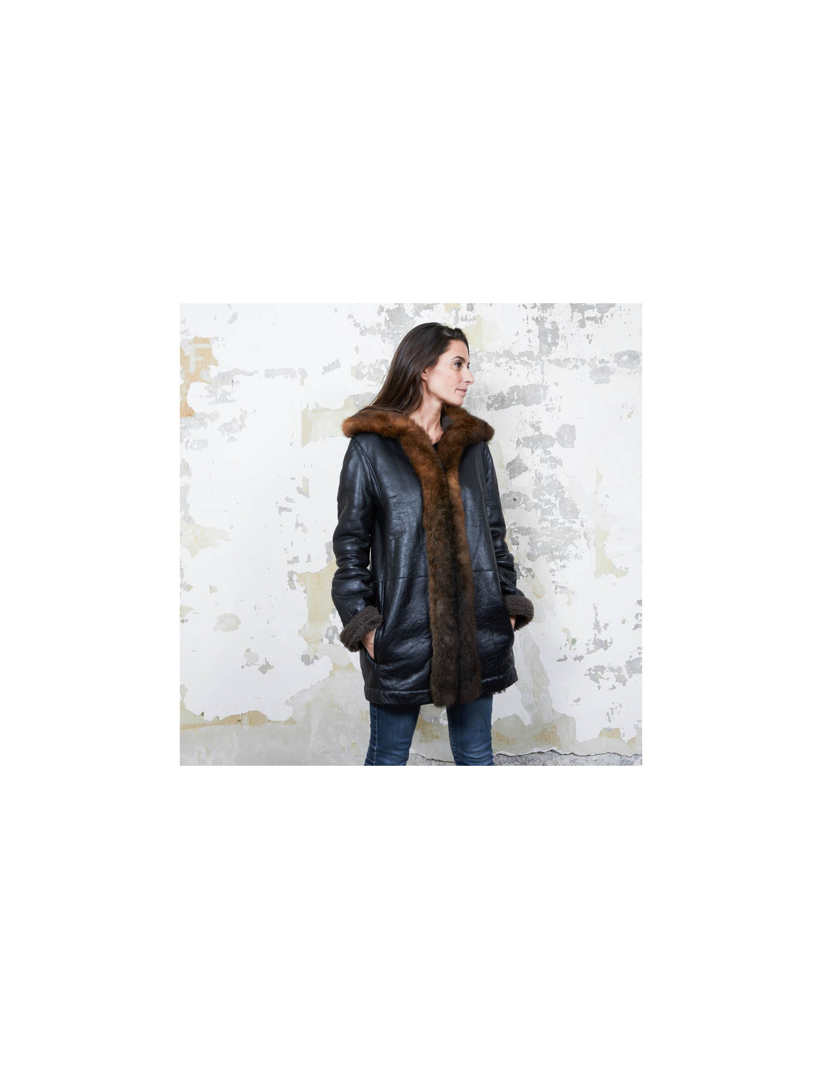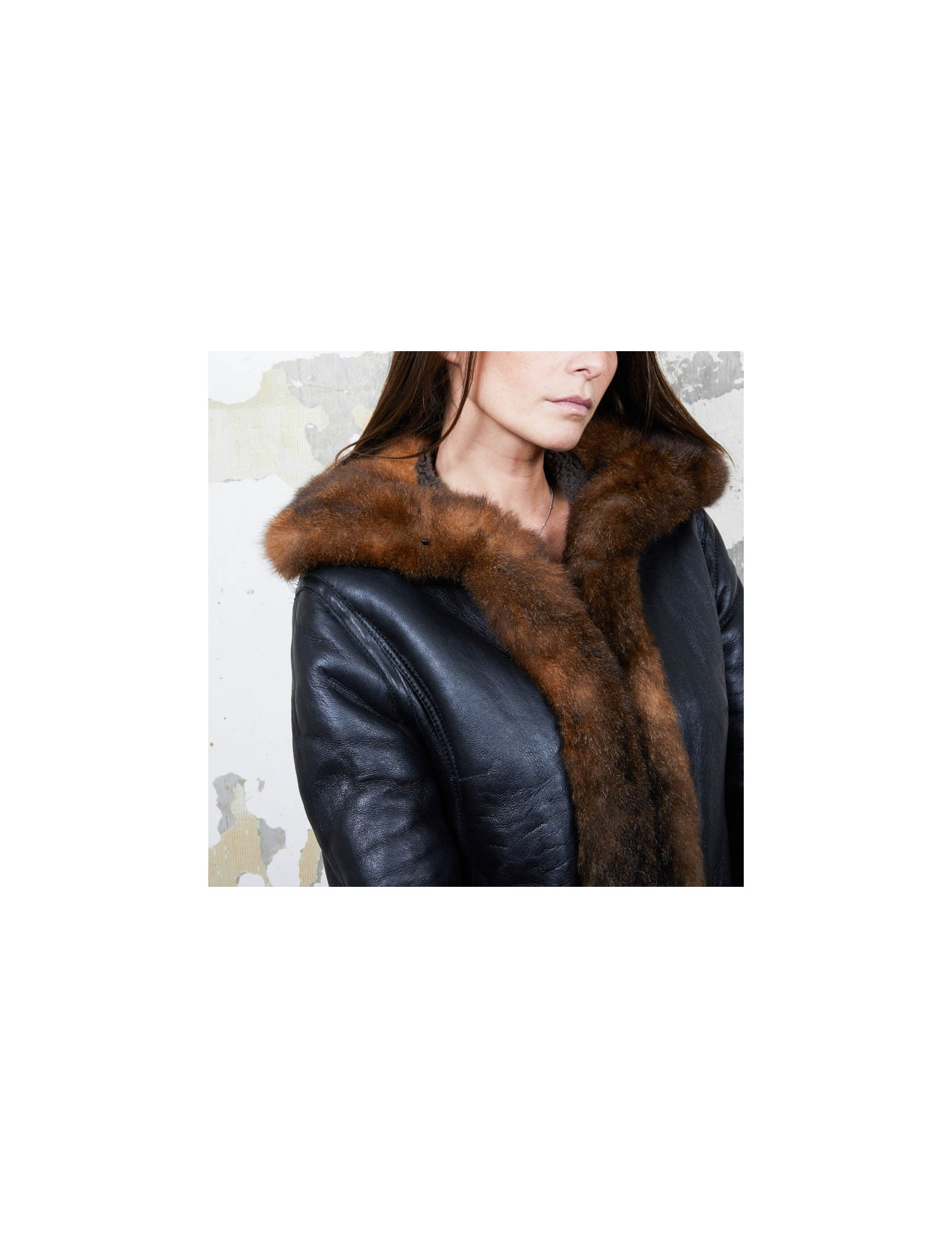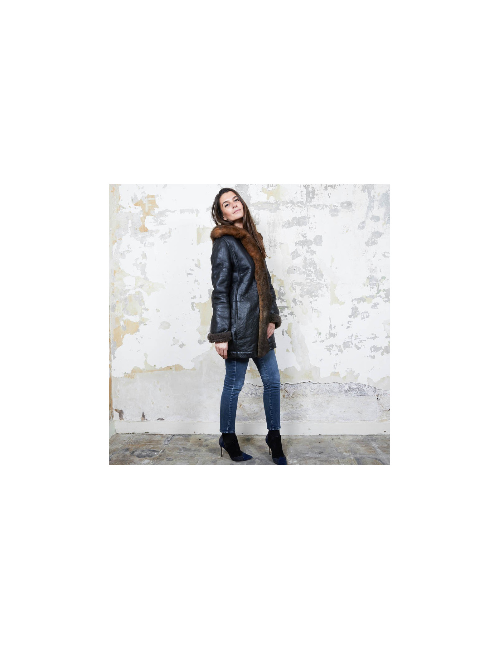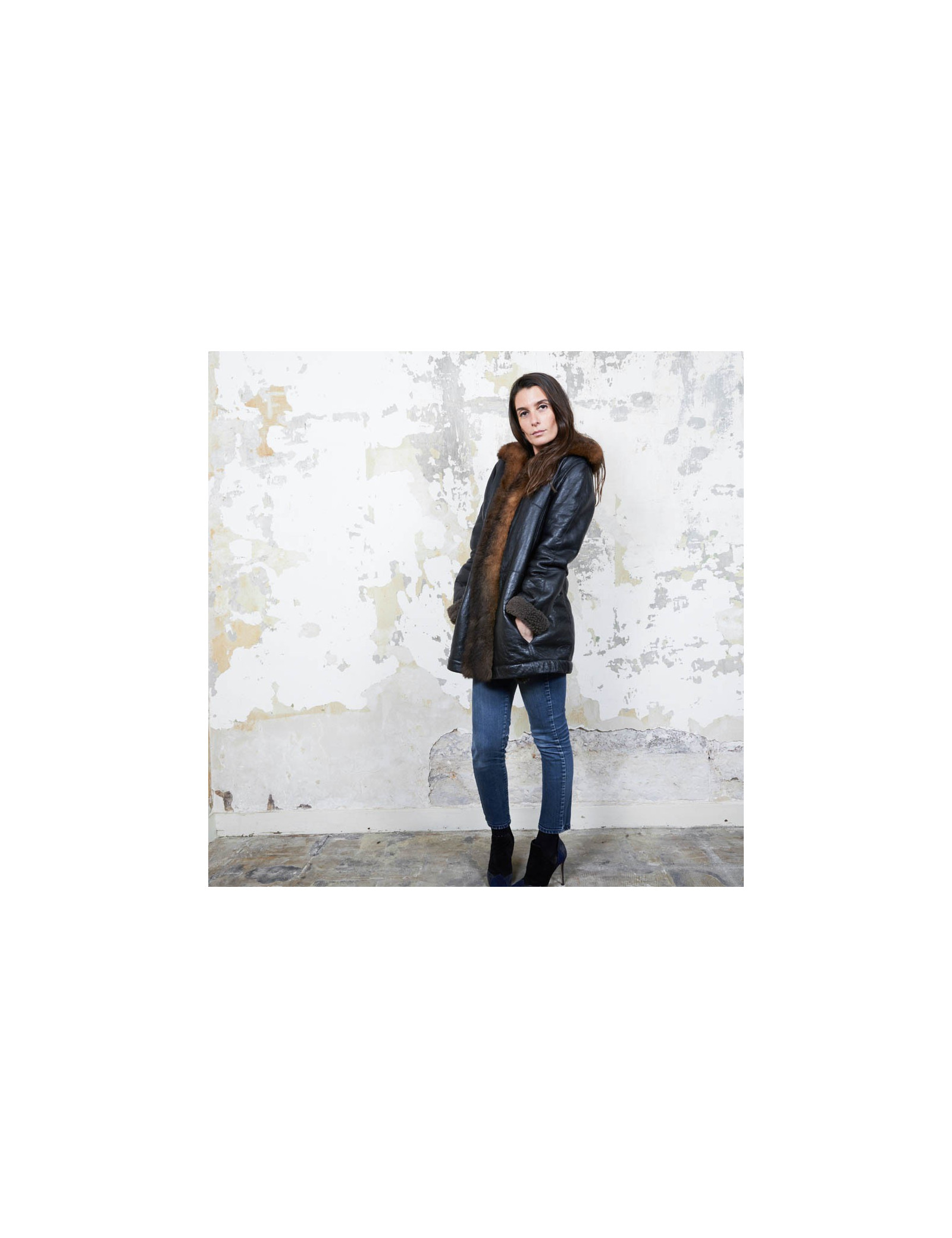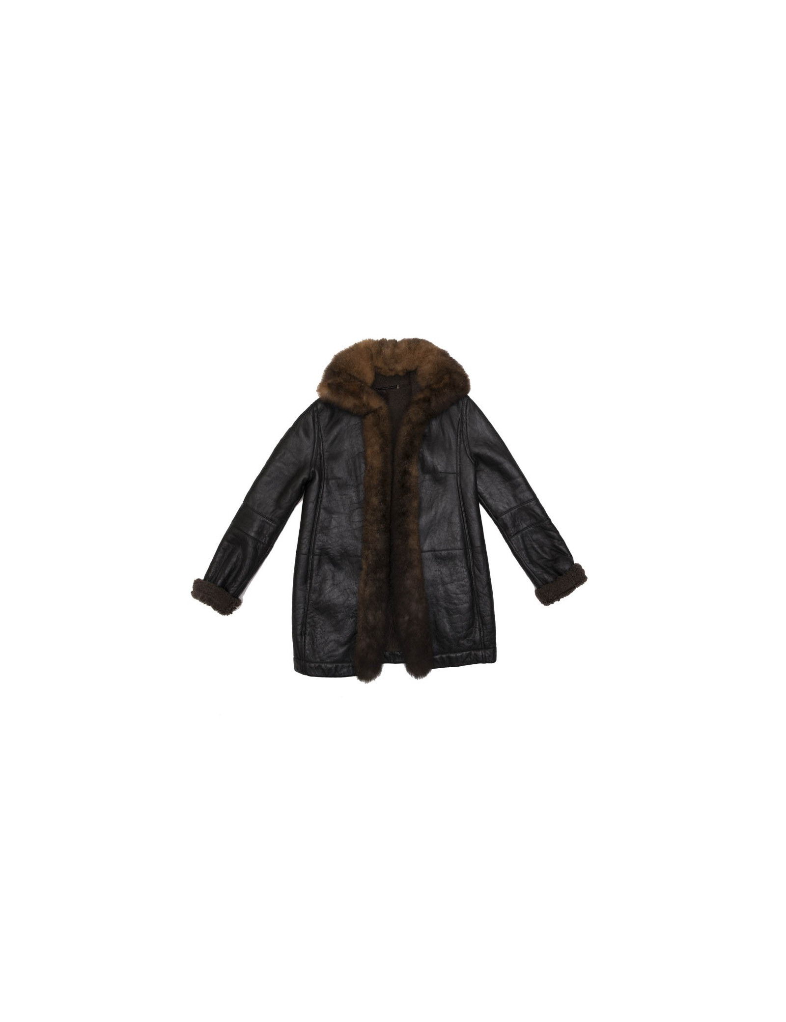 Manteau mi-long T 40 BALENCIAGA cuir d'agneau retourné et cuir vieilli marron