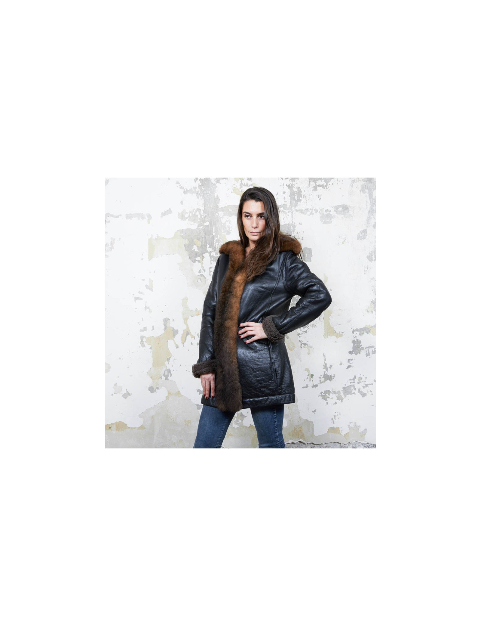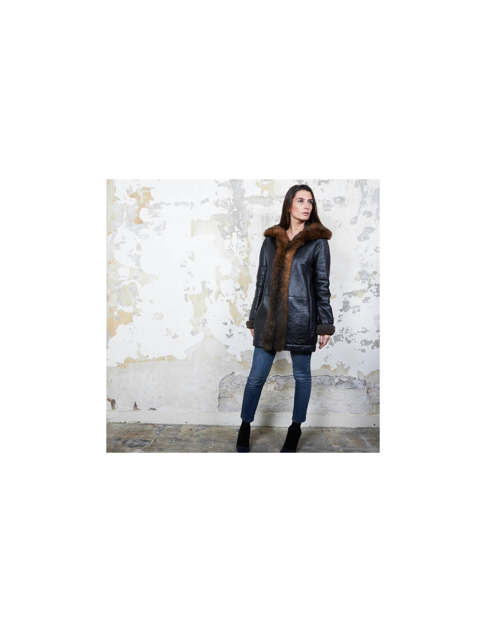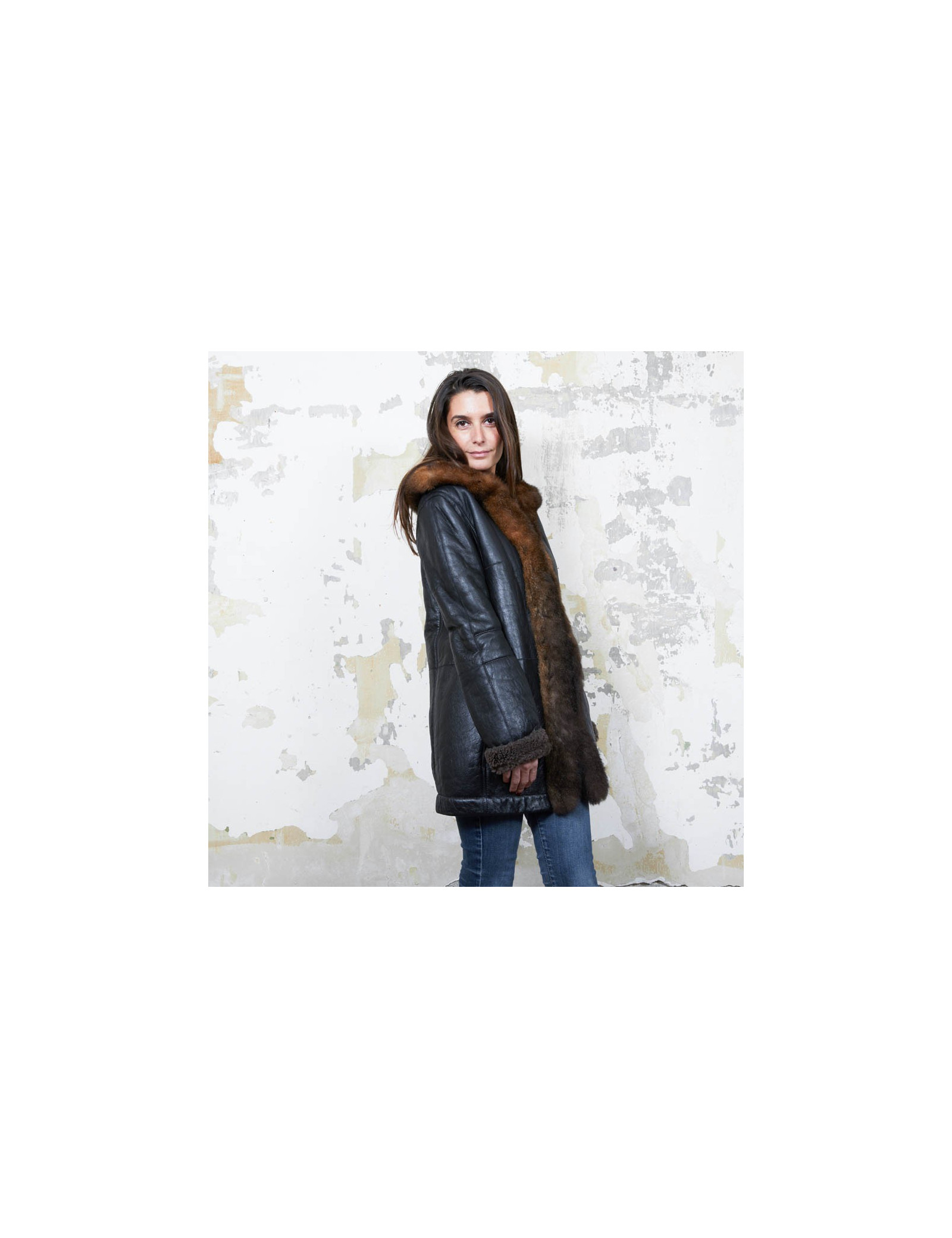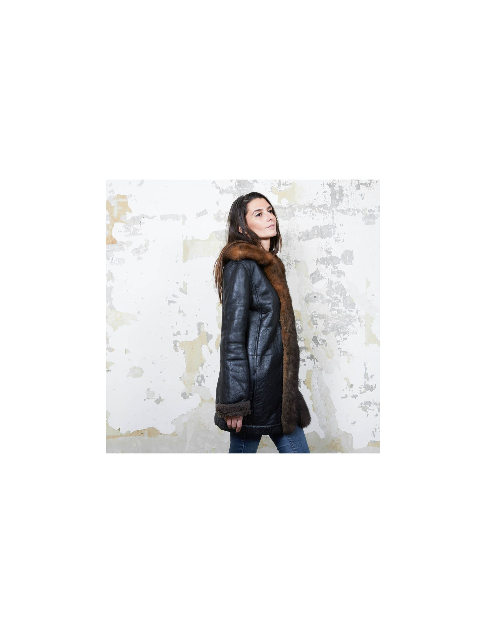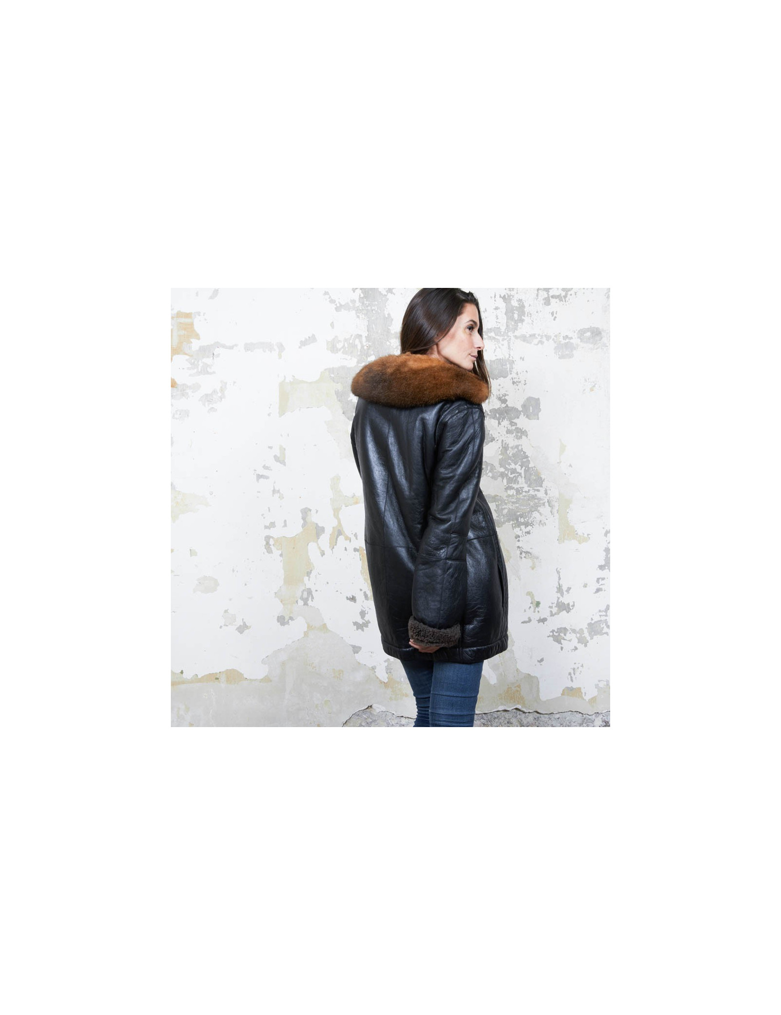 Manteau mi-long T 40 BALENCIAGA cuir d'agneau retourné et cuir vieilli marron