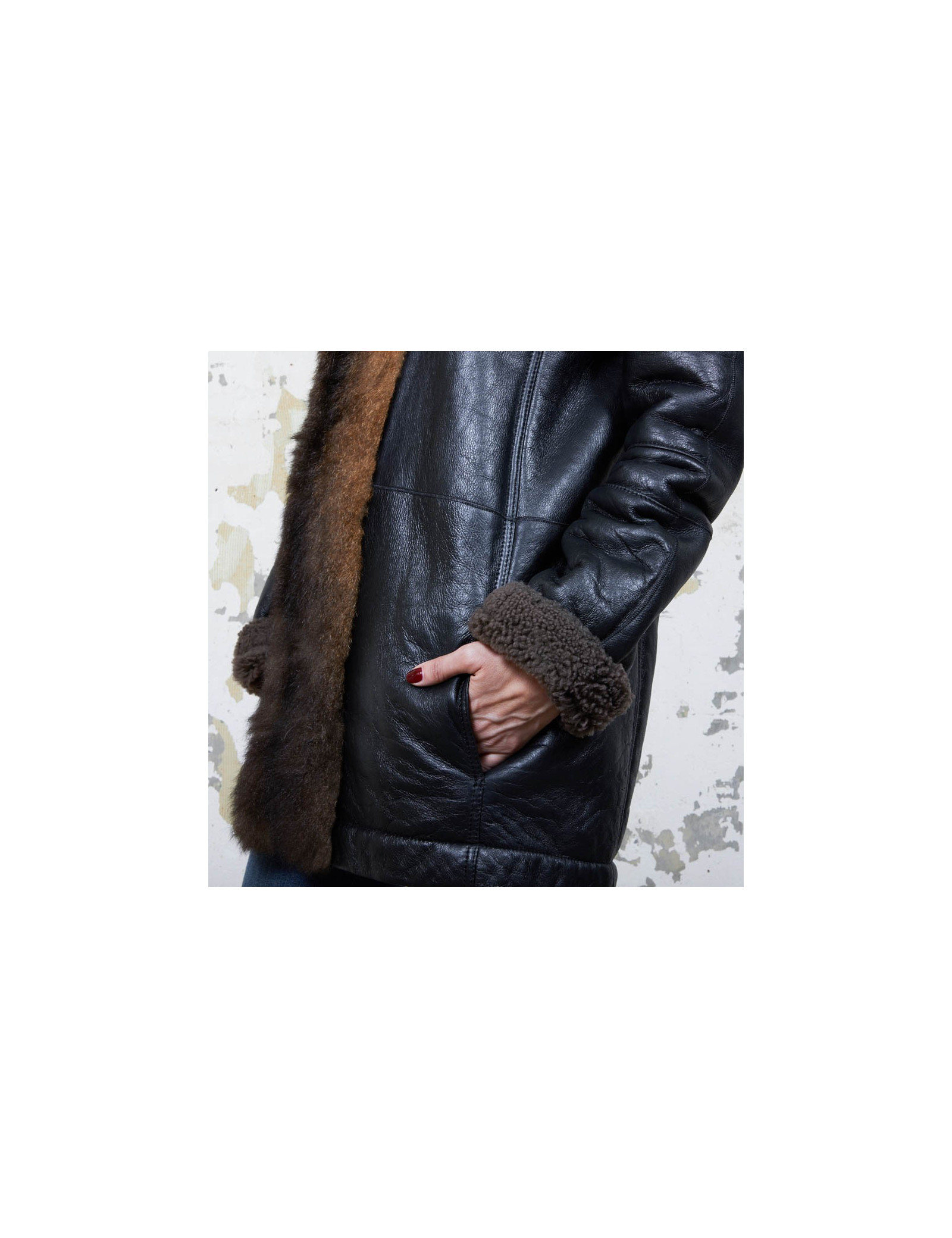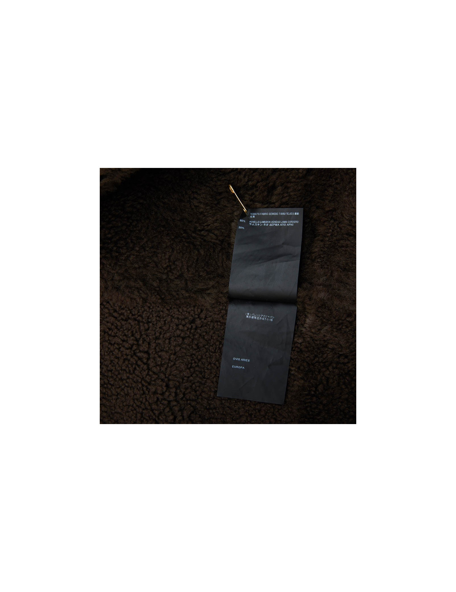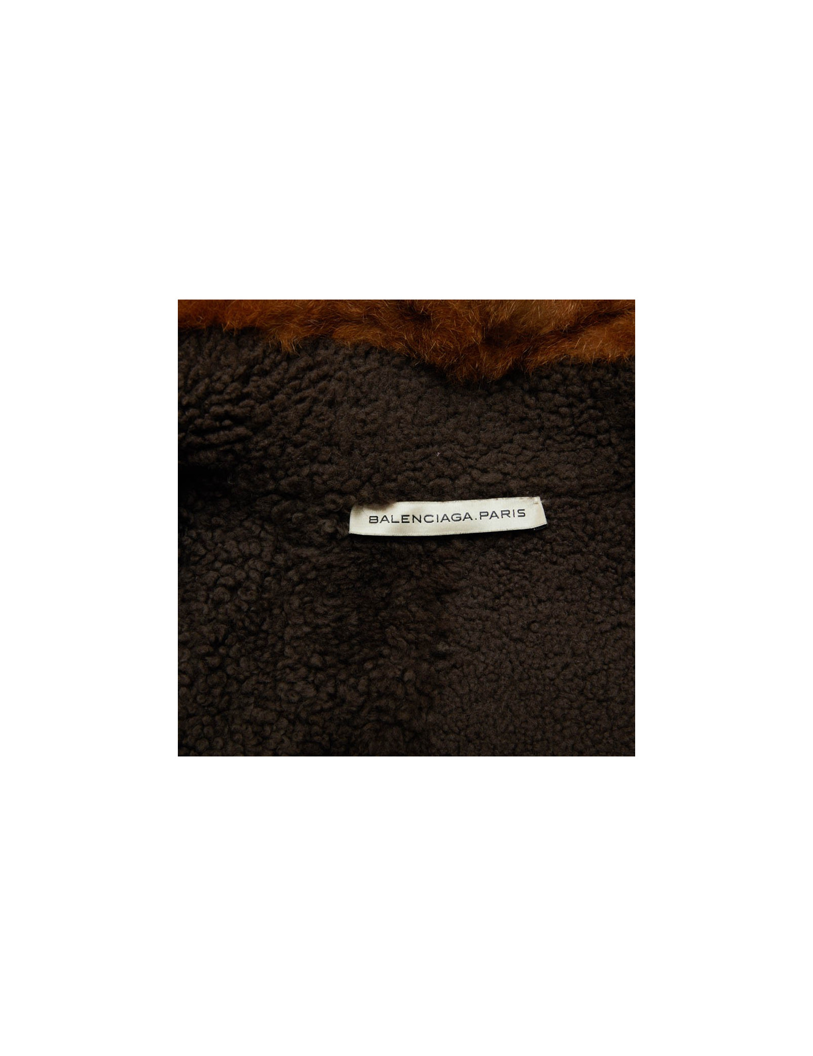 Manteau mi-long Balenciaga en cuir d'agneau retourné et cuir vieilli marron taille 40. Made in Turkey.