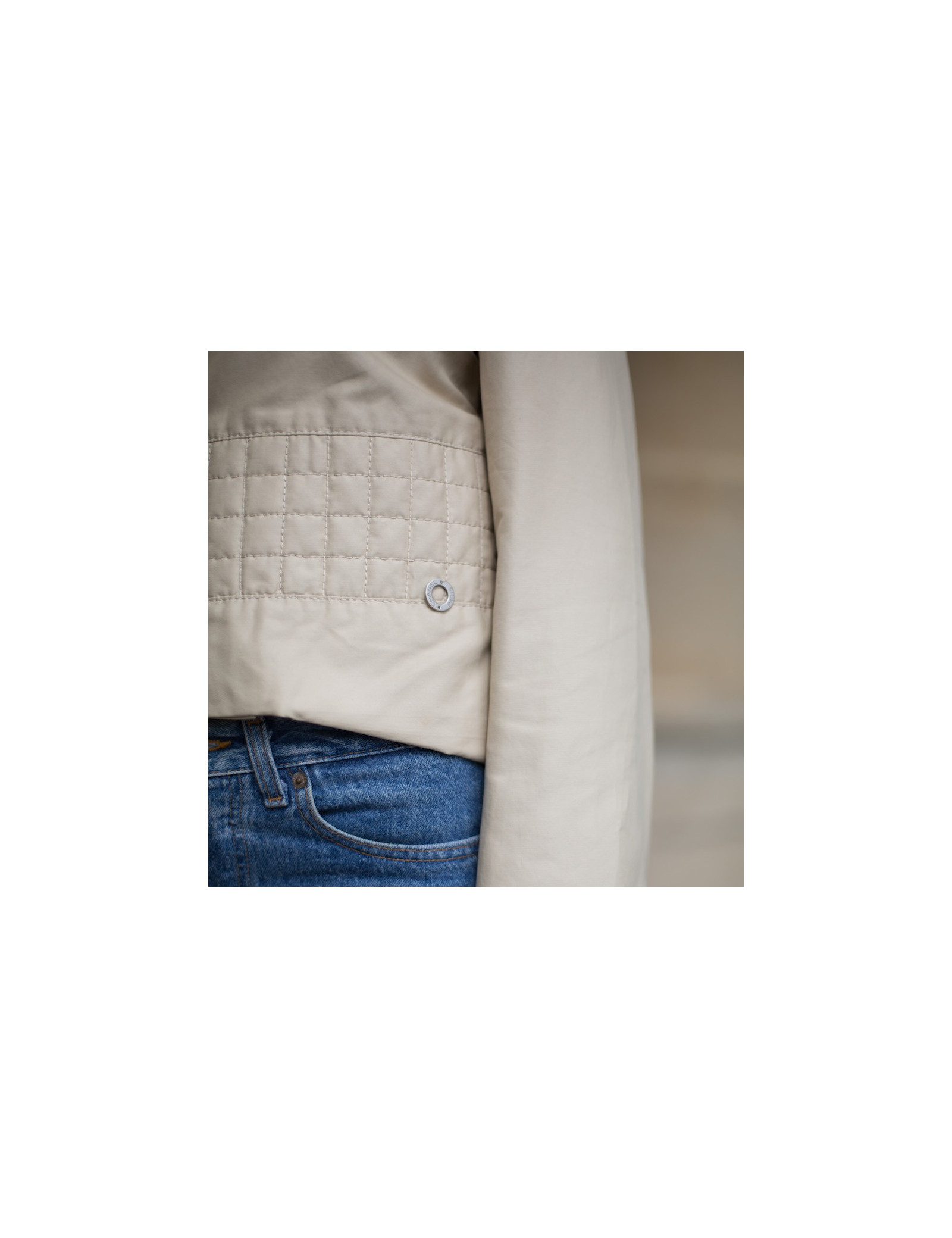Veste imperméable CHANEL beige pour les premiers jours d'automne, en détails