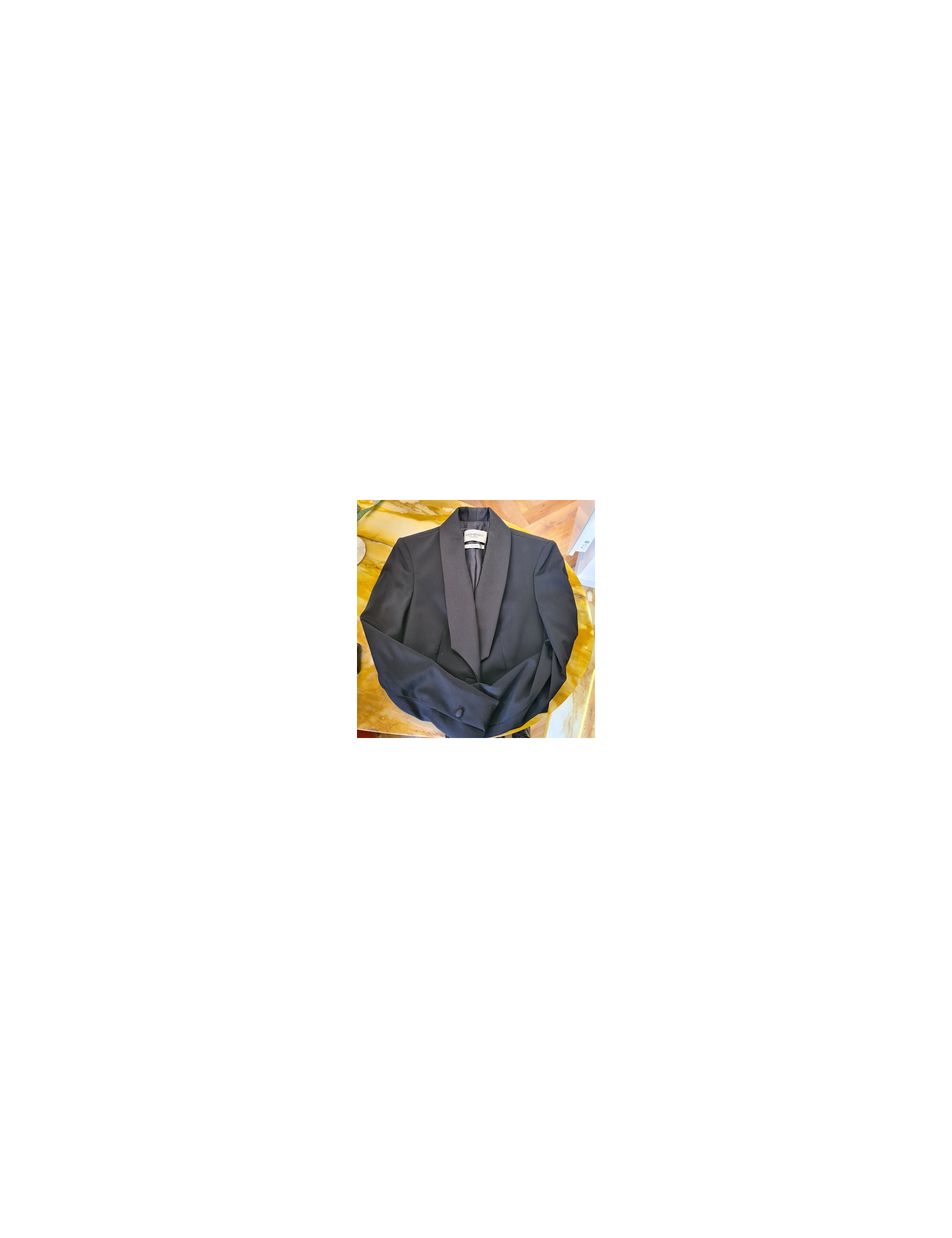 VESTES Veste Arlequin YVES SAINT LAURENT Rive Gauche SAINT LAURENT 34467 1 450,00 € Collector Veste Arlequin Yves Saint Laurent Condition: très bon étatPays de fabrication : FranceMatière: tissu satinéDoublure: bleu-grisCouleurs: noir, bleu, grisTaille: 46FRDimensions à plat : épaules: 46cm, longueur: 61cm, poitrine: 42cm, ampleur du bas: 52cm, longueur manche:53cm, emmanchure: 30cmAnnée: Automne/Hiver 1988Détails: Magnifique veste de... Ajouter au panier