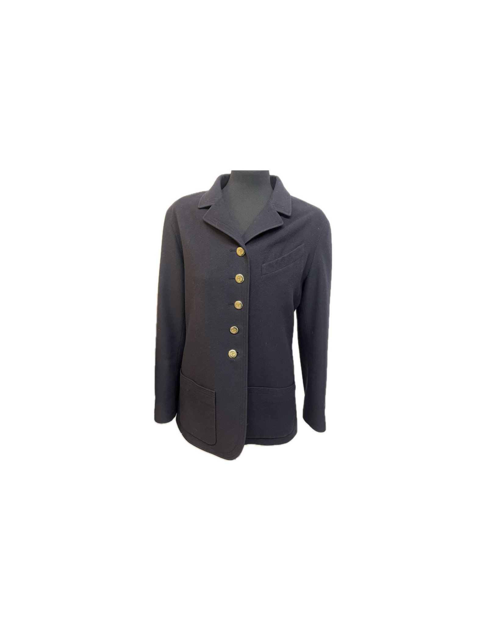 VESTES Manteau CHANEL T46 CHANEL 37392 5 300,00 € Manteau CHANEL coton bleu, cuir noir Condition : très bon étatPays de fabrication : FranceTaille : 46Fr mais peut convenir à un 38/40/42/44Matière : cuir noir et 87% coton, 7% polyamide, 6% polyester.Doublure : 100% soieCouleur : bleu, noirDimensions à plat: épaules : 46 cm, sous la poitrine : 54 cm, hauteur : 102 cm, longueur des manches : 55 cm, tour de... Ajouter au panier