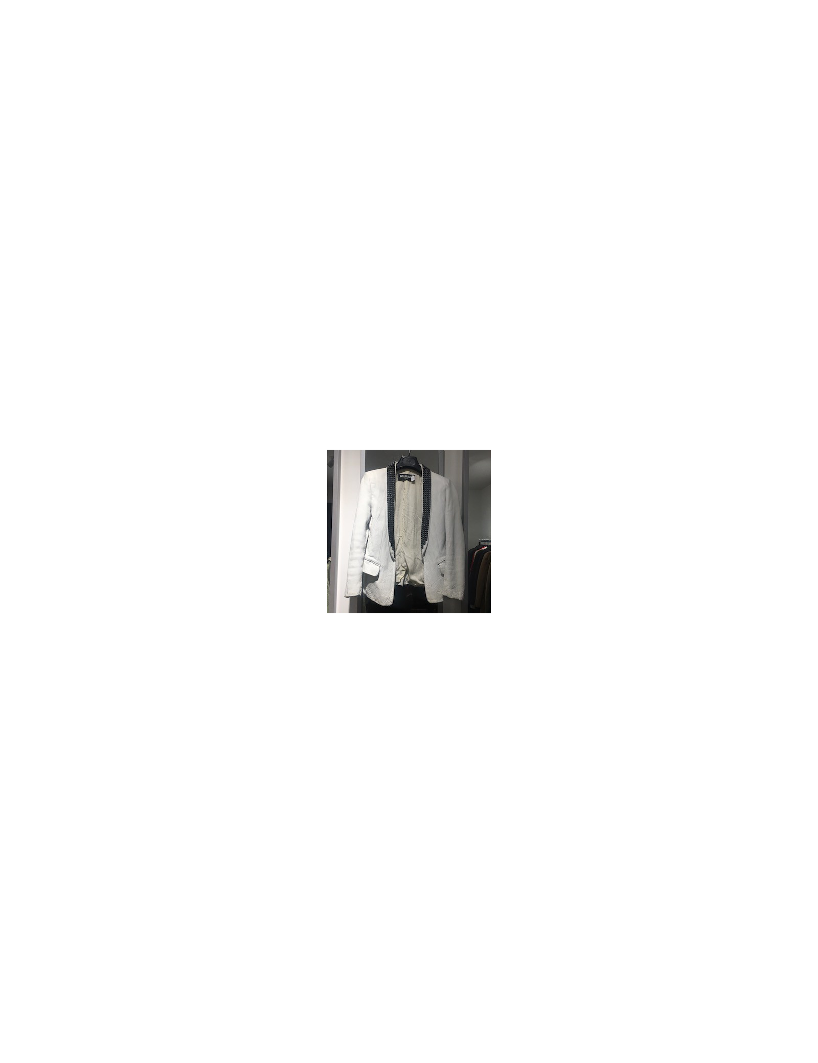 Derniers articles en stock VESTES Veste CHANEL blanche noire CHANEL 33067 2 200,00 € Veste Chanel blanche tweed Condition : bon état Pays de fabrication : France Taille : 44frMatière : tweed, soieDoublure : soie monogramme blanche Couleur : blanc, noirDimensions à plat veste : épaules : 43 cm, sous la poitrine : 51 cm, hauteur : 70 cm, longueur des manches : 55cm, tour de poignet : 31 cm Détail : vintage, trois poches, fermeture par trois... Ajouter au panier