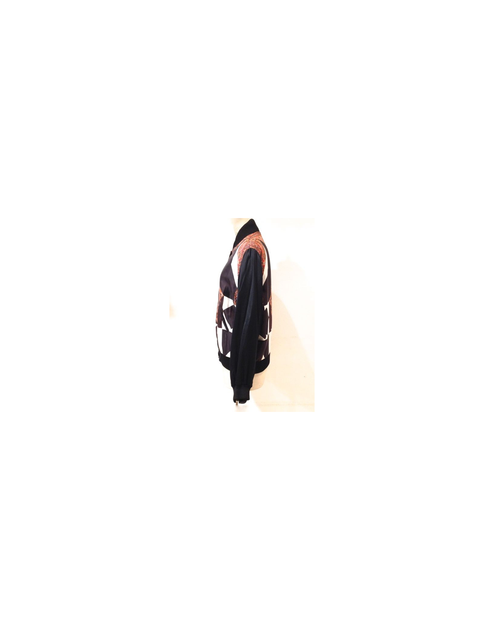 Veste Givenchy en soie et viscose, motif foulard en taille 40. Sublime teddy issu de la Collection défilé Resort 2013 se fermant par des boutons pressions. Les manches de la veste s'ouvrent entièrement dans la longueur par de très beaux zips.
