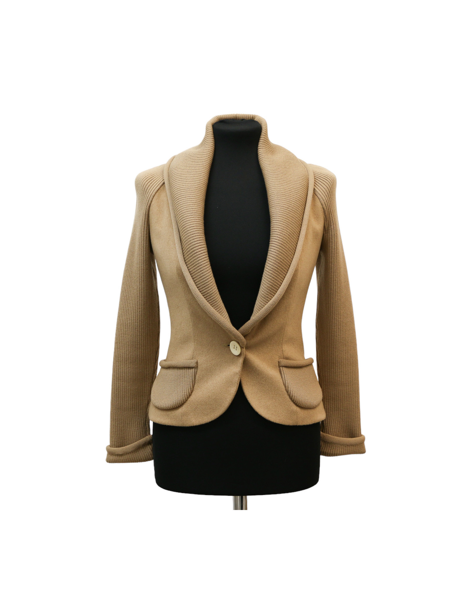 Détails : étiquette Christian Dior Boutique, deux poches, fermeture par un bouton, manches et col en laine
