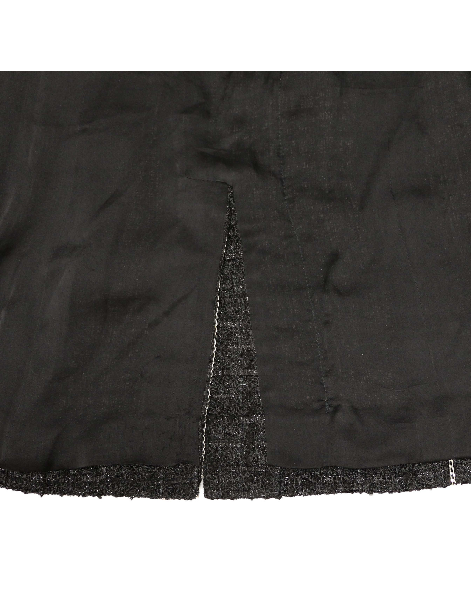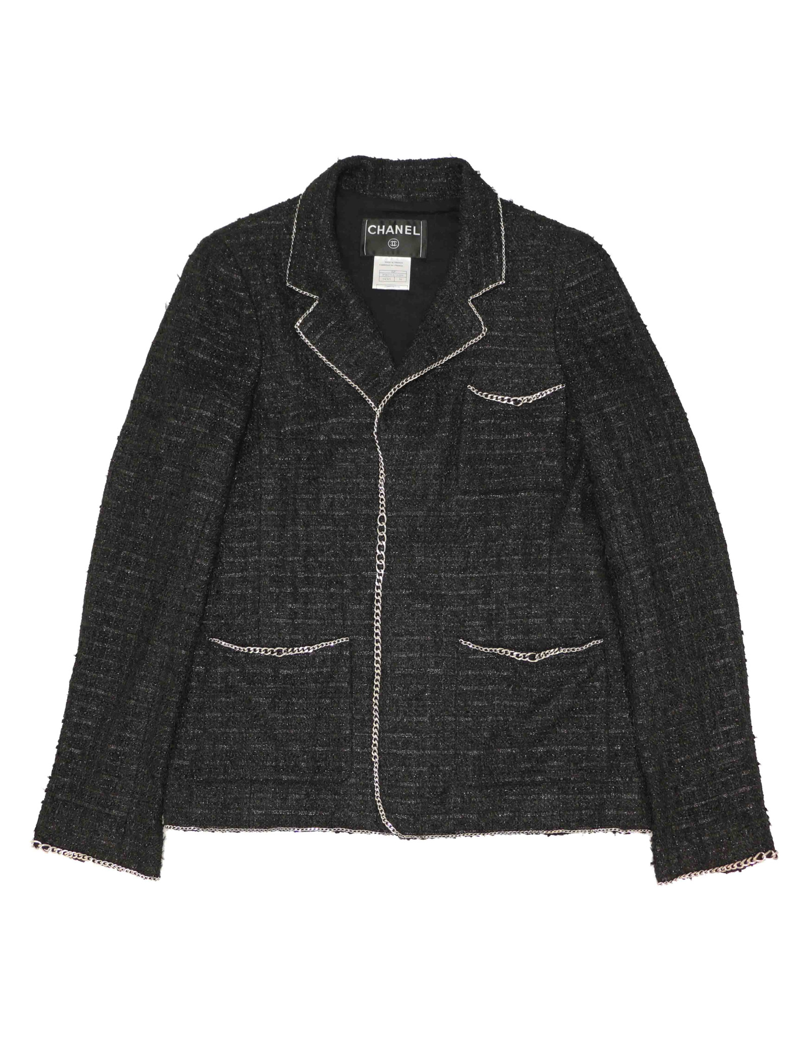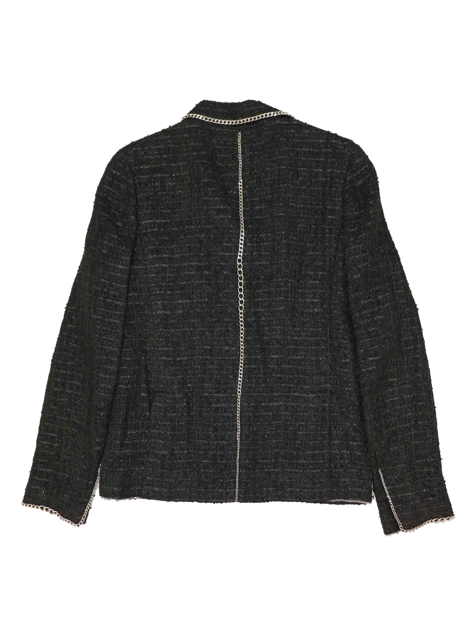 Veste CHANEL tweed noir et chaine argent