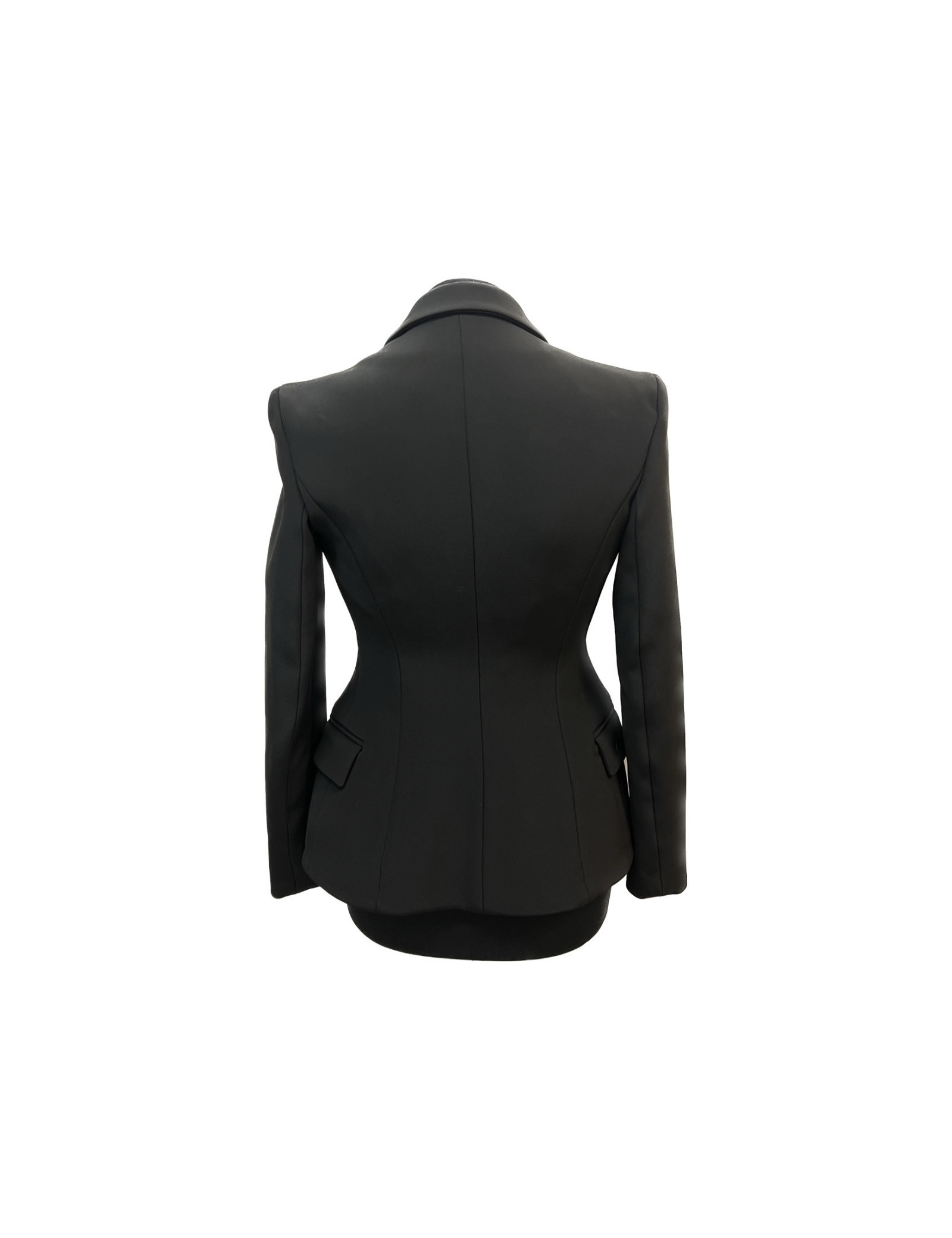 Détails : coupe cintrée, deux poches, fermeture par deux boutons fleurs composés de brillants colorés
