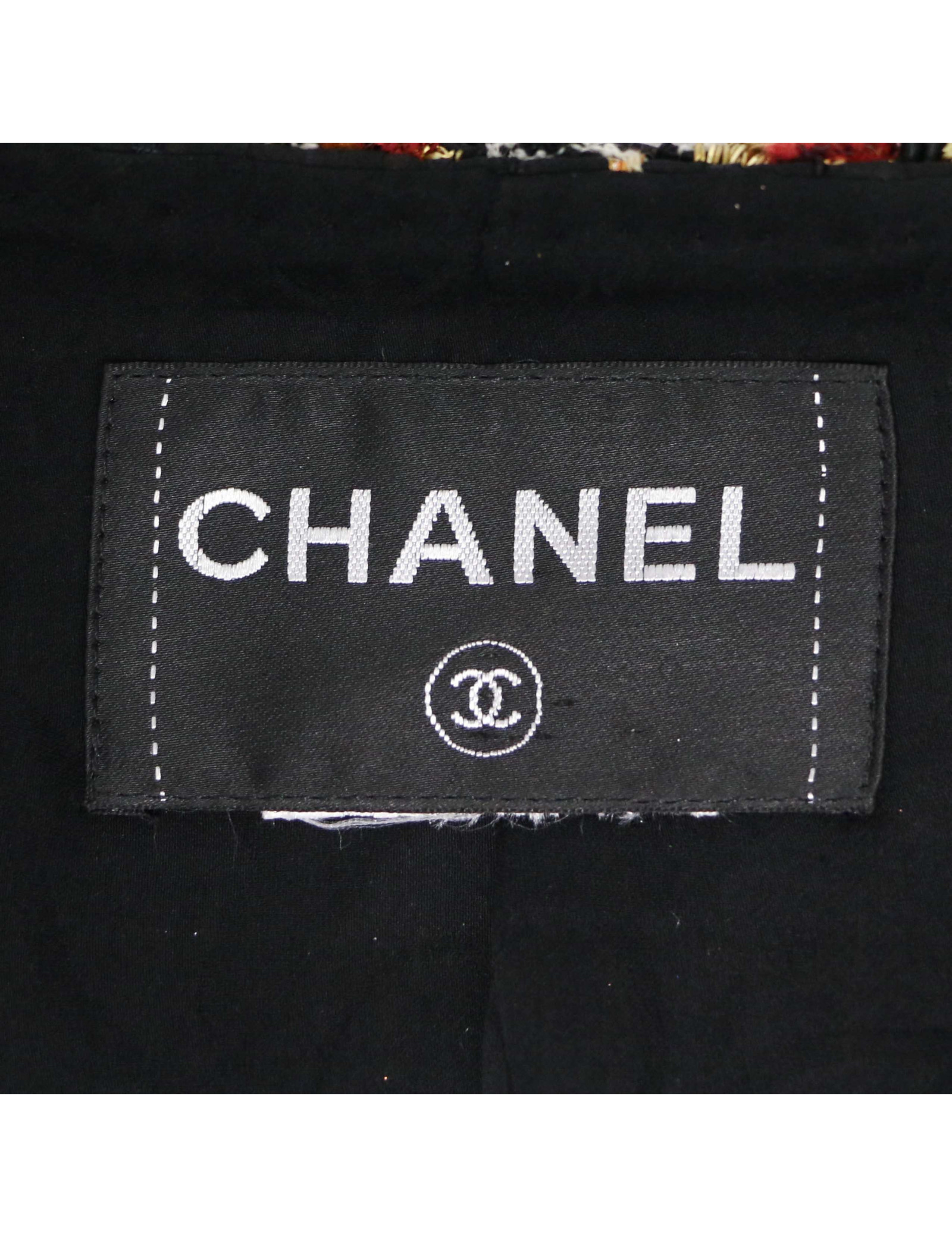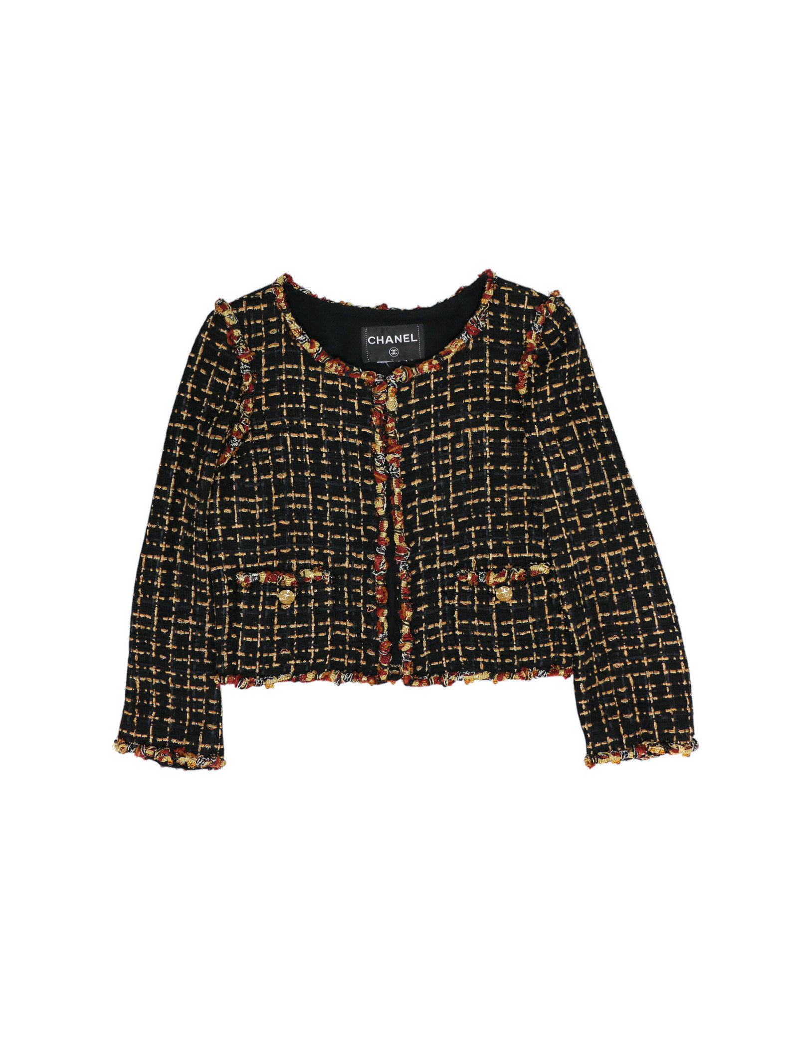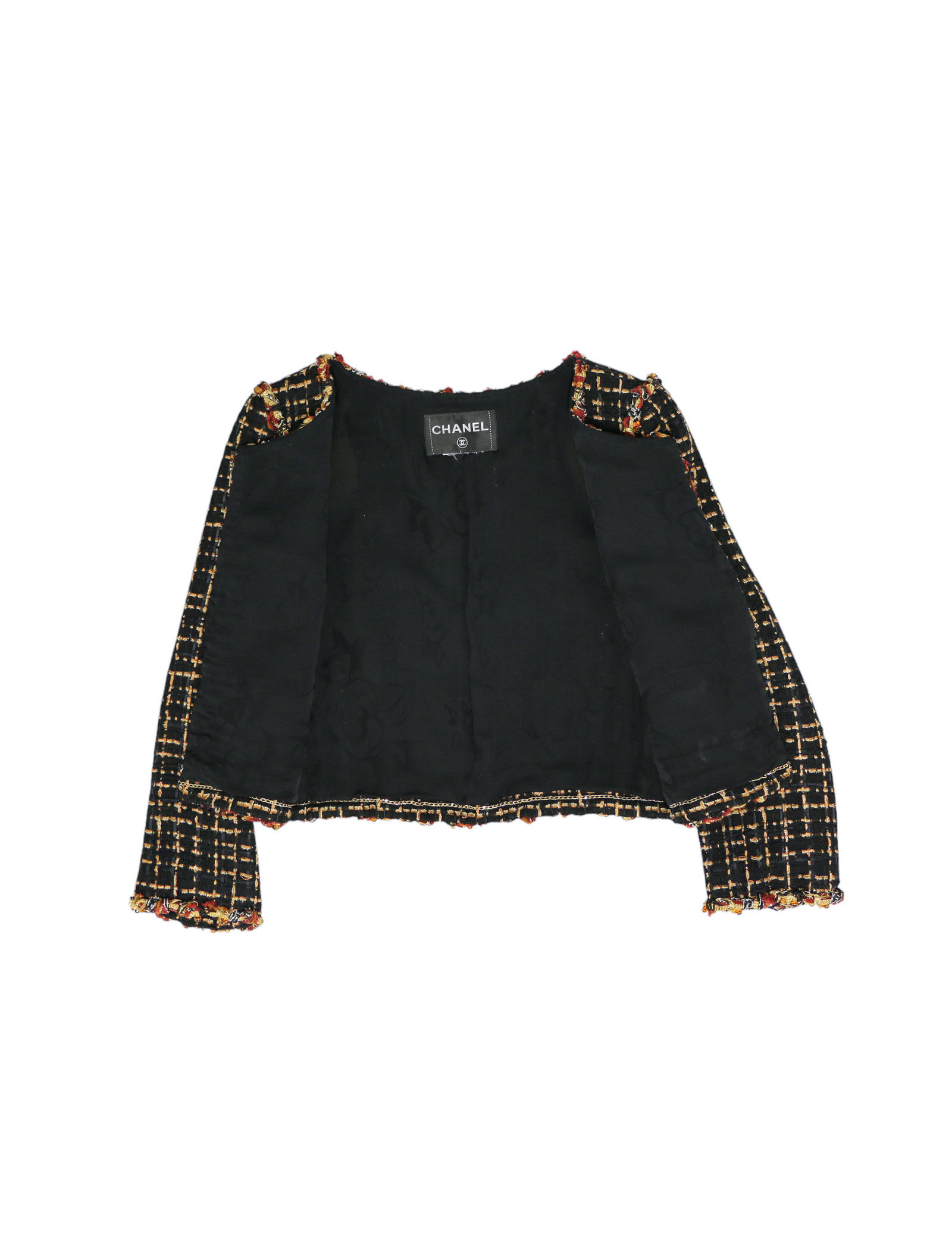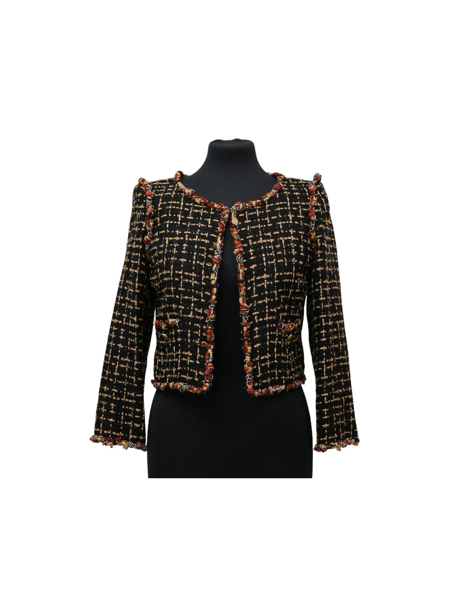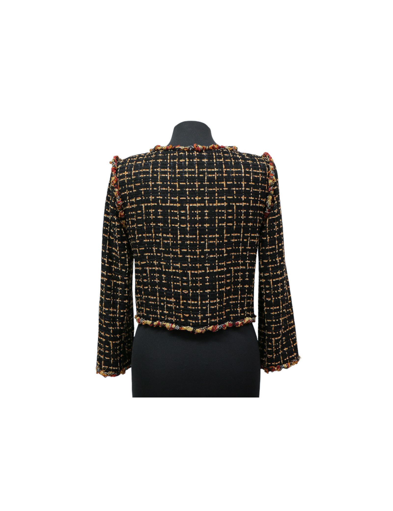Veste courte tweed noir et ambre CHANEL t36